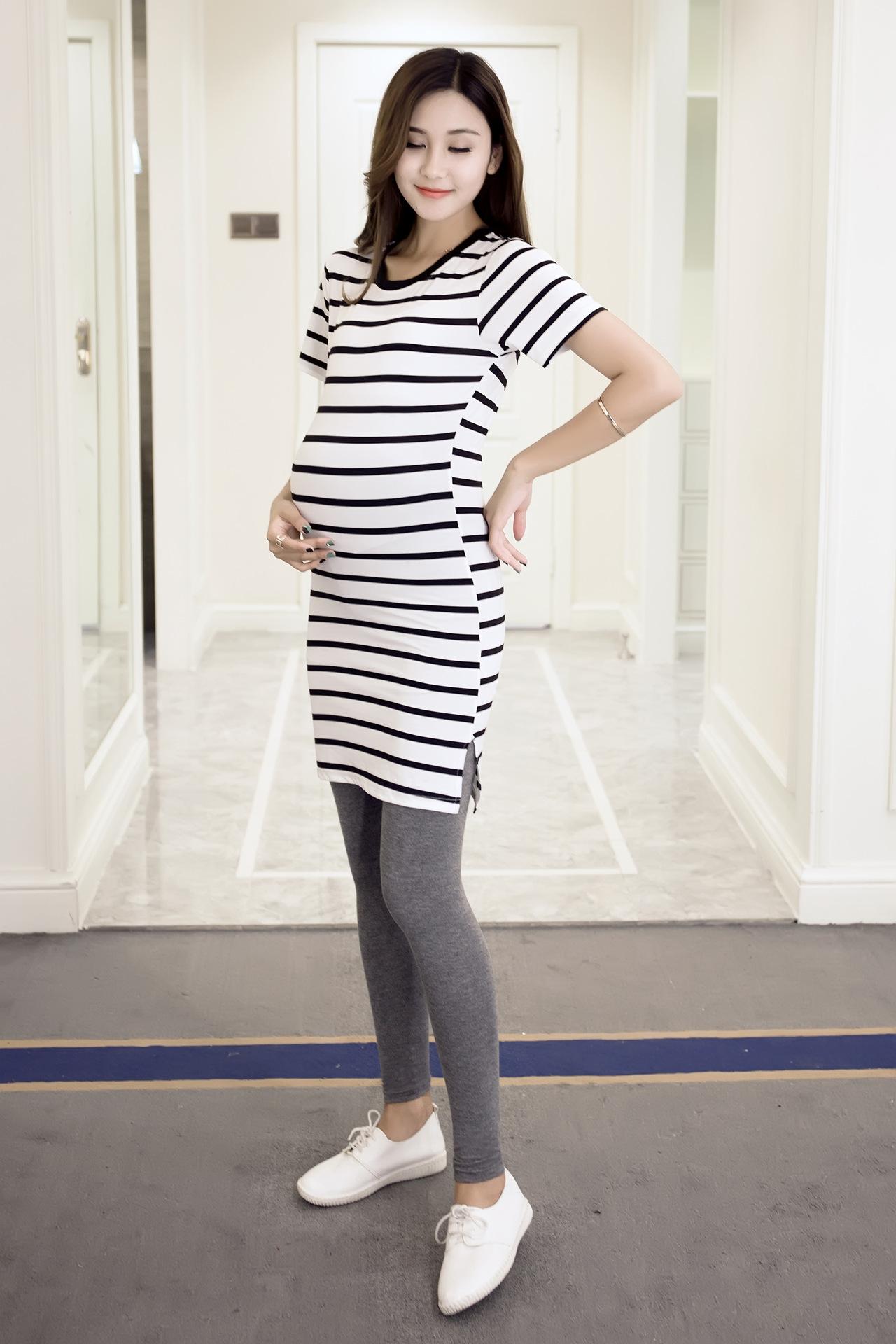 Pantalones de Primavera y Verano para Mujeres Embarazadas estilo Coreano Leggings de Nueve Puntos con Soporte para el Vientre Leggings Modales Ajustables y Delgados