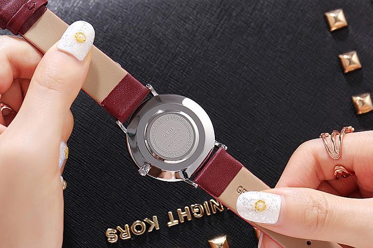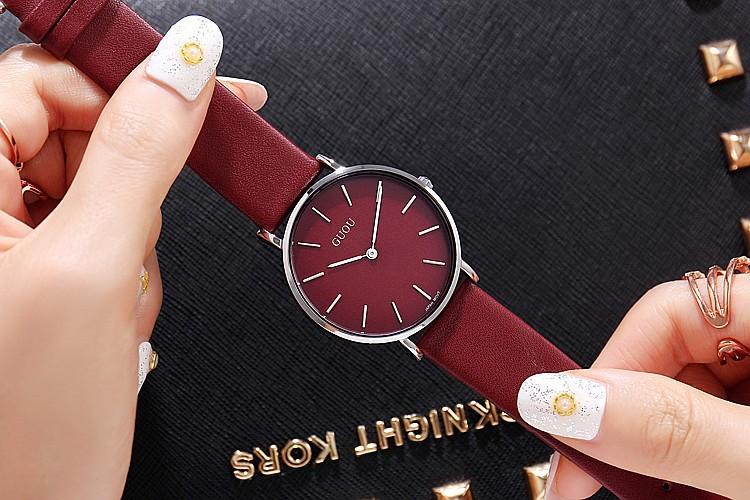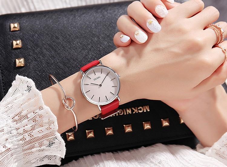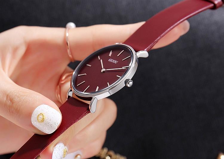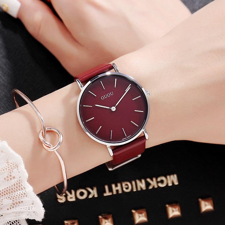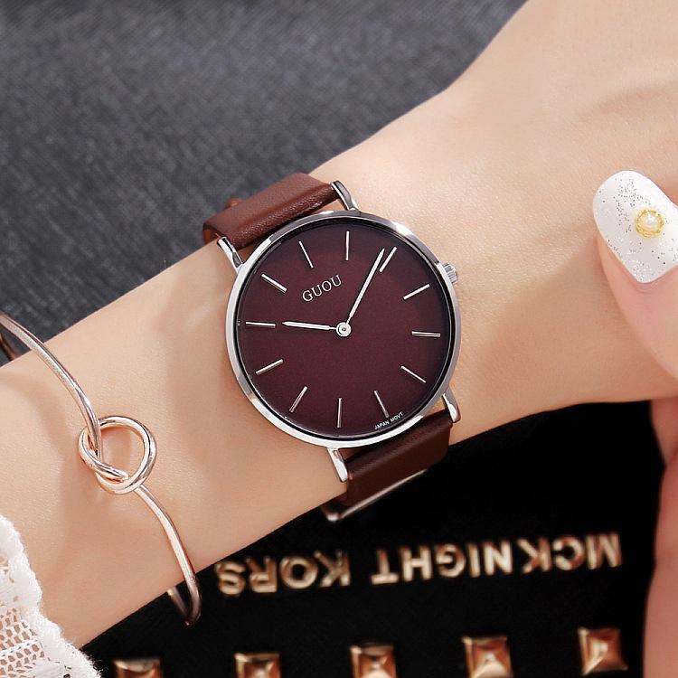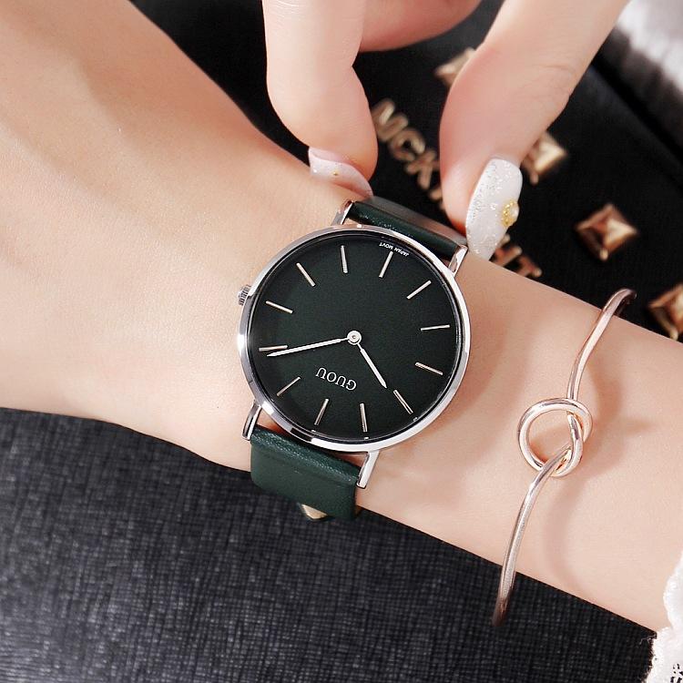 Reloj GUOU Correa de Cuero Moda Simple Ultrafino Verde Reloj de Mujer Unisex Reloj de Hombre y Mujer