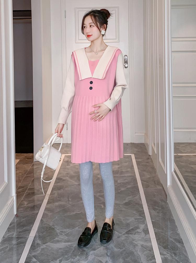 Maternidad 2022 Otoño e Invierno Nuevo Suéter Coreano Suéter de Punto Largo Medio Vestido de Lactancia para Mujeres Embarazadas