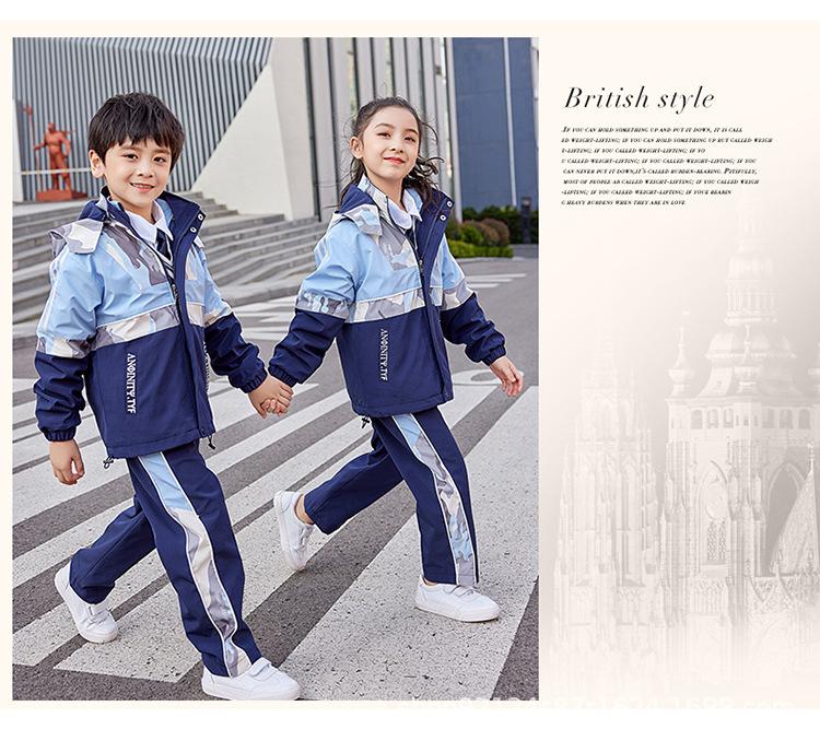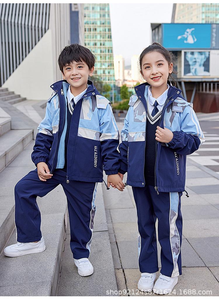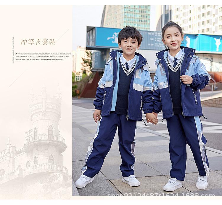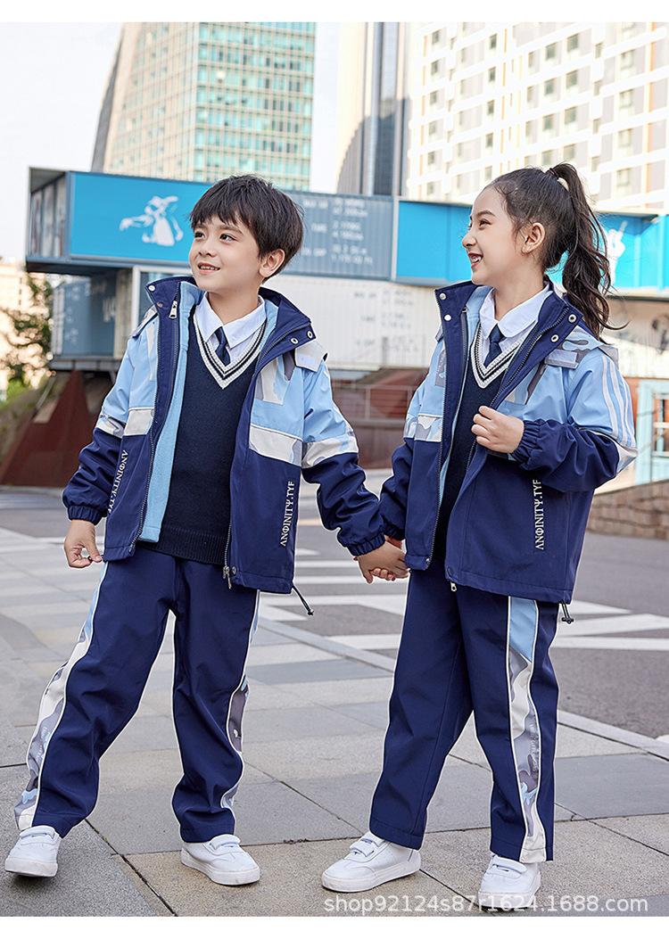 Ropa Escolar de Jardín de Niños Estudiantes de Primaria y Secundaria Uniforme Escolar Ropa de Clase Niños y Niñas Chaqueta Gruesa Tres en Uno