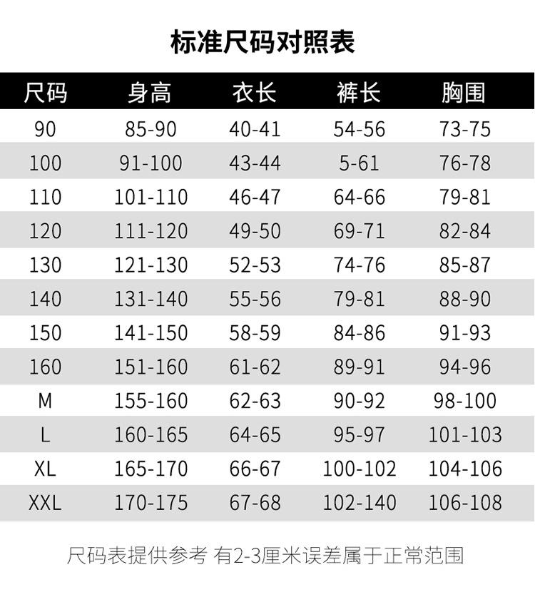 90cm, 100cm, 110cm, 120cm, 130cm, 140cm, 150cm, 160cm, M, L, XL, XXL