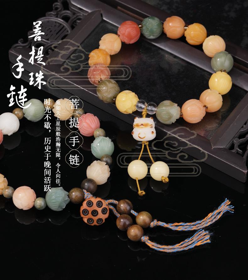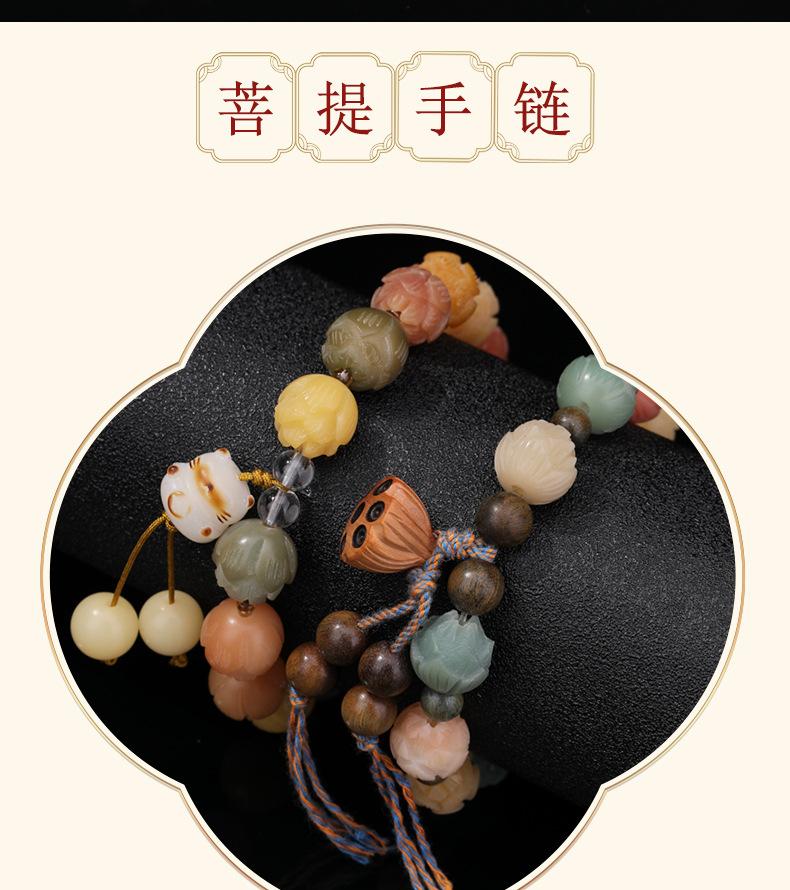 Pulsera Bodhi con Jade Blanco Raíz de Bodhi, Cuentas Bodhi Estilo Chino, Pulsera de Mano de Doble Vuelta