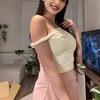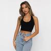Verano Transfronterizo 2024 Ins Color Sólido Ajustado Top Corto Sin Mangas para Mujer Amazon Europeo Americano Cuello V Espalda Descubierta Cuello Pequeño