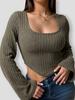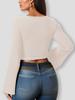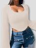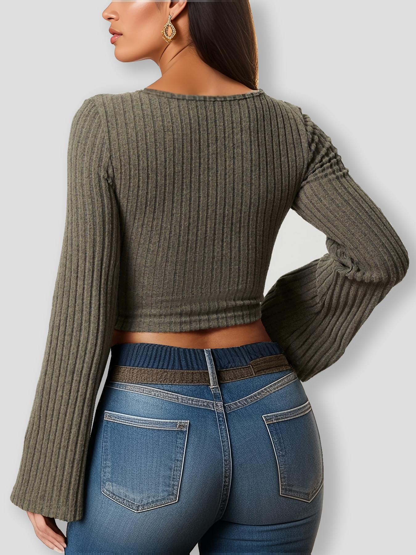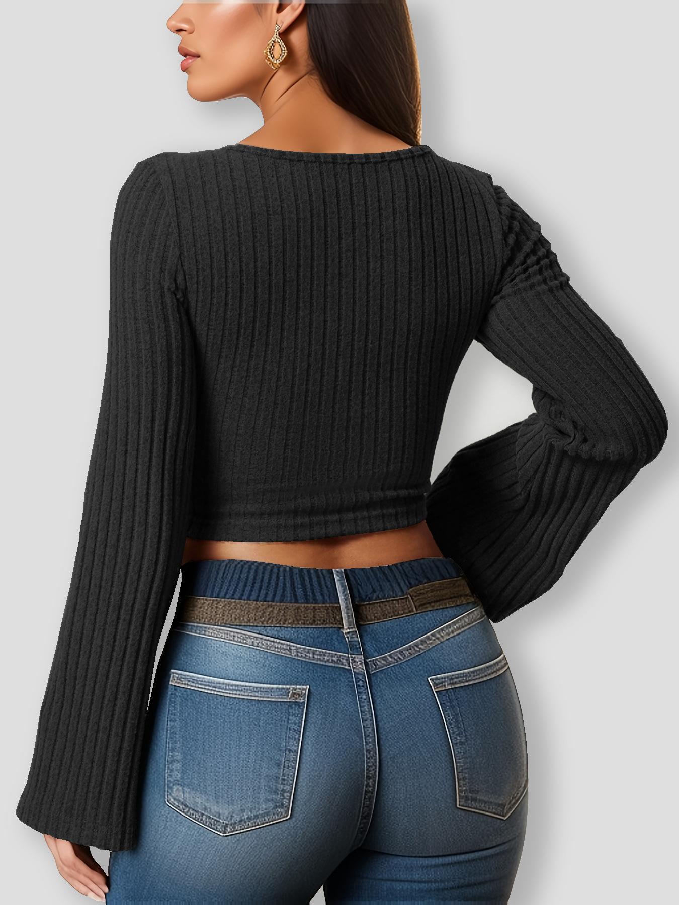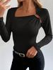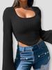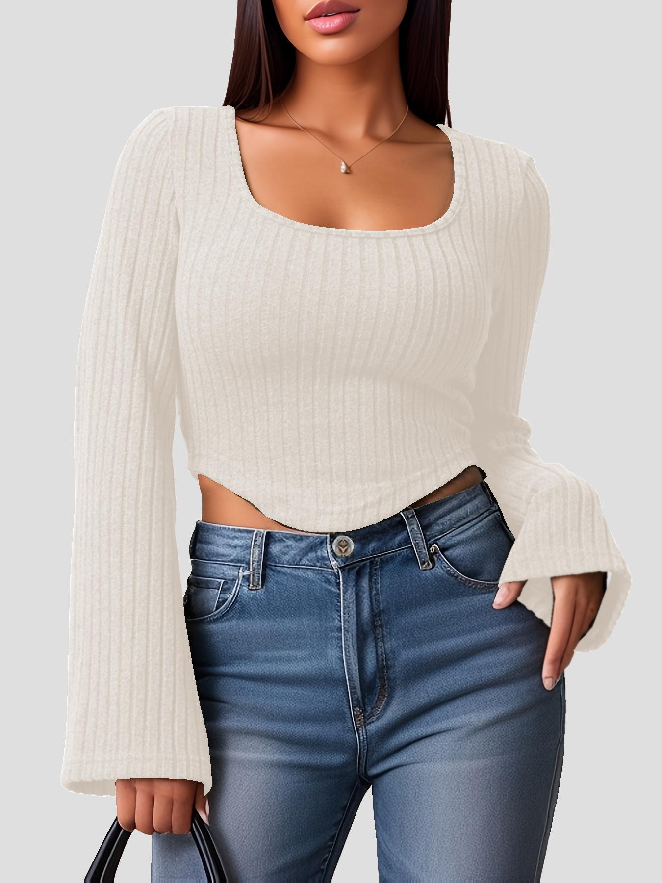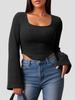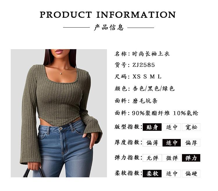 Comercio Exterior Transfronterizo Europeo y Americano Nuevo Otoño e Invierno Sexy Slim Cuello Cuadrado Manga Campana Top de Mujer