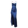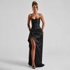 Nuevo Estilo Sexy Ajustado Plisado Abertura Vestido Satín Falda Larga