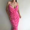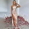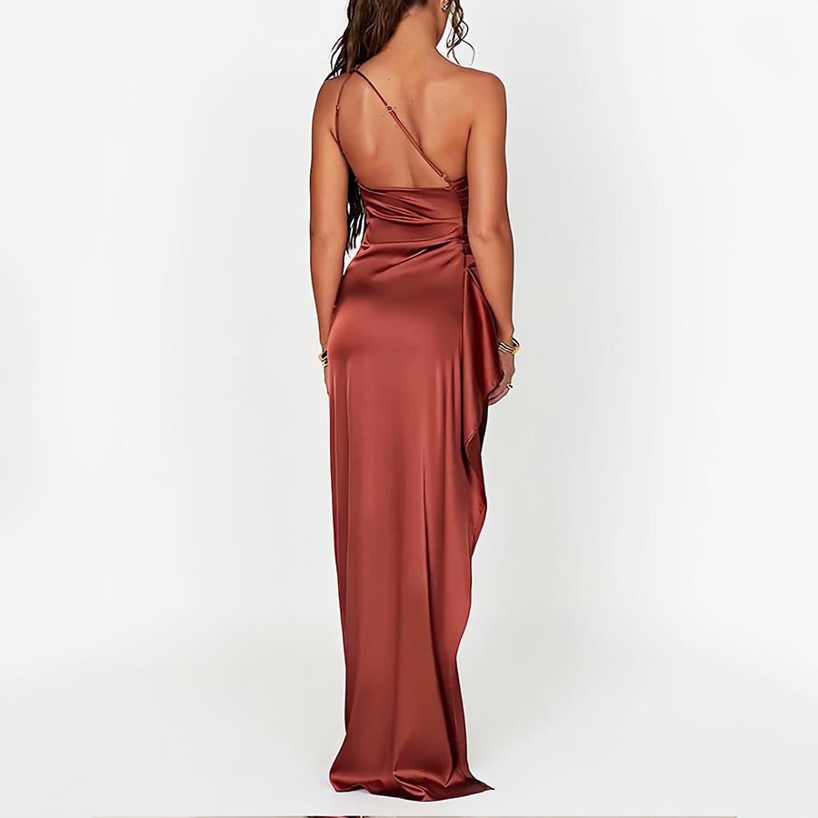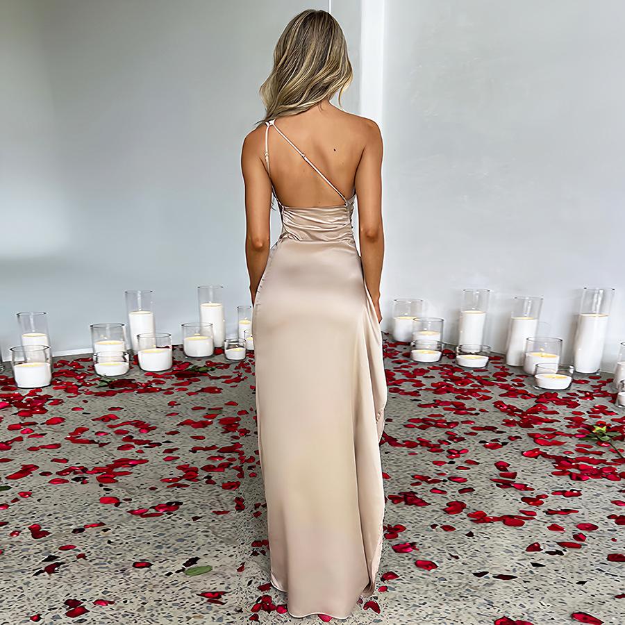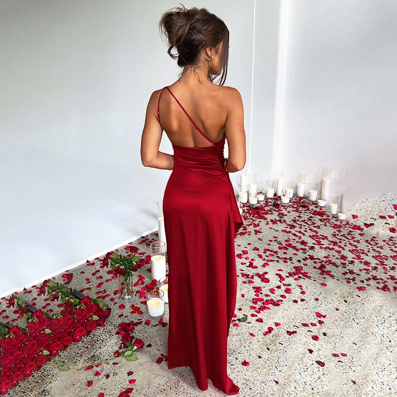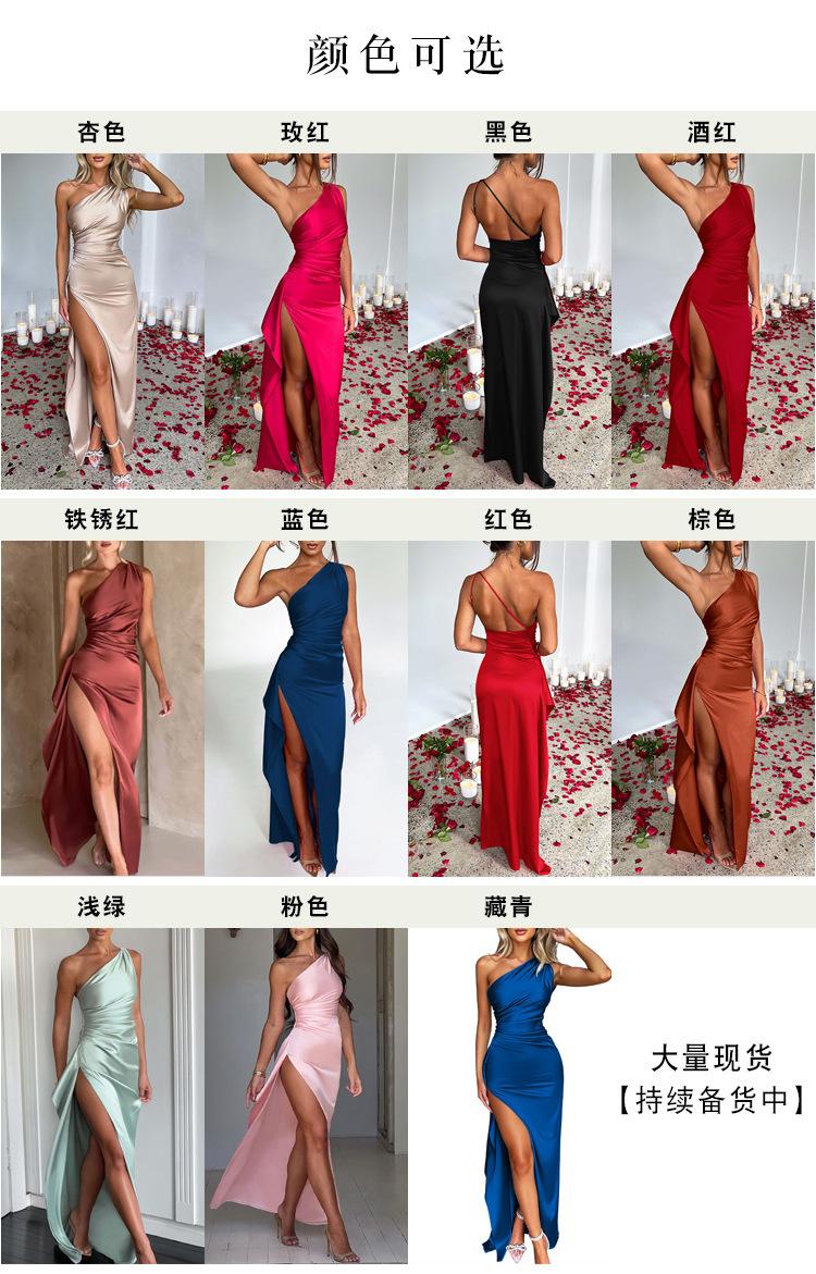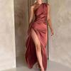 Vestido de Satén Sexy con Hombro Descubierto y Abertura para Mujer, Nuevo Diseño de Verano Europeo y Americano de Amazon