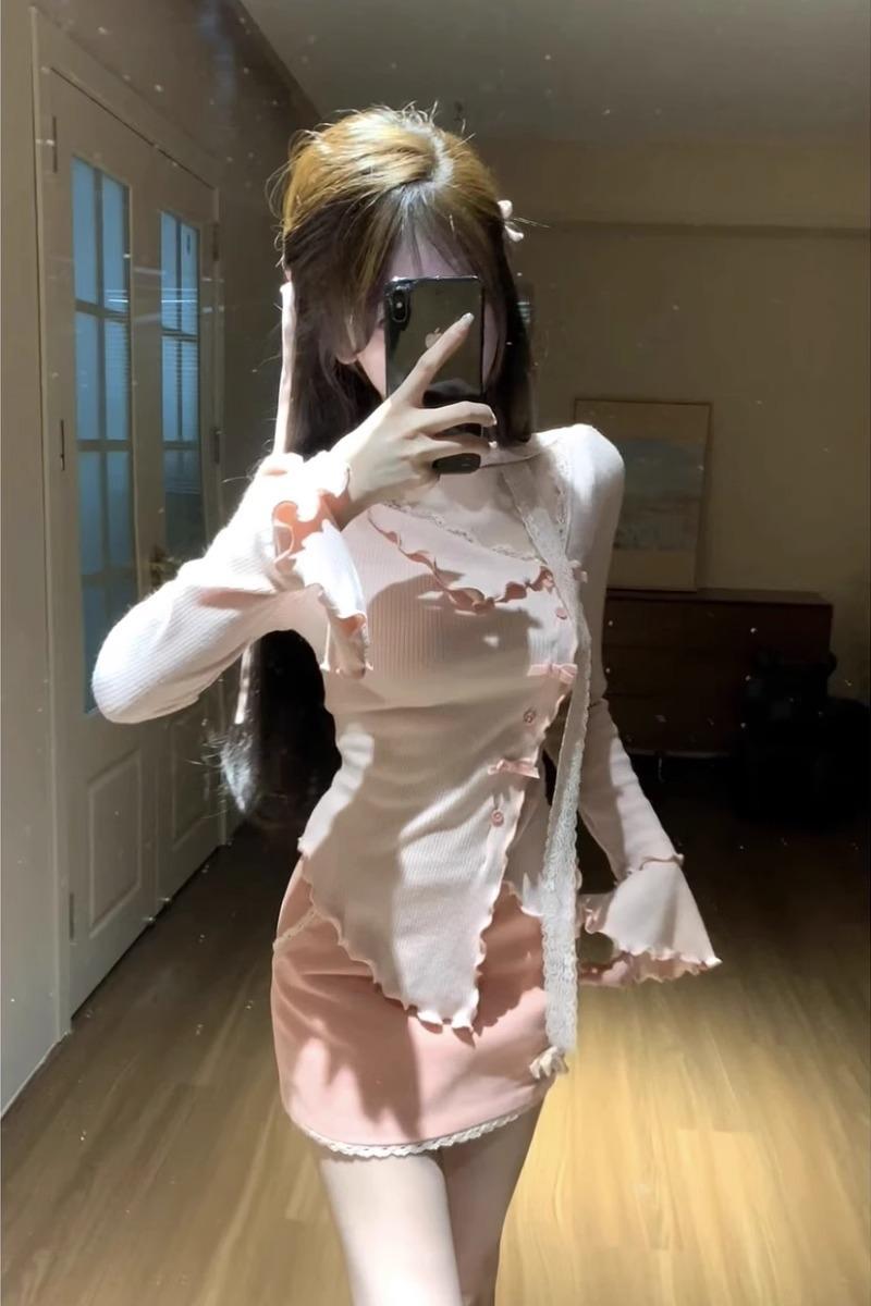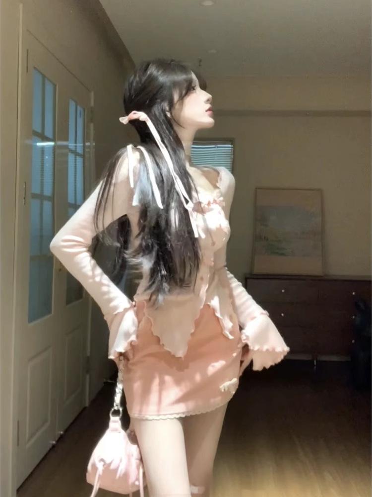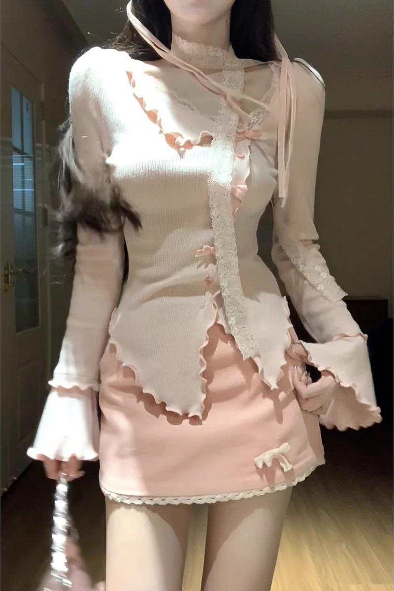 Traje Dulce para Personas Pequeñas, Look Adelgazante de Primavera, Top Asimétrico Moderno y Rejuvenecedor + Conjunto de Dos Piezas de Falda para Mujer
