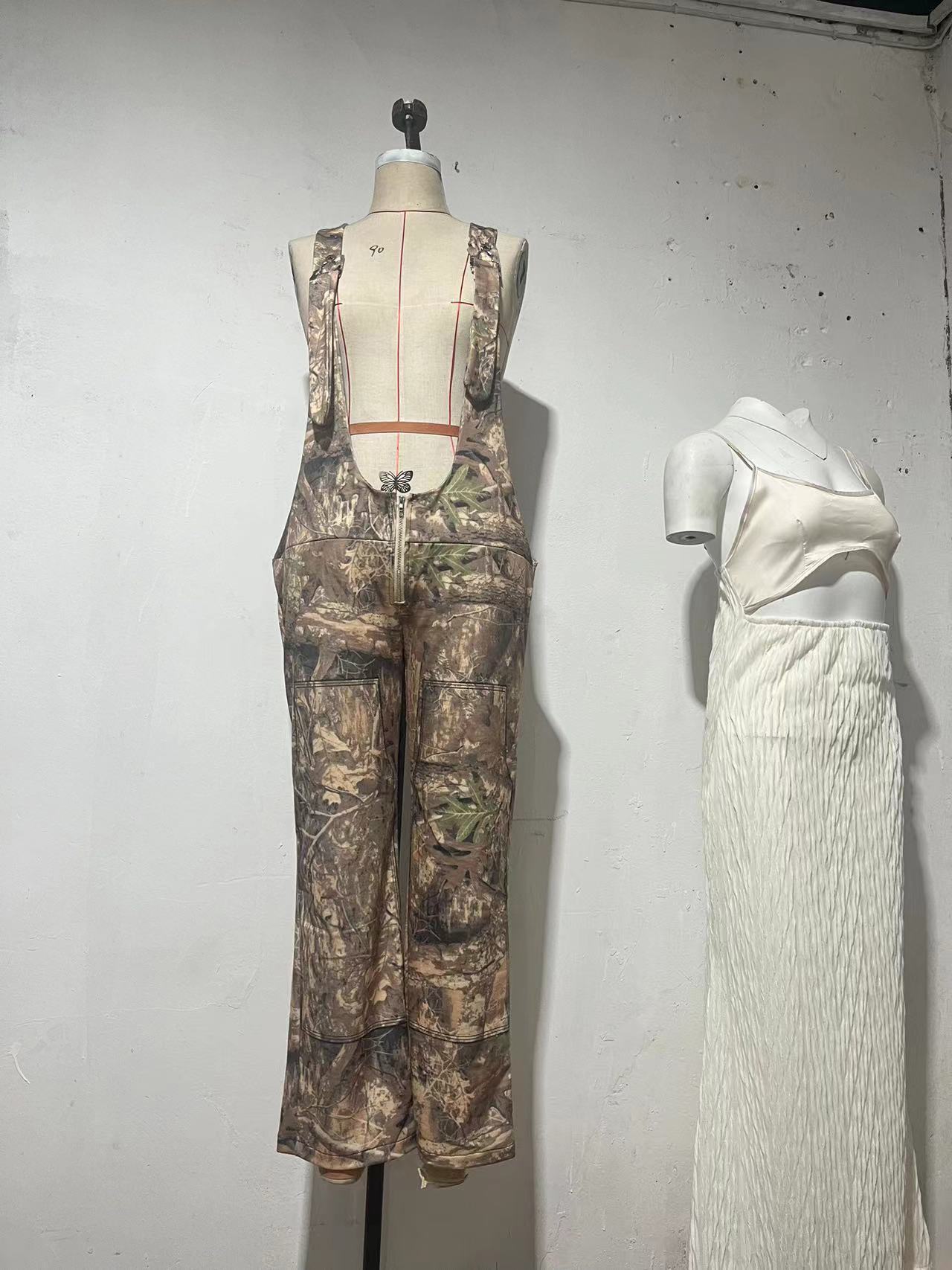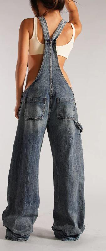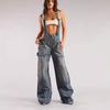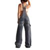 Estilo Callejero Europeo y Americano de Cintura Baja con Tirantes, Monopieza de Pierna Ancha, Estampado Digital, Verano Elegante Sexy Desgastado Pantalones Rectos