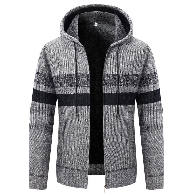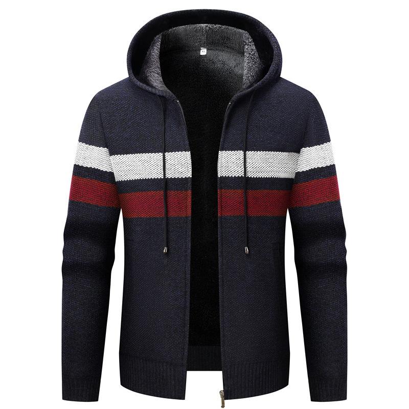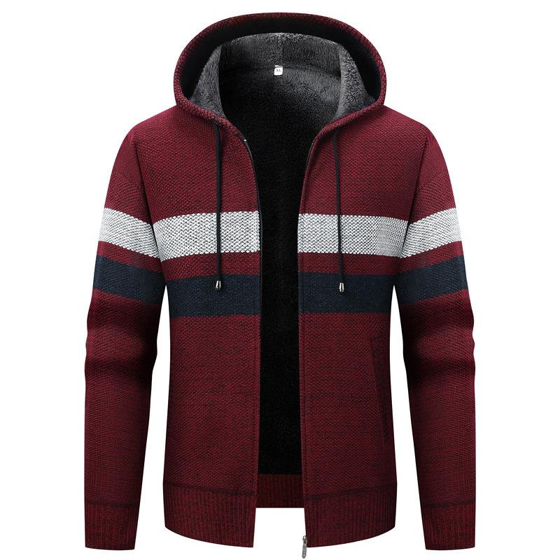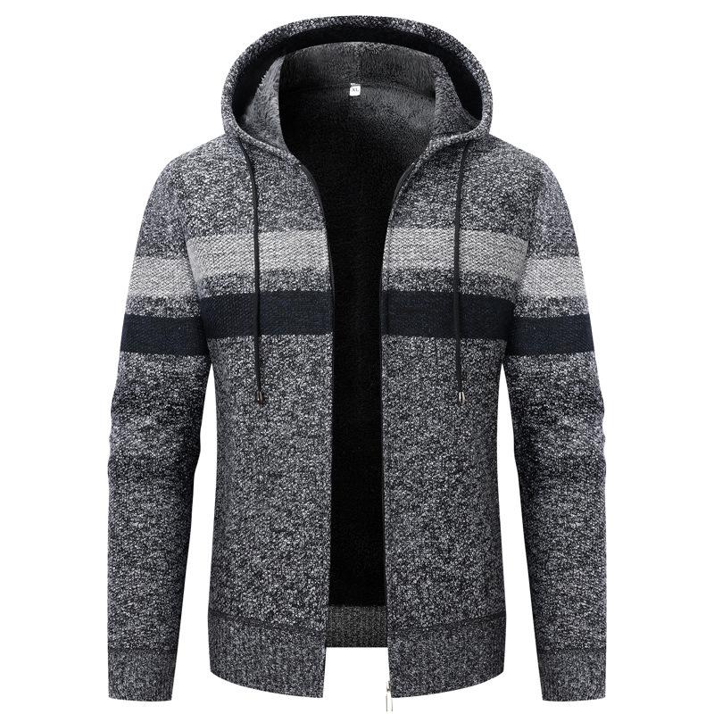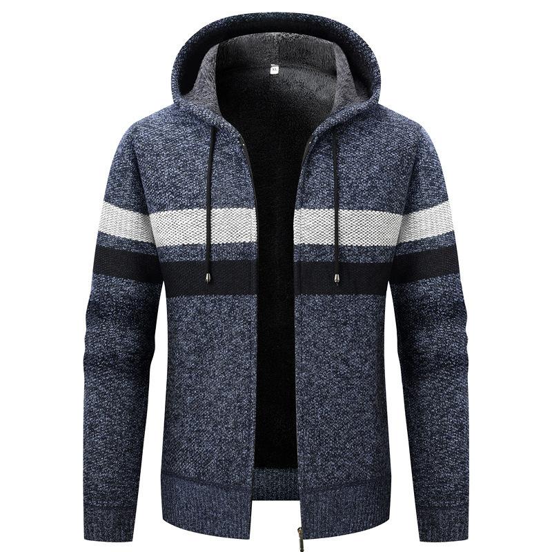 Suéter Nuevo para Hombre con Capucha y Forro Polar, Bloque de Color, Cárdigan de Moda, Chaqueta, Suéter Cálido