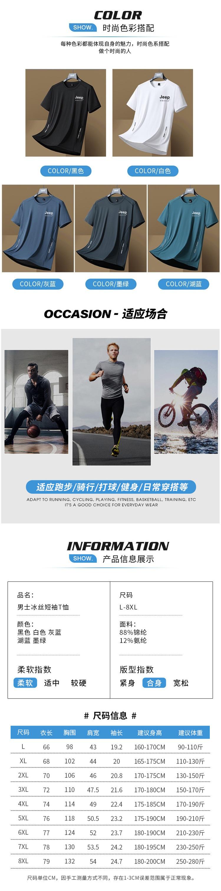 Camiseta de Verano de Manga Corta de Seda de Hielo, Deportiva, Holgada, Delgada, de Secado Rápido, Transpirable, Casual, Talla Extra, Hombre Gordo