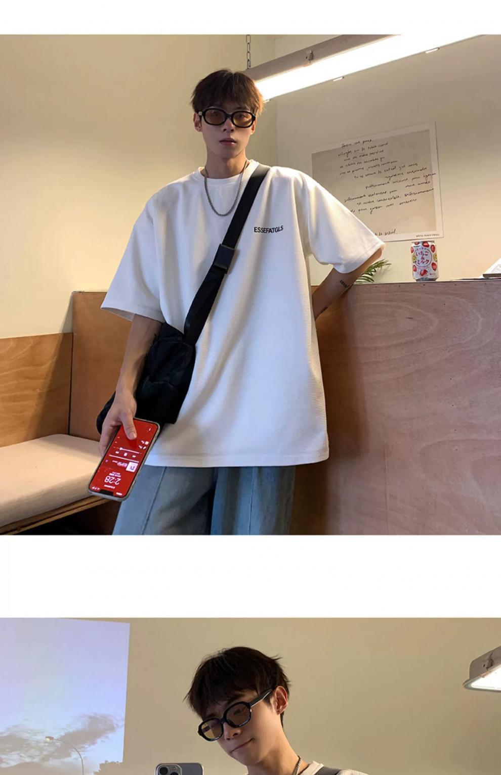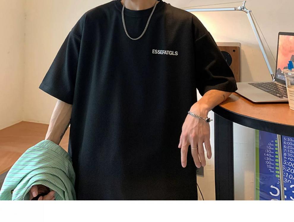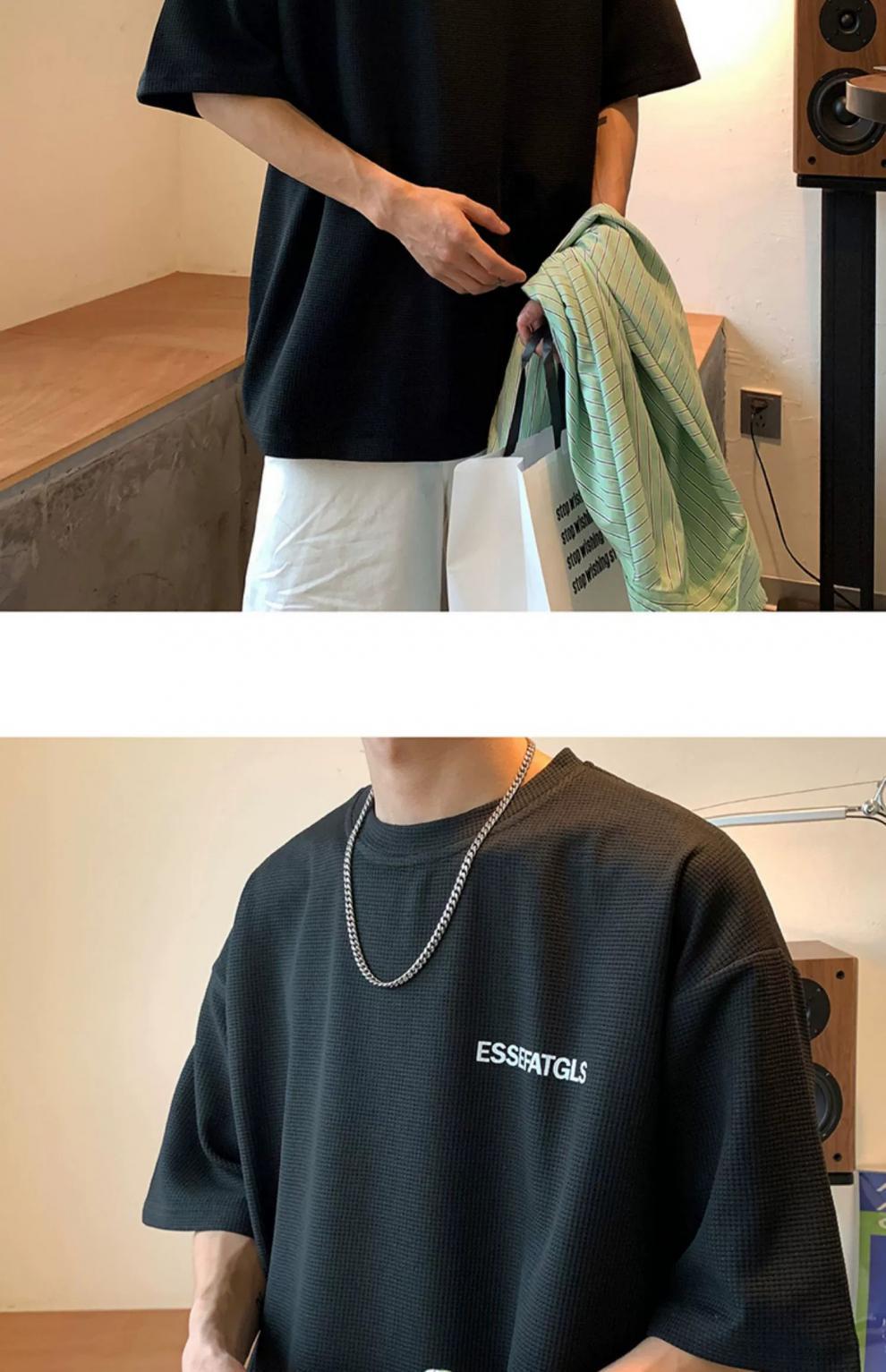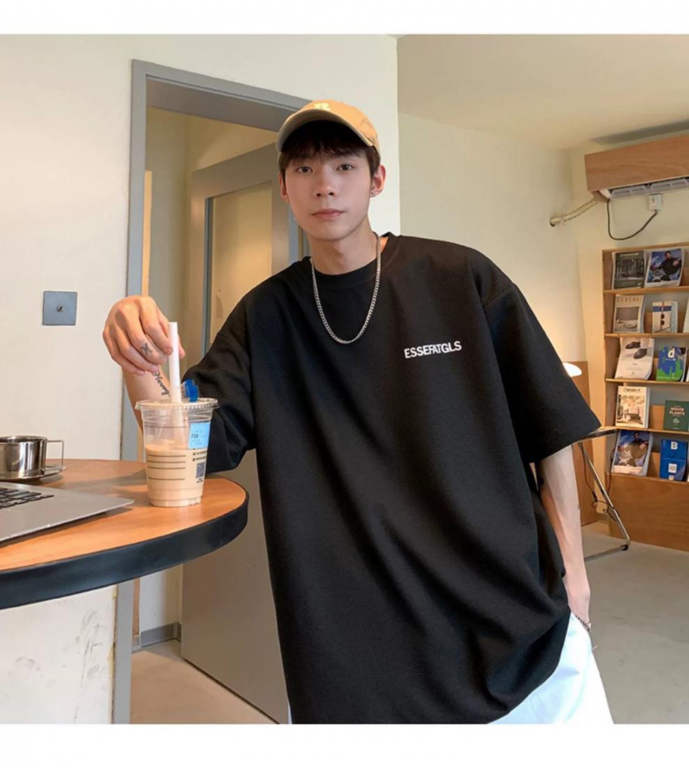 Nueva Camiseta de Verano de Manga Corta para Hombre Verano Streetwear Japonés Top de Media Manga Holgada Casual Camiseta de Cinco Mangas ins