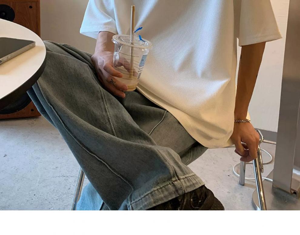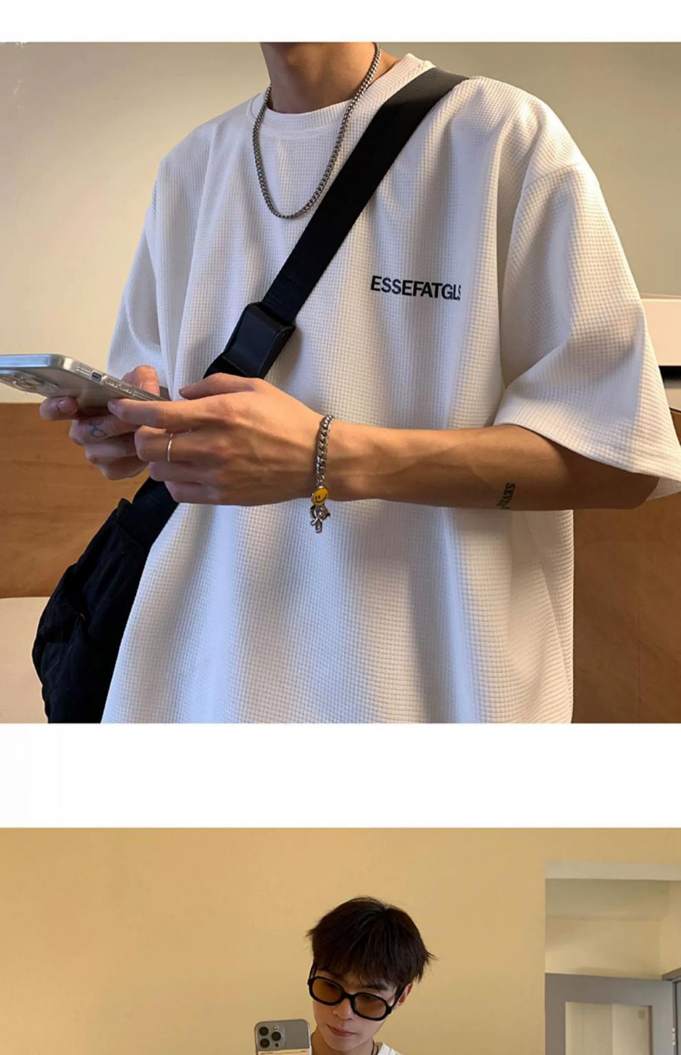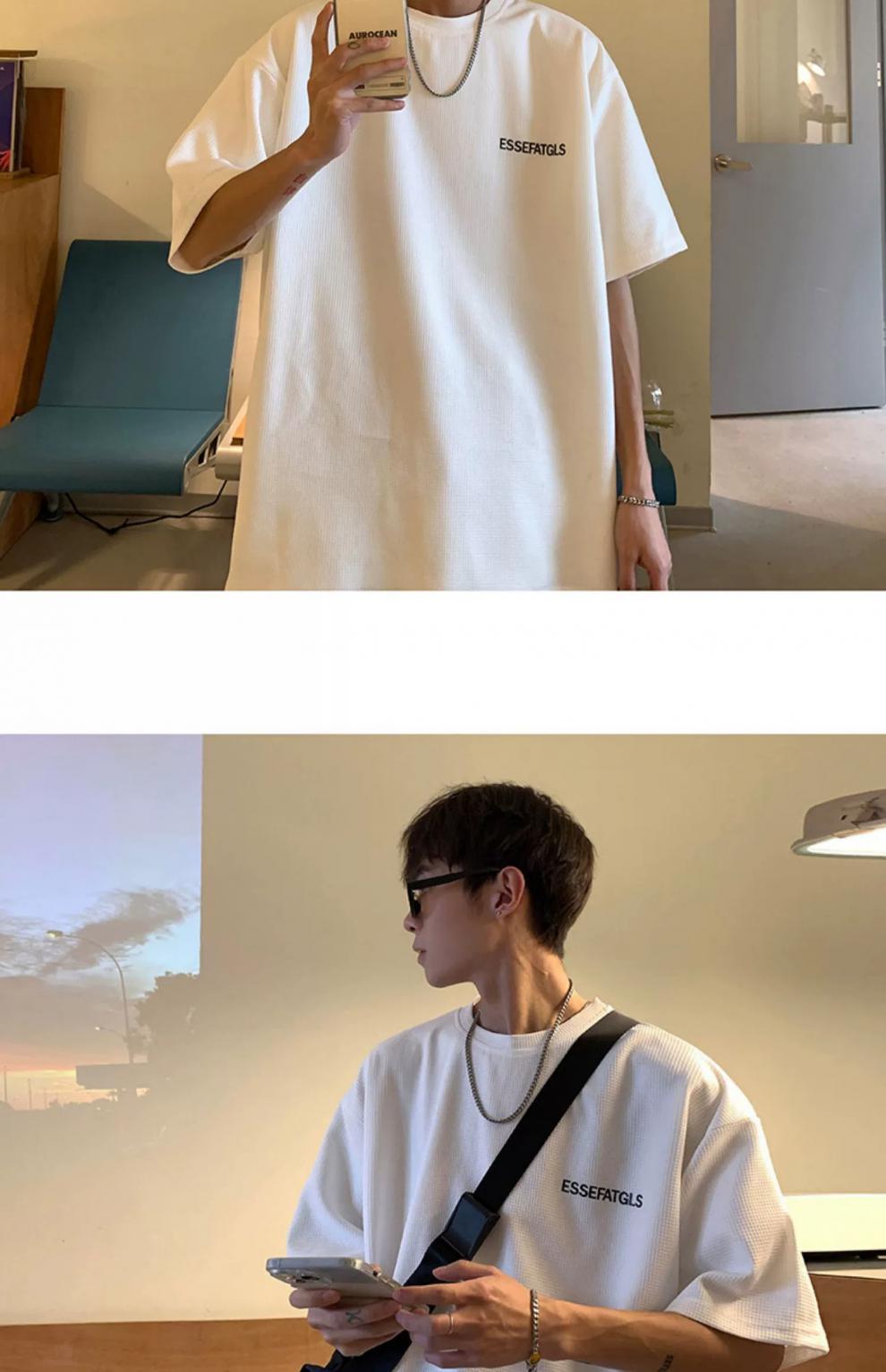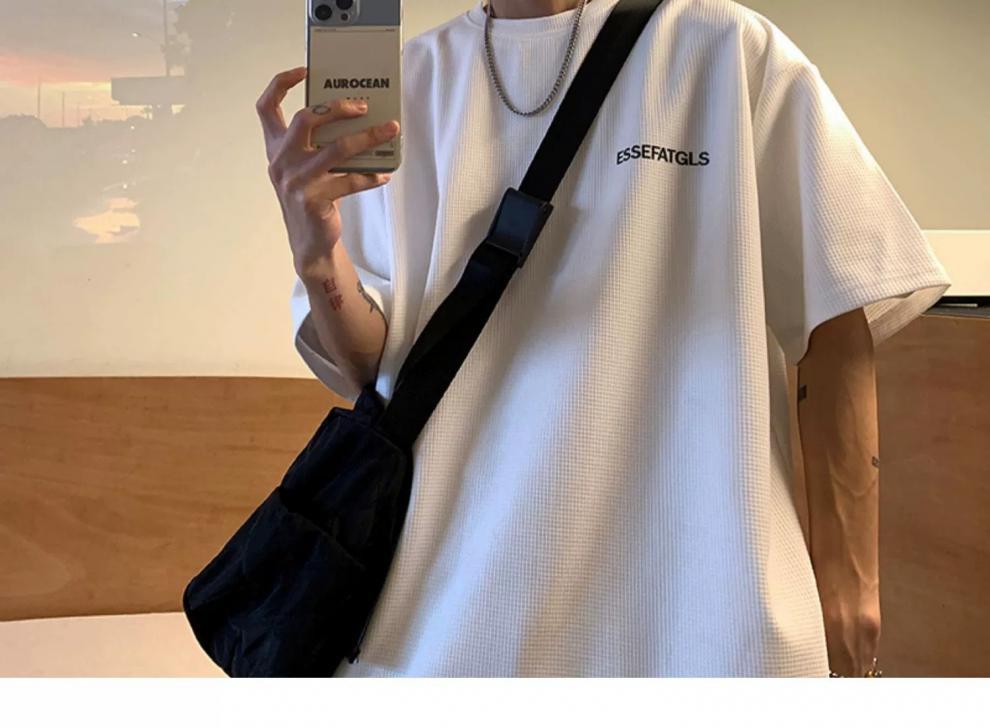 Nueva Camiseta de Verano de Manga Corta para Hombre Verano Streetwear Japonés Top de Media Manga Holgada Casual Camiseta de Cinco Mangas ins