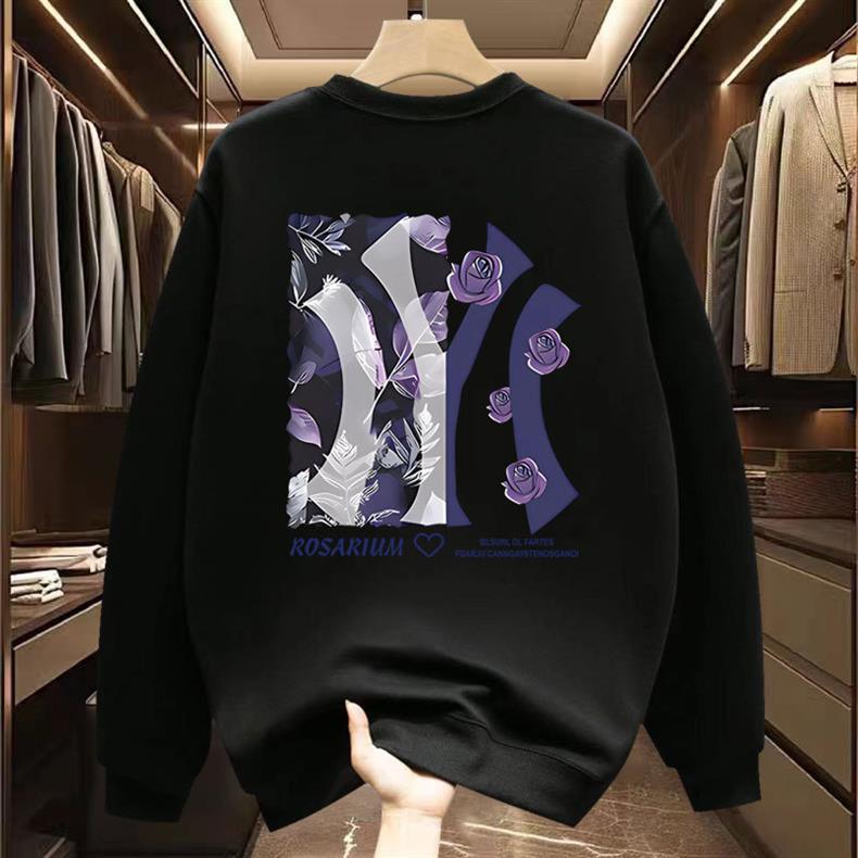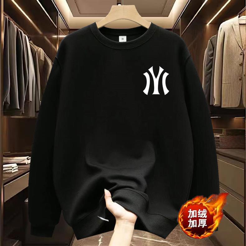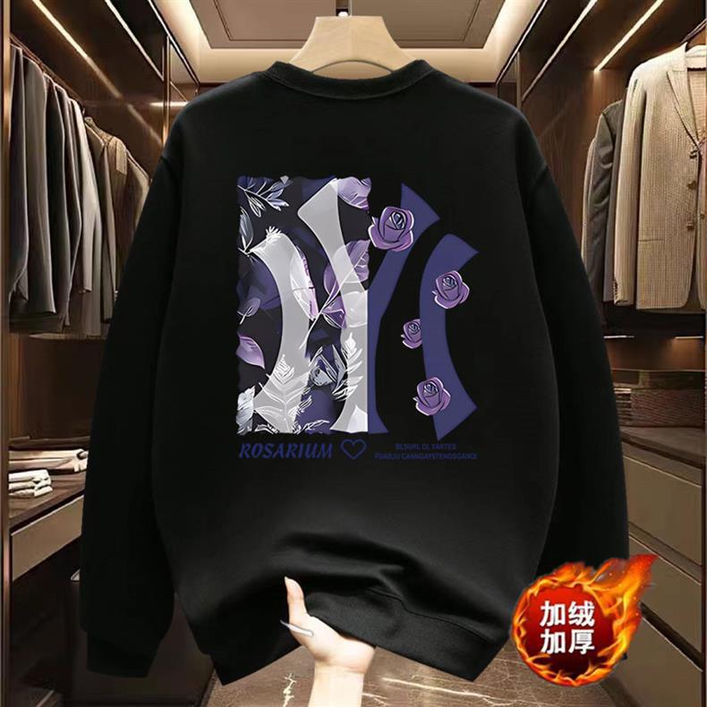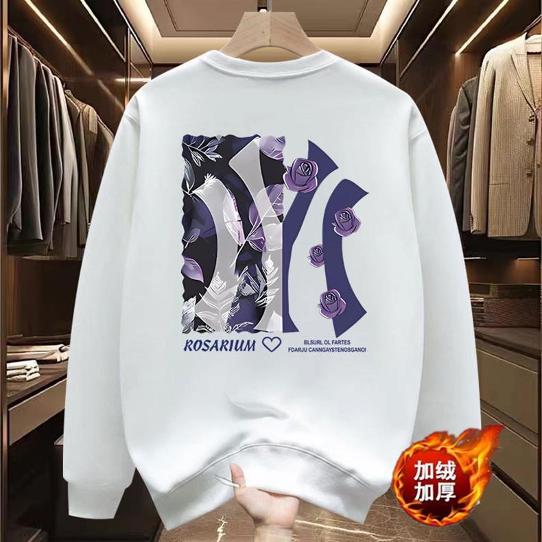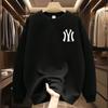 Marca de moda americana nuevo casual para hombre otoño e invierno sudadera plus terciopelo tendencia retro cuello redondo versátil estampado tops para hombre y mujer