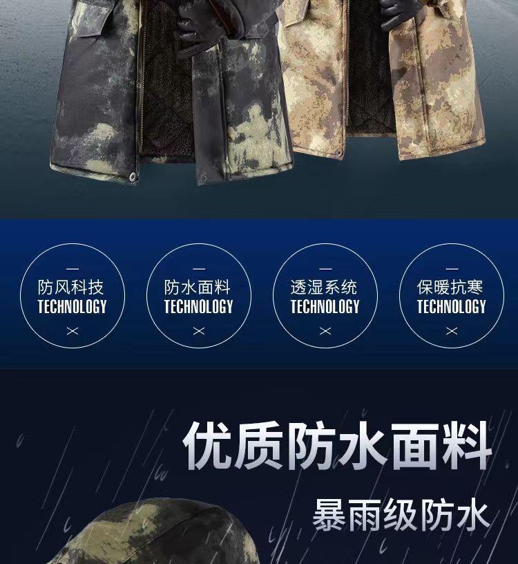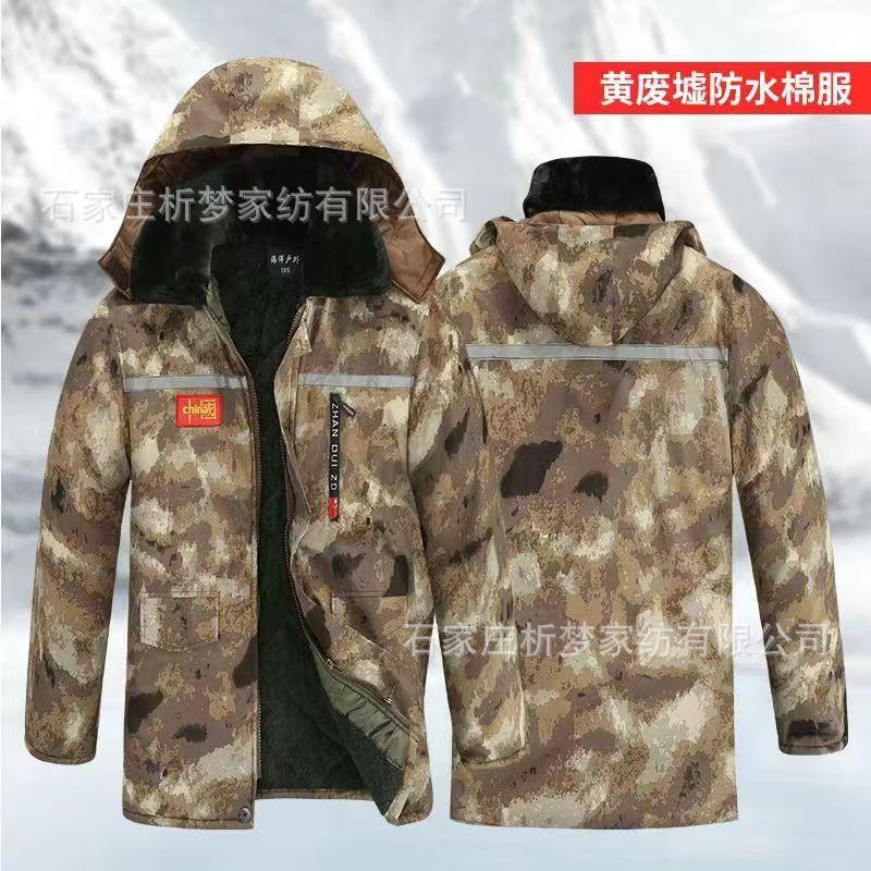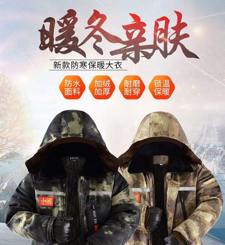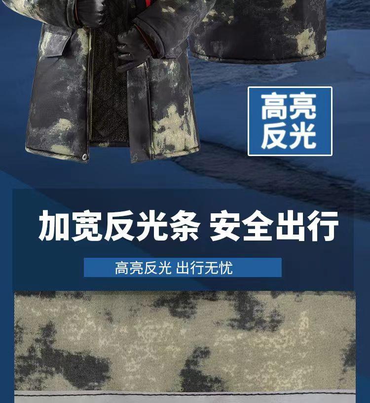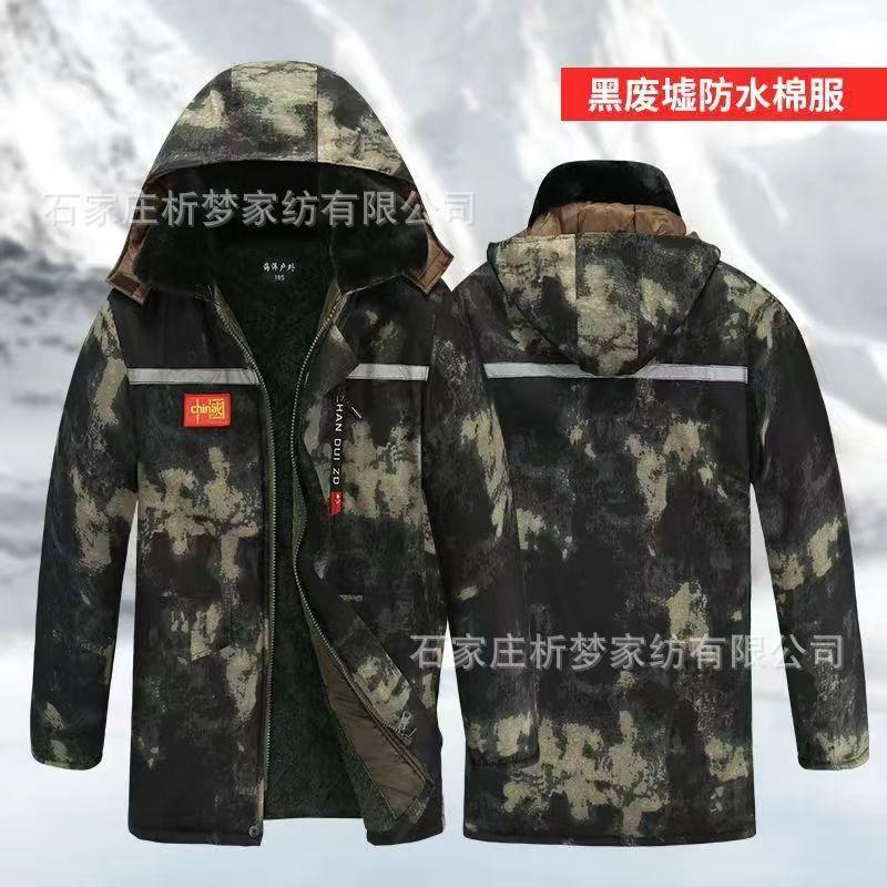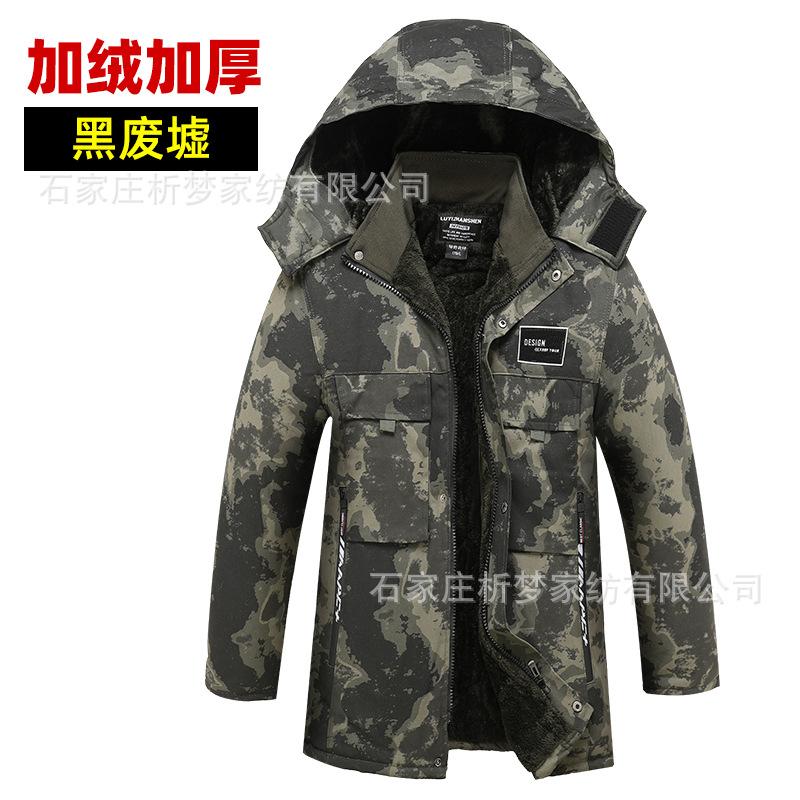Abrigo de Algodón Camuflaje, Terciopelo Engrosado, Chaqueta de Algodón para Protección Laboral, Ropa para Almacenamiento en Frío, Abrigo de Algodón de Protección Laboral de Longitud Media