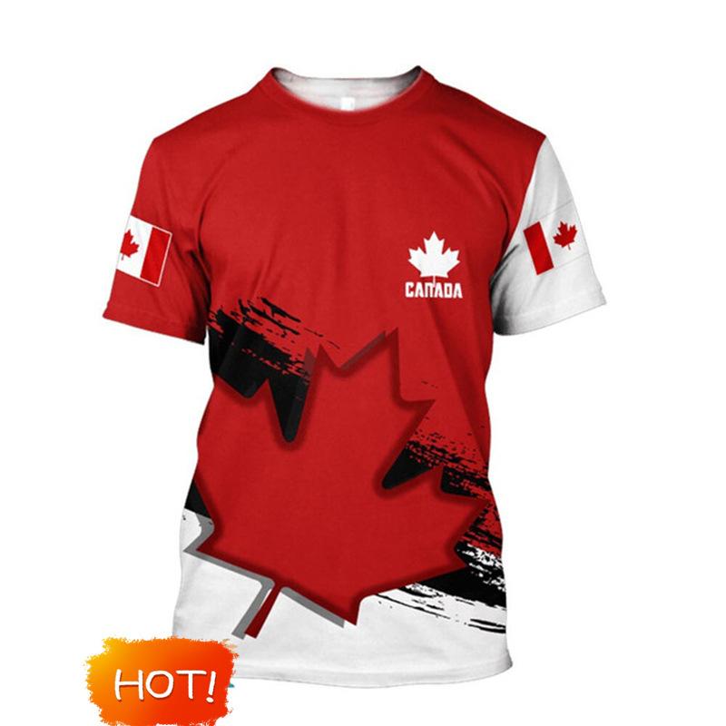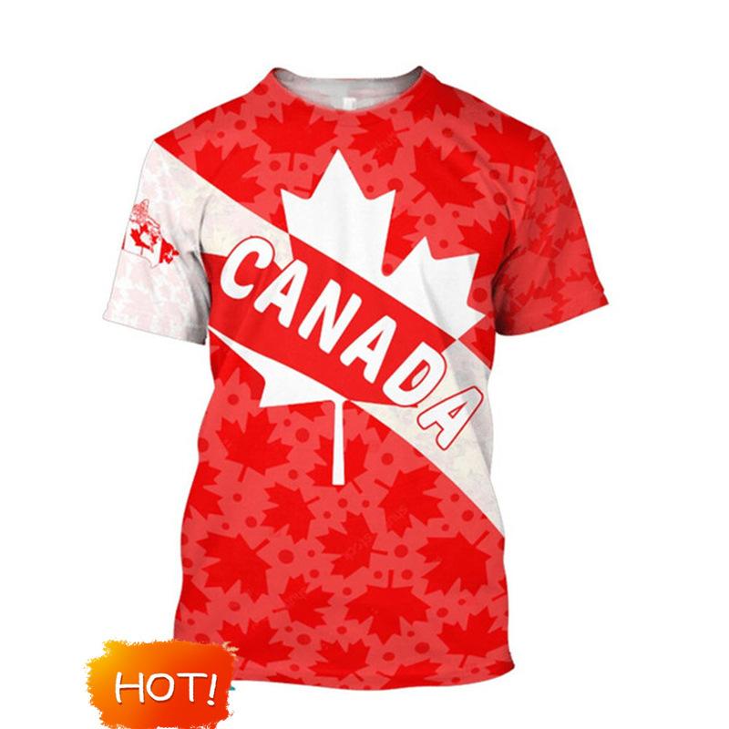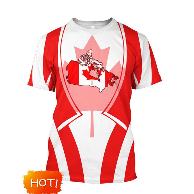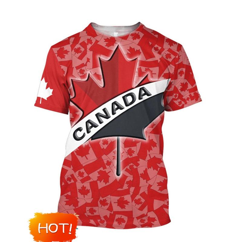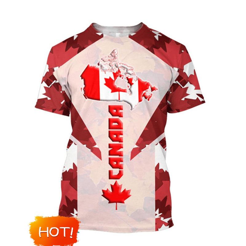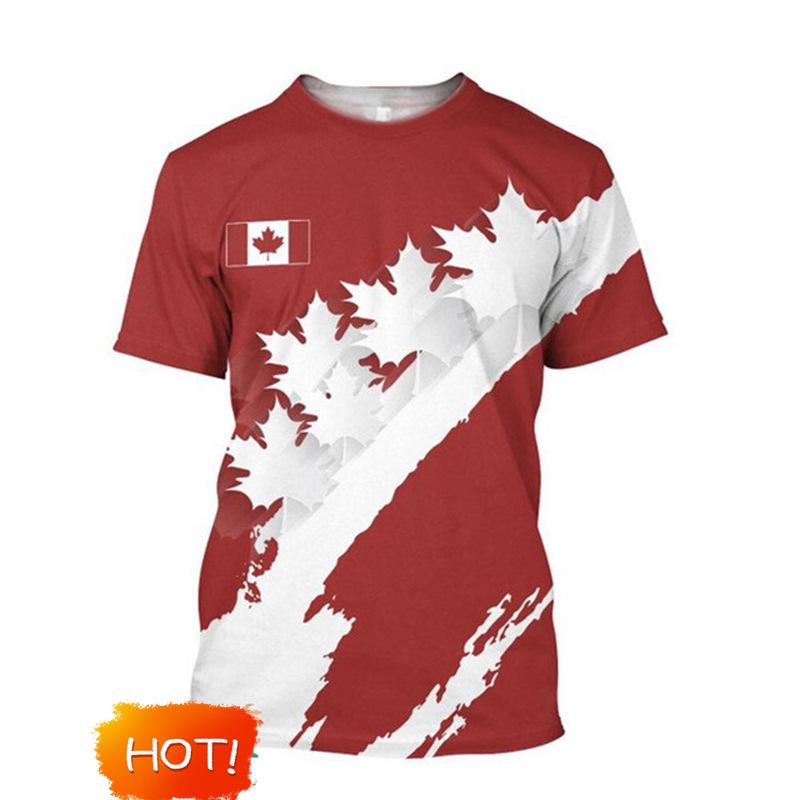 Bandera de Canadá Hoja de Arce Gráfico Estampado 3D Transfronterizo Nueva Camiseta de Manga Corta para Hombre Ventas Directas de Fábrica Fuente de Comercio Exterior