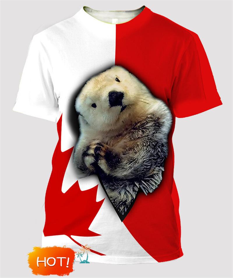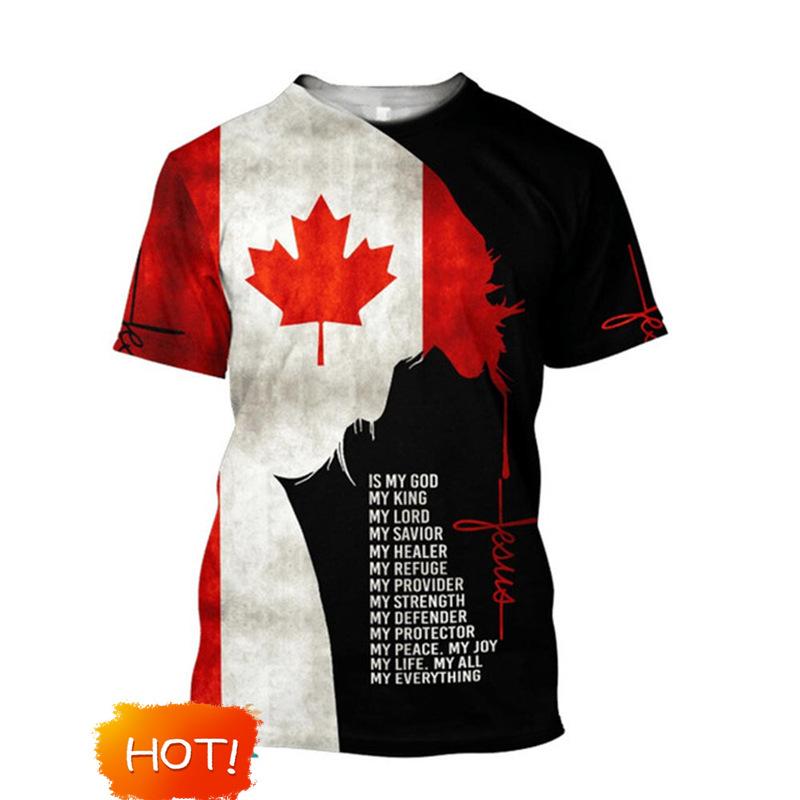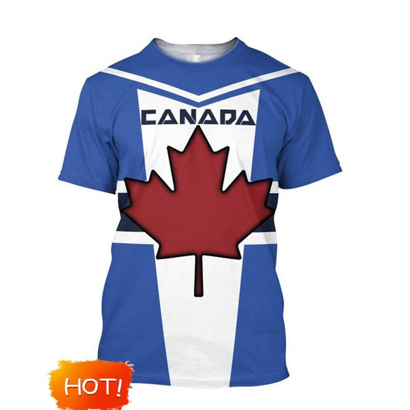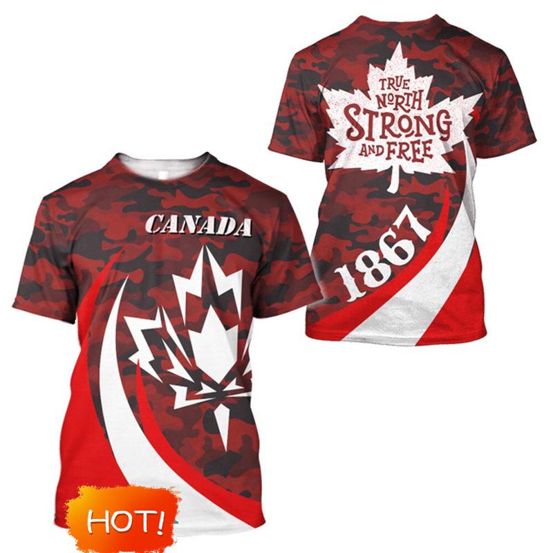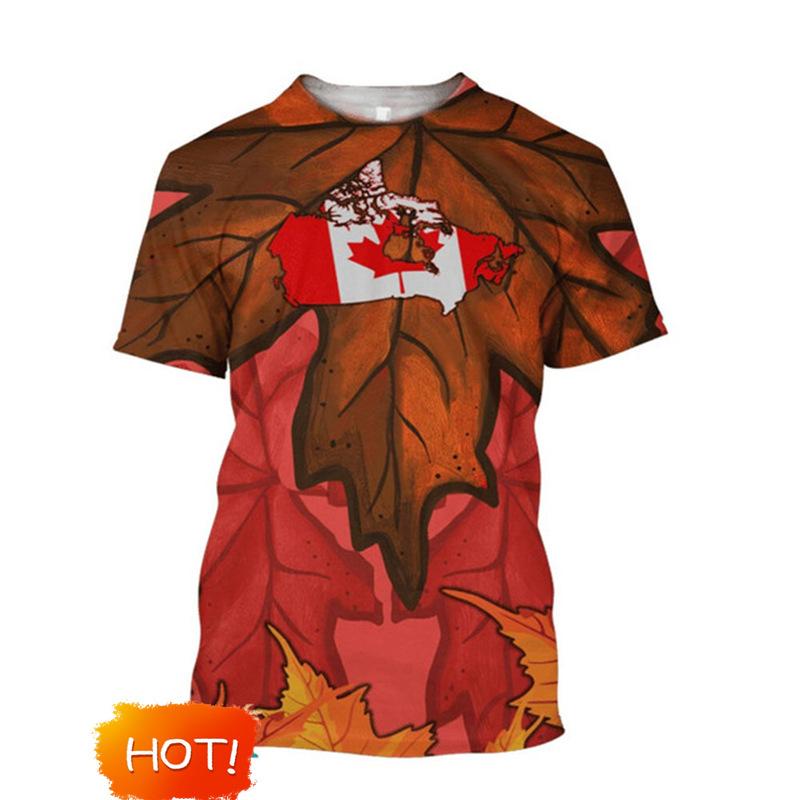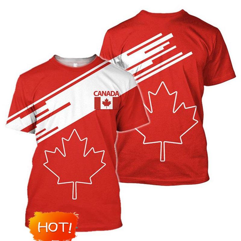 Bandera de Canadá Hoja de Arce Gráfico Estampado 3D Transfronterizo Nueva Camiseta de Manga Corta para Hombre Ventas Directas de Fábrica Fuente de Comercio Exterior