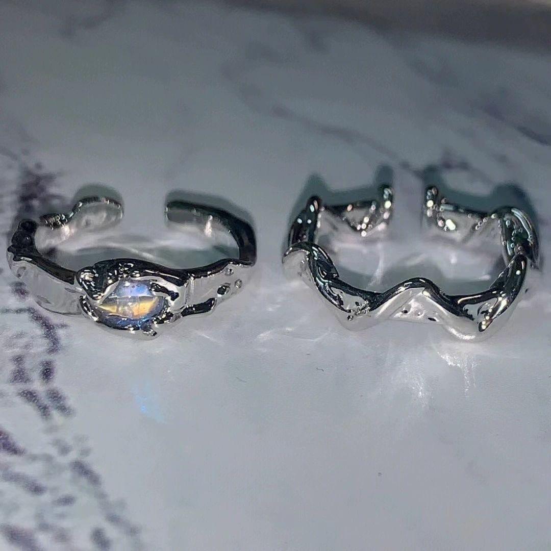 M1024 [wave geometric ring], M1025 [cold moonlight ring], M1024+m1025 ring set of two