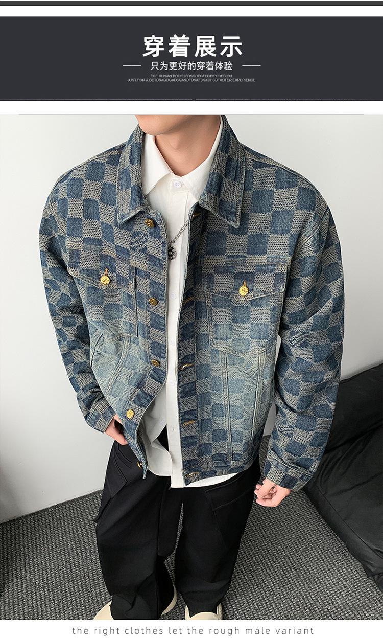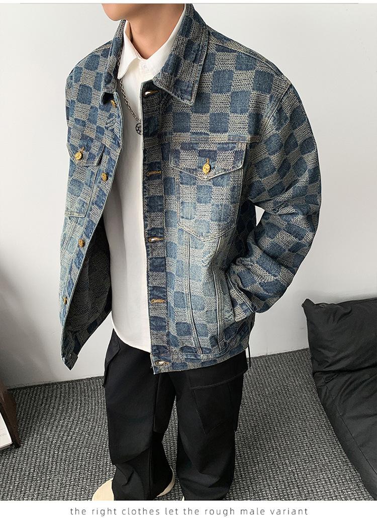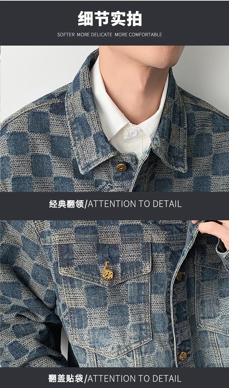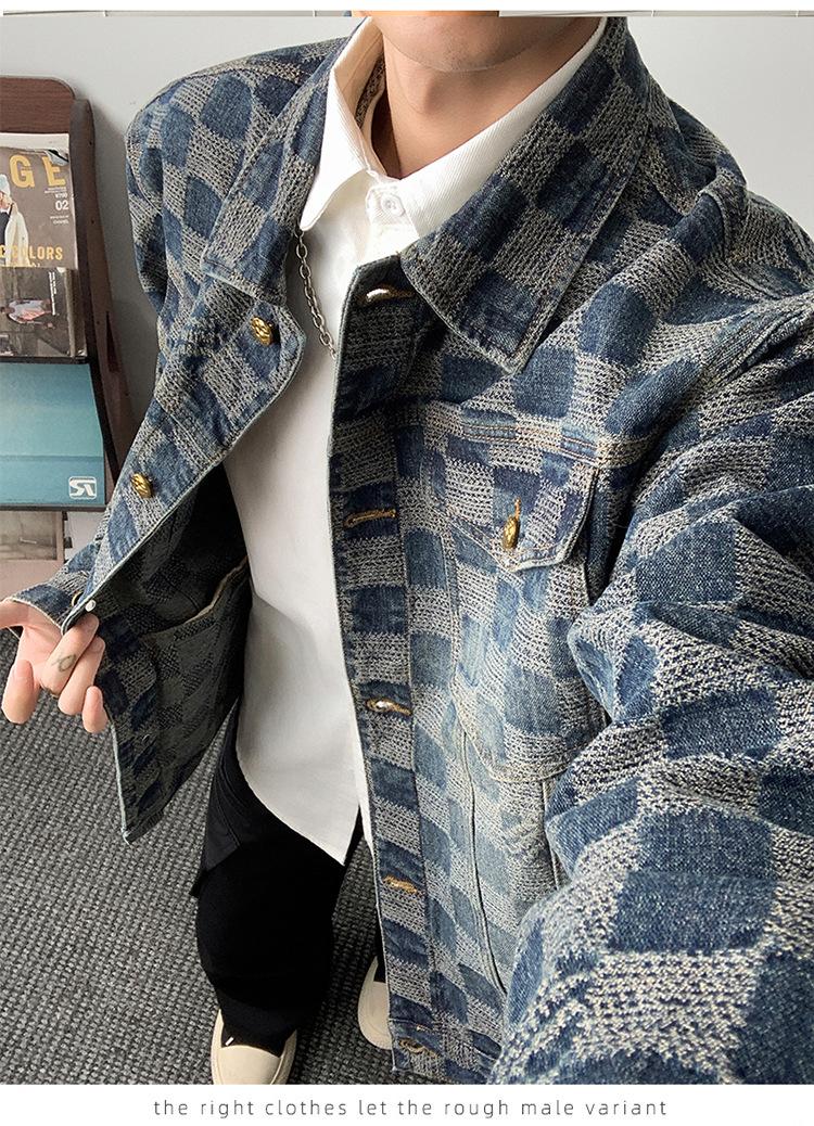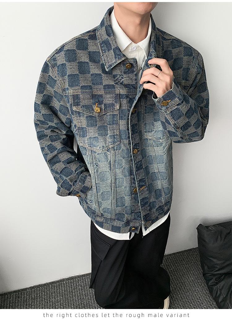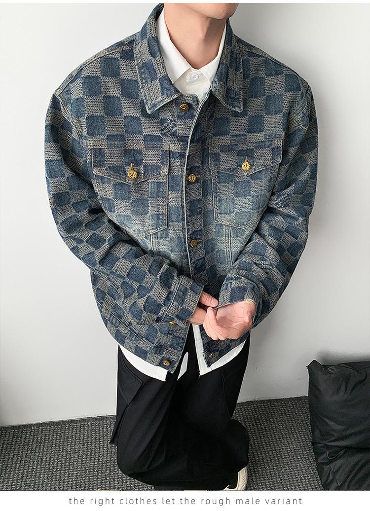 Chaqueta Casual Nueva para Hombre Primavera y Otoño Tendencia Comercio Exterior Cuadros Lujo Ligero Unisex Suelta Chaqueta de Mezclilla