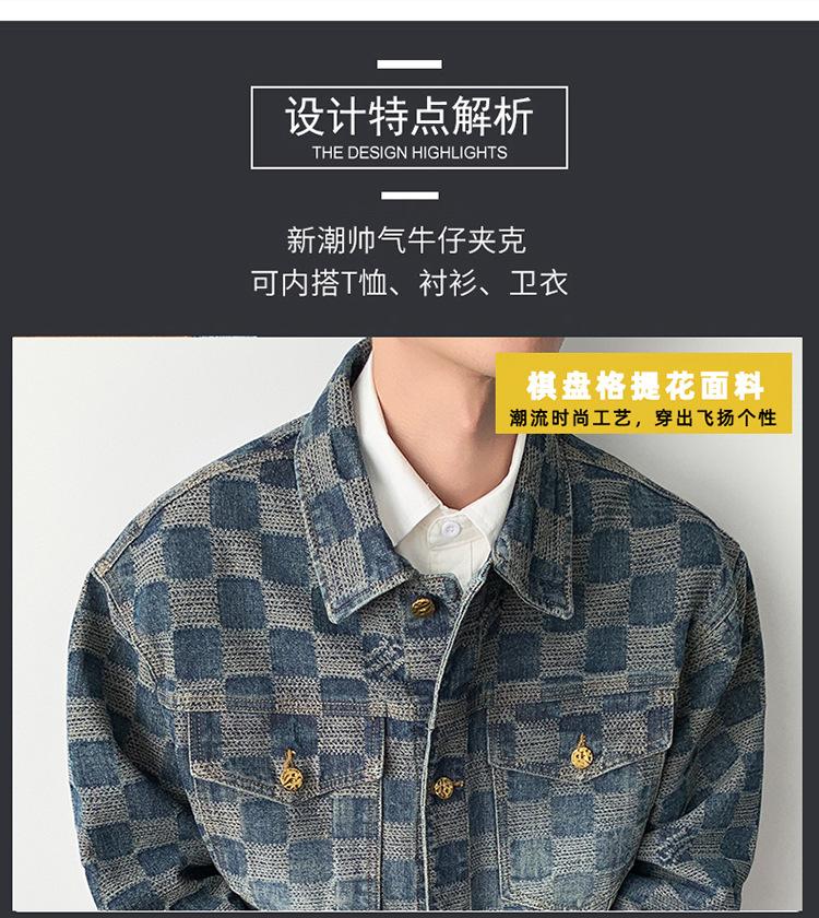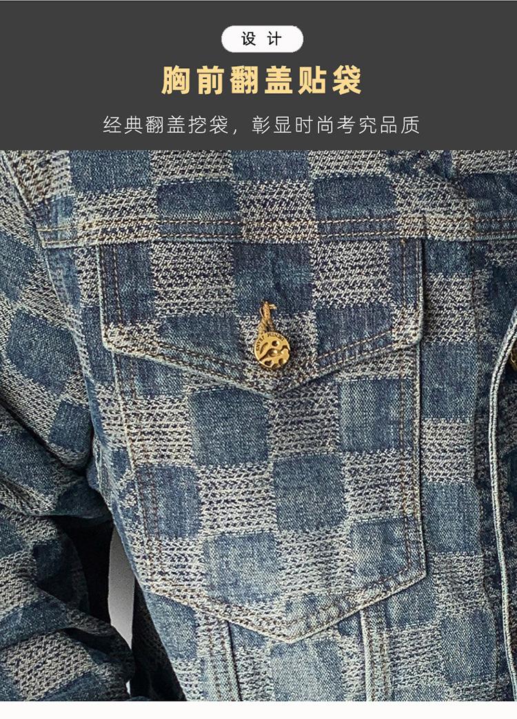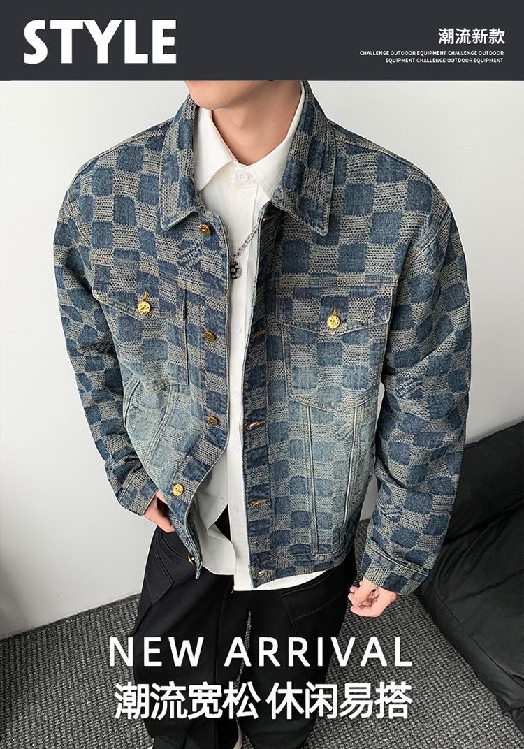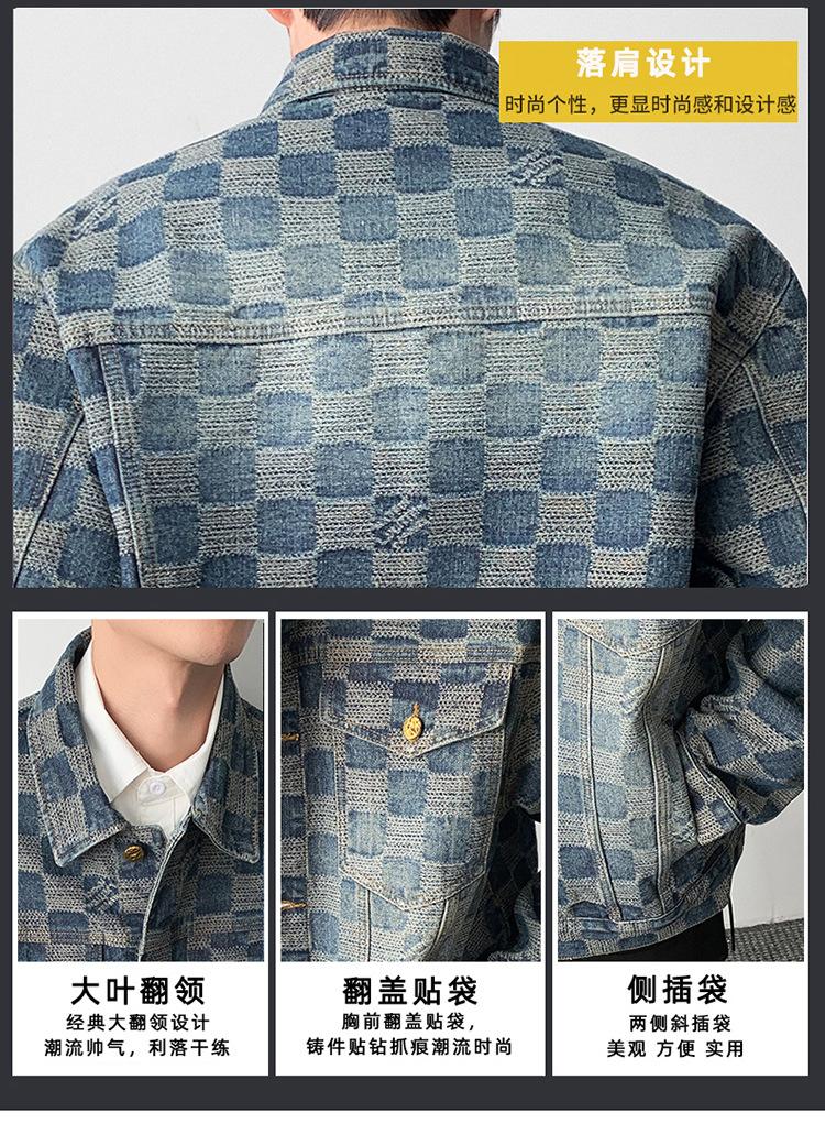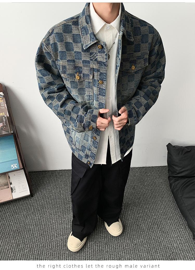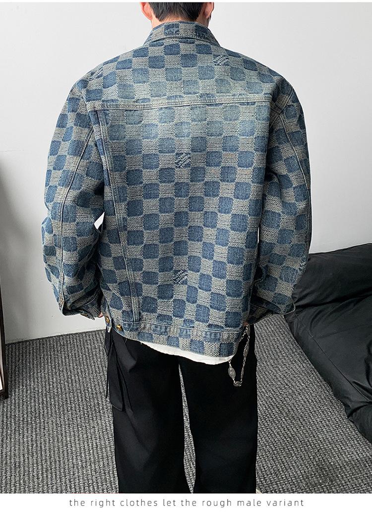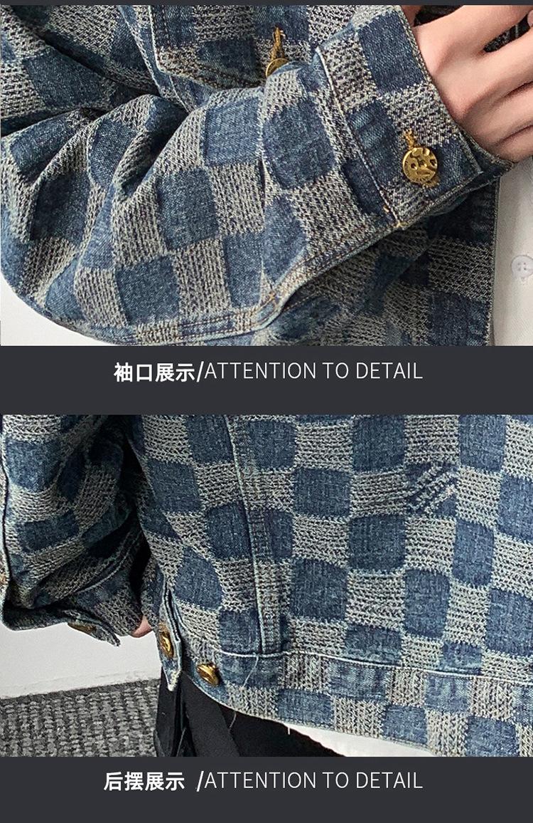 Chaqueta Casual Nueva para Hombre Primavera y Otoño Tendencia Comercio Exterior Cuadros Lujo Ligero Unisex Suelta Chaqueta de Mezclilla