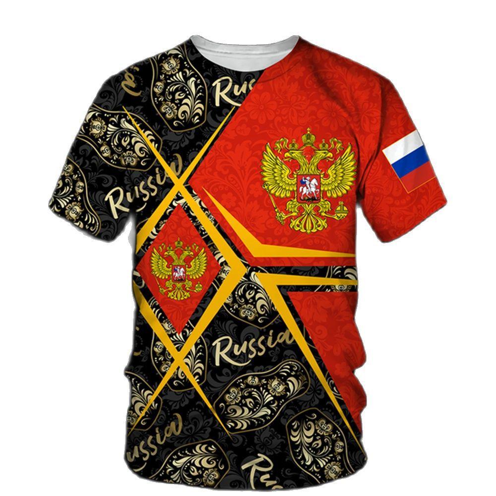 Camiseta de Hombre Bandera de Rusia Impresión 3D Manga Corta Redonda