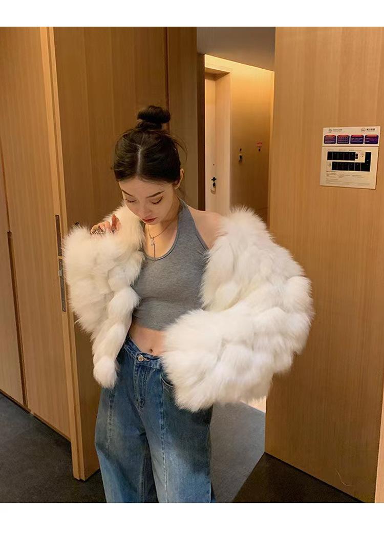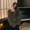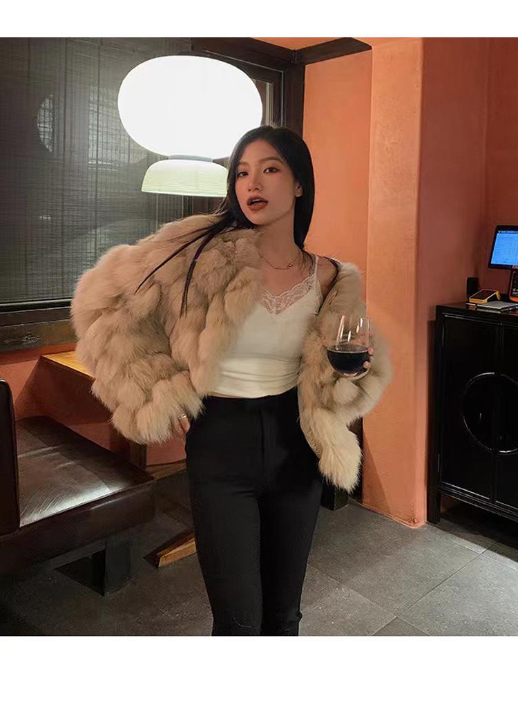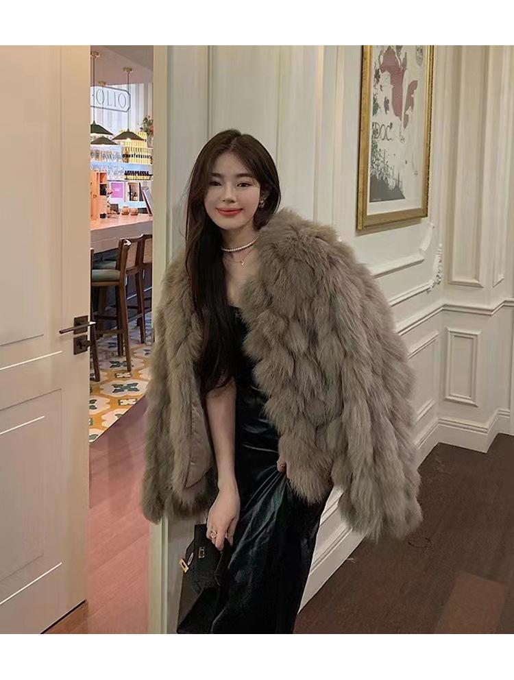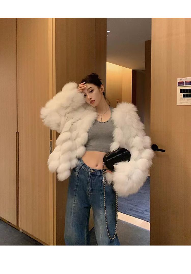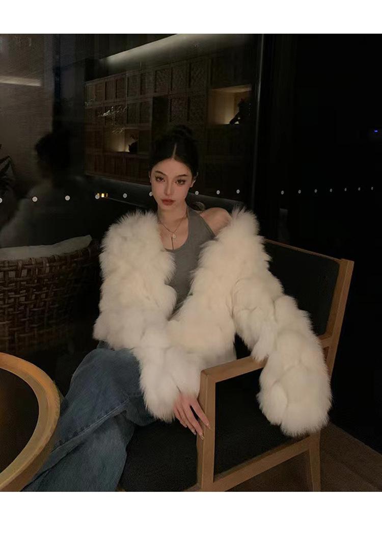 Foto real en stock otoño e invierno Nuevo abrigo de piel con cuello en V abrigo corto de piel para mujeres jóvenes