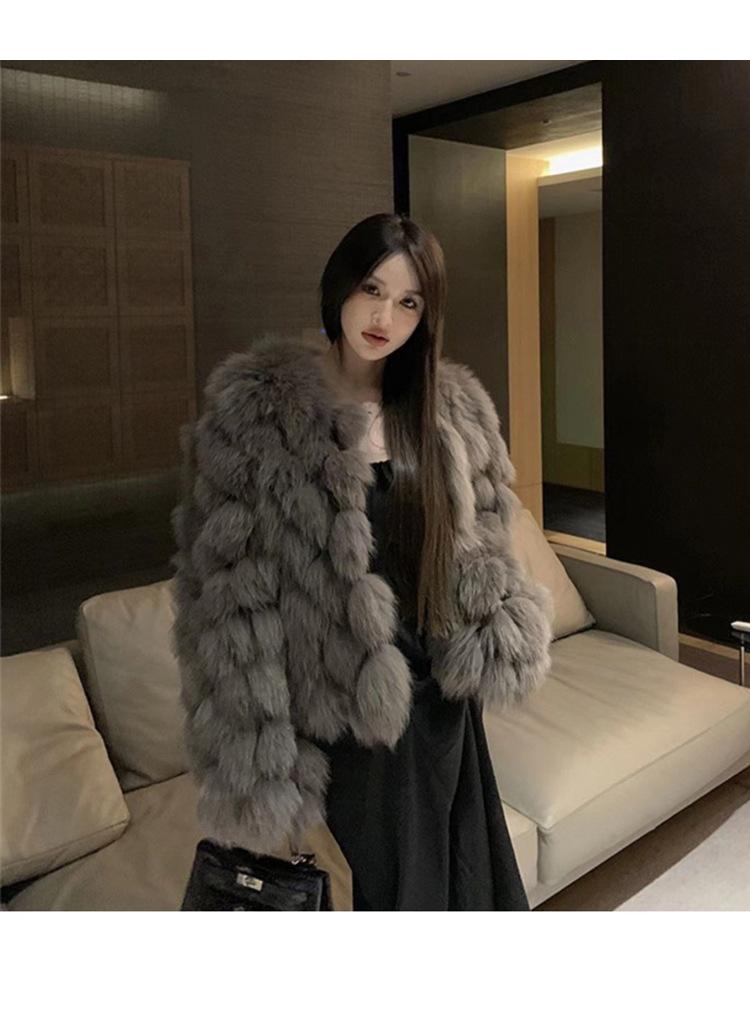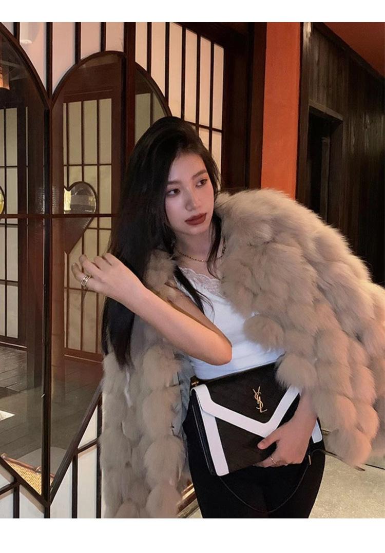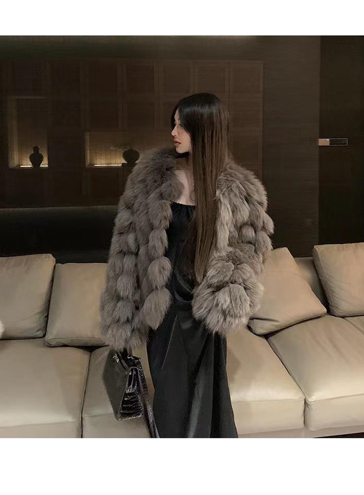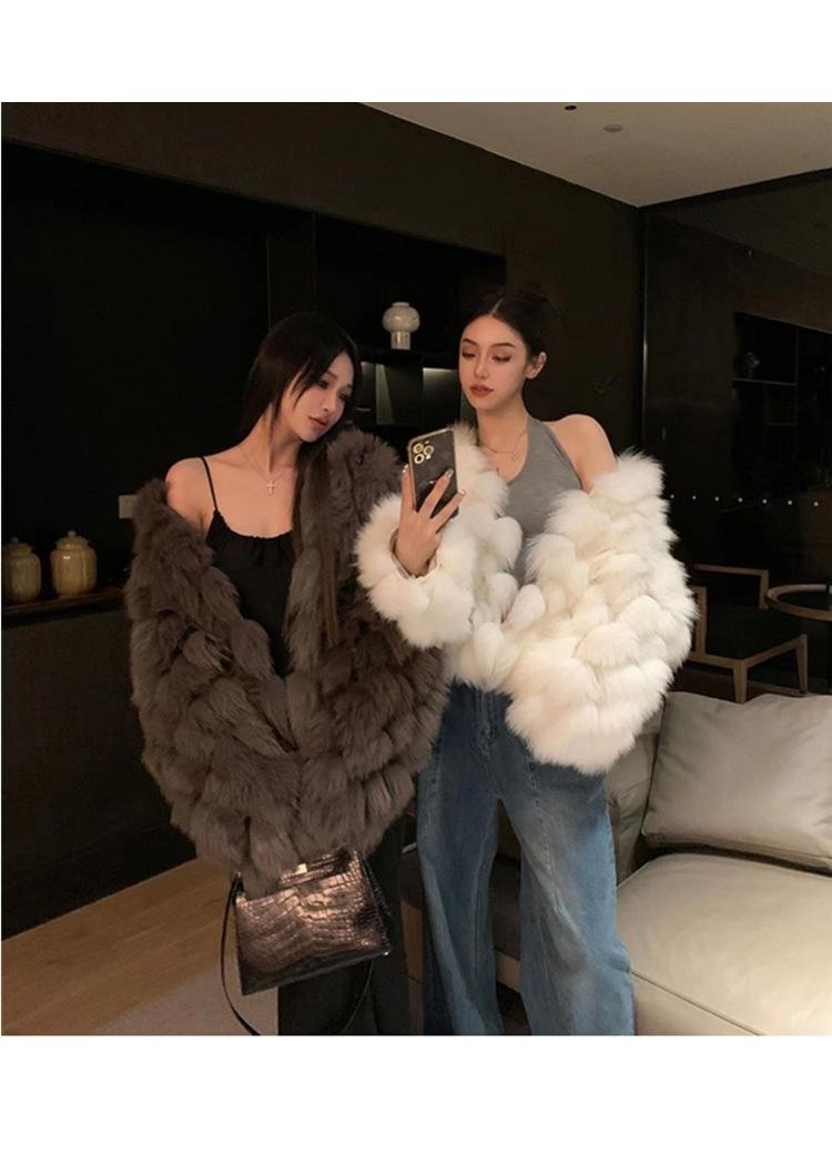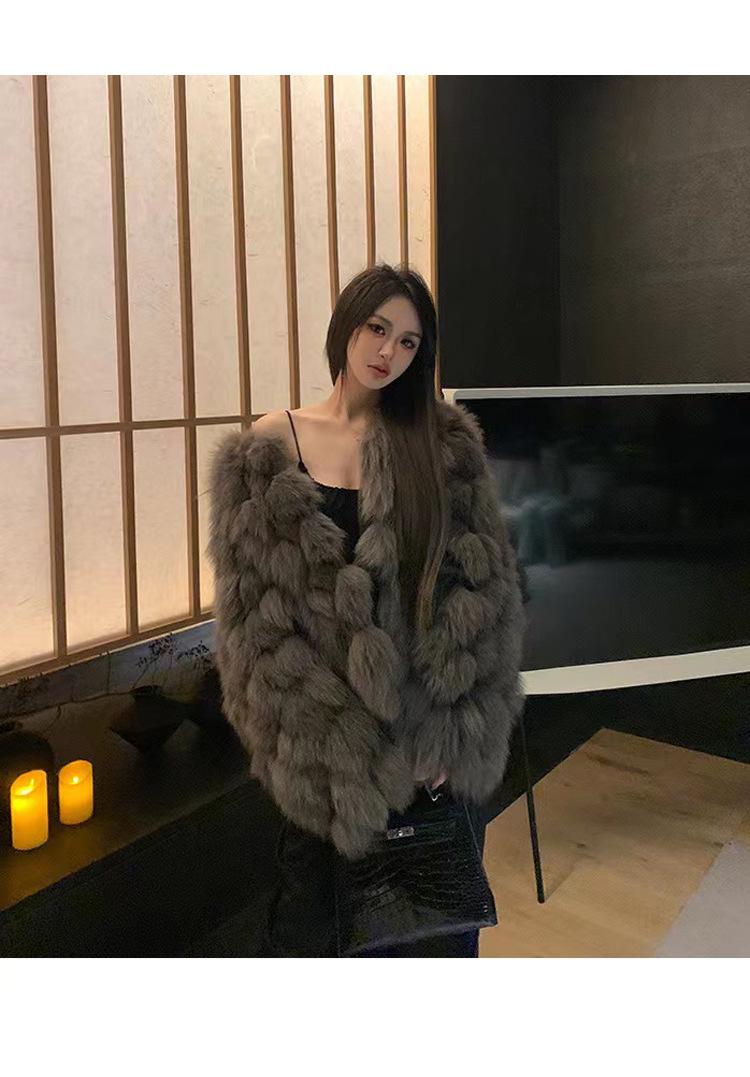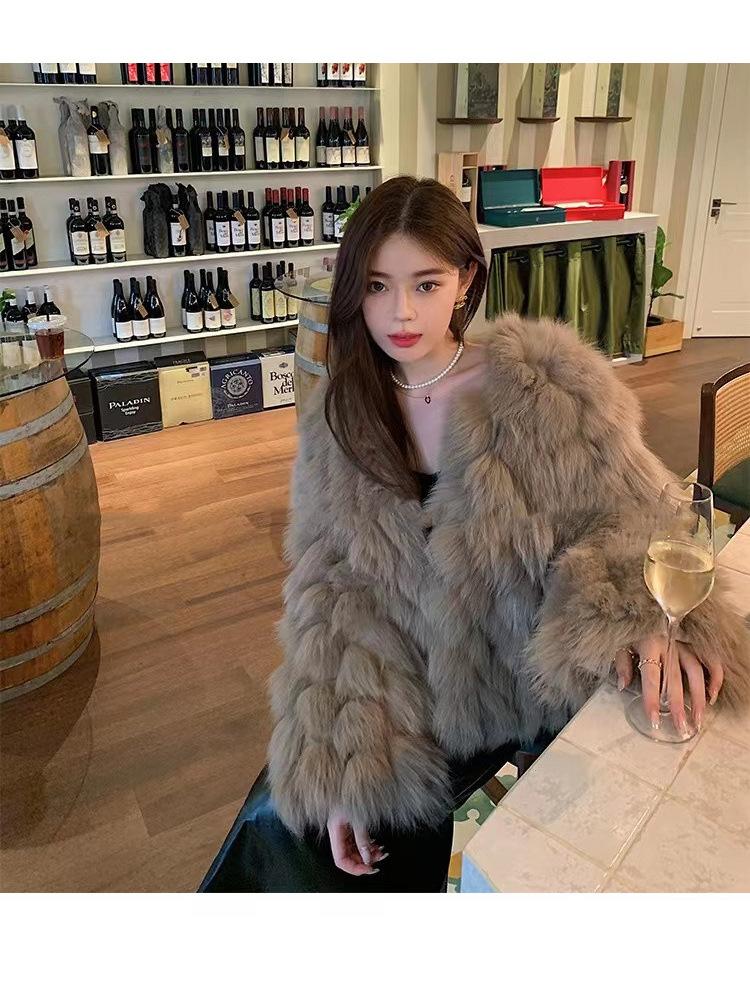 Foto real en stock otoño e invierno Nuevo abrigo de piel con cuello en V abrigo corto de piel para mujeres jóvenes