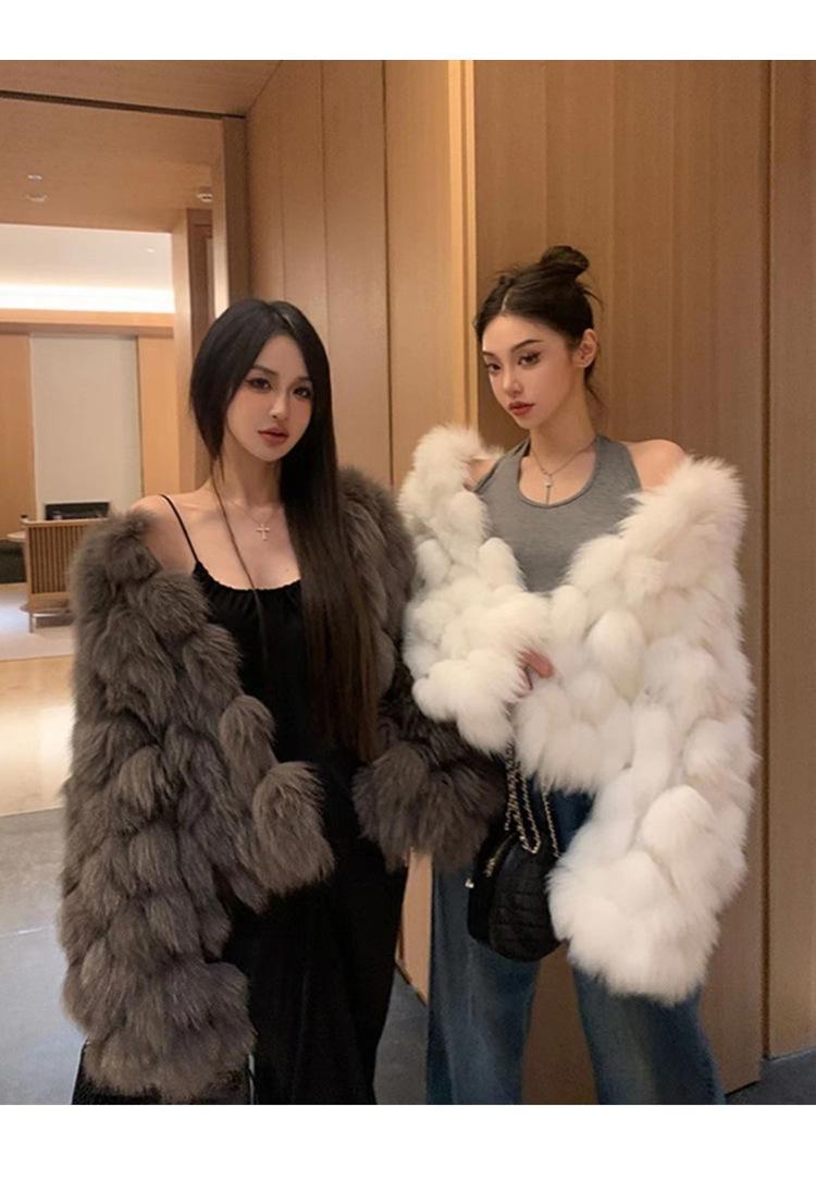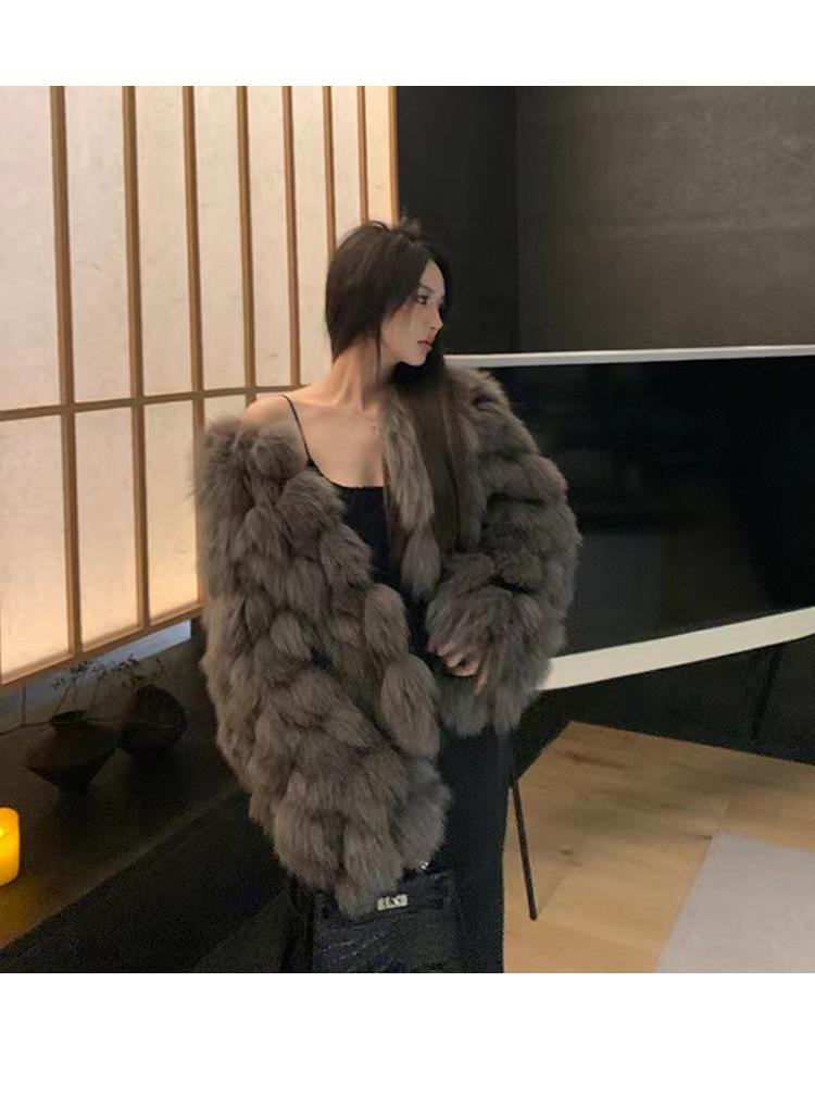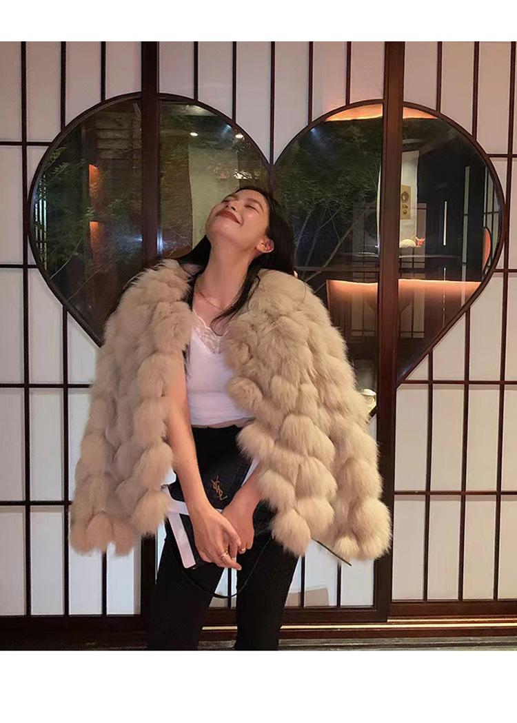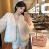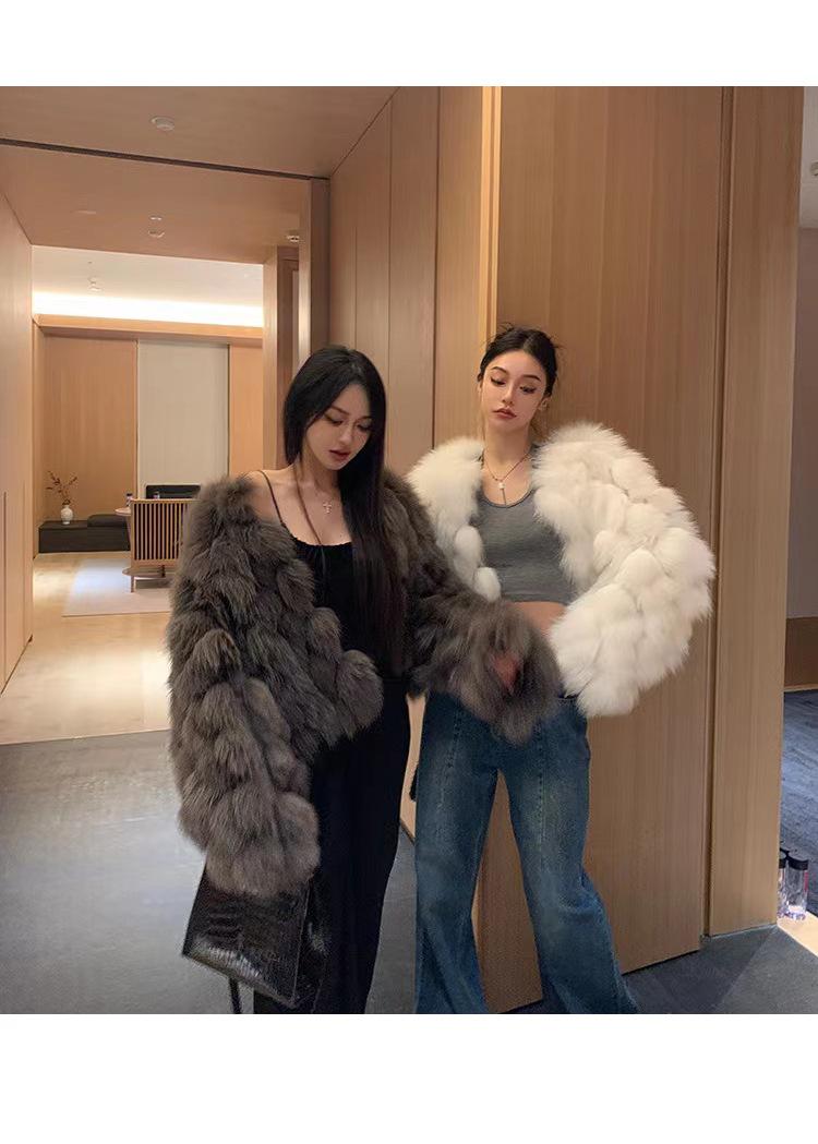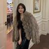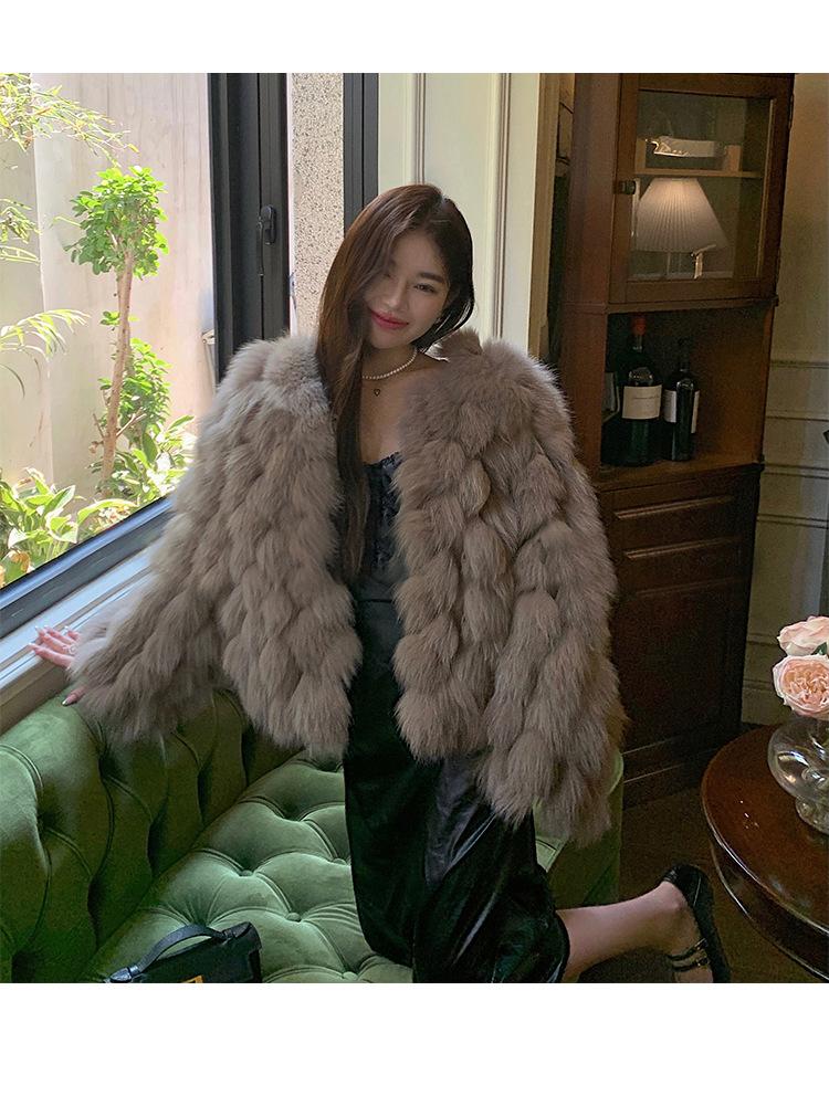 Foto real en stock otoño e invierno Nuevo abrigo de piel con cuello en V abrigo corto de piel para mujeres jóvenes