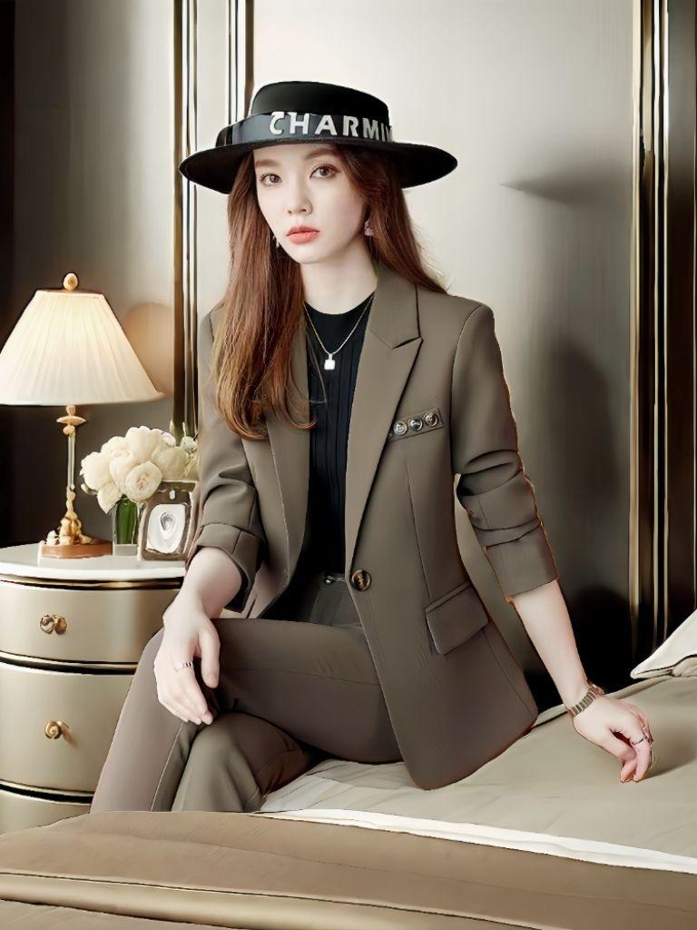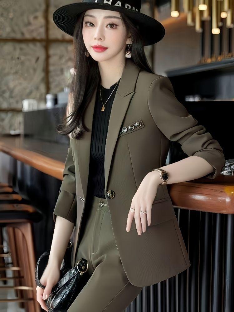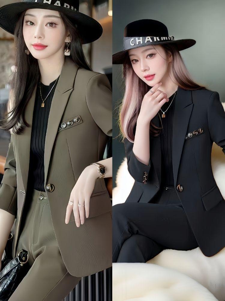 Nuevo Traje Pequeño de Primavera y Otoño Chaqueta para Mujer Adelgazante Moda Temperamento de Alta Gama Conjunto Completo Ropa de Trabajo Profesional Conjunto Completo Traje Mujer