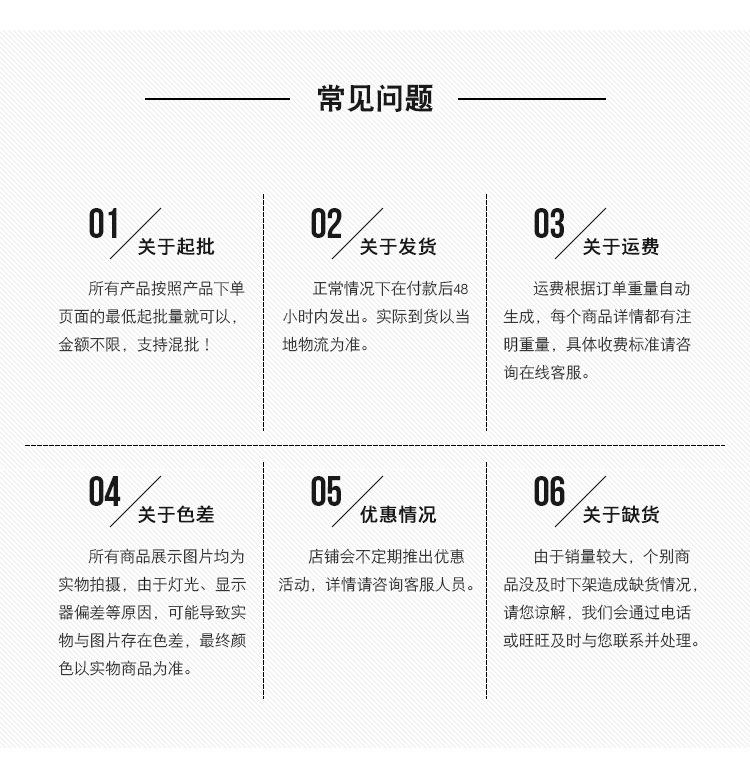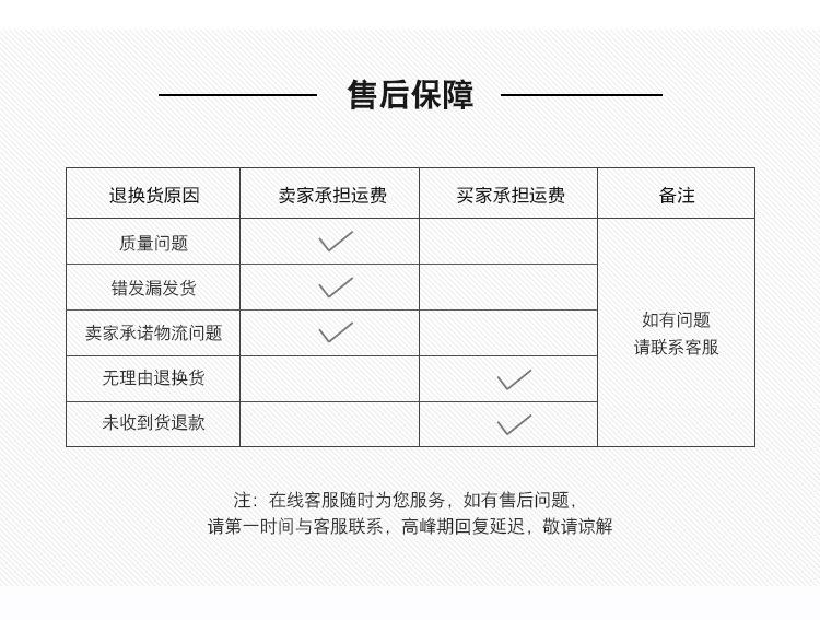 Si la mercancía está agotada o presenta problemas de calidad tras recibirla, póngase en contacto con el servicio posventa en un plazo de tres días. Si detecta algún problema de calidad, tome fotografías de la mercancía a tiempo tras recibirla y envíelas al servicio de atención al cliente.