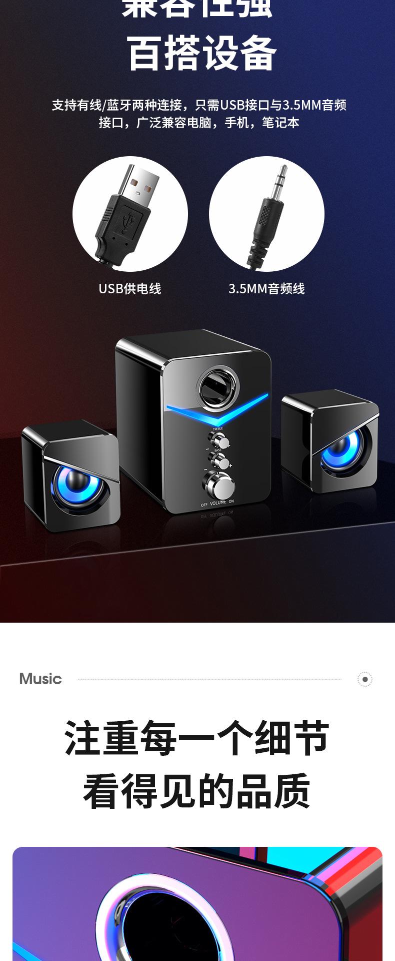 D221 Computadora Bluetooth Audio Escritorio Alámbrico Escritorio Portátil Impacto USB Altavoz para Teléfono Altavoz Inteligente