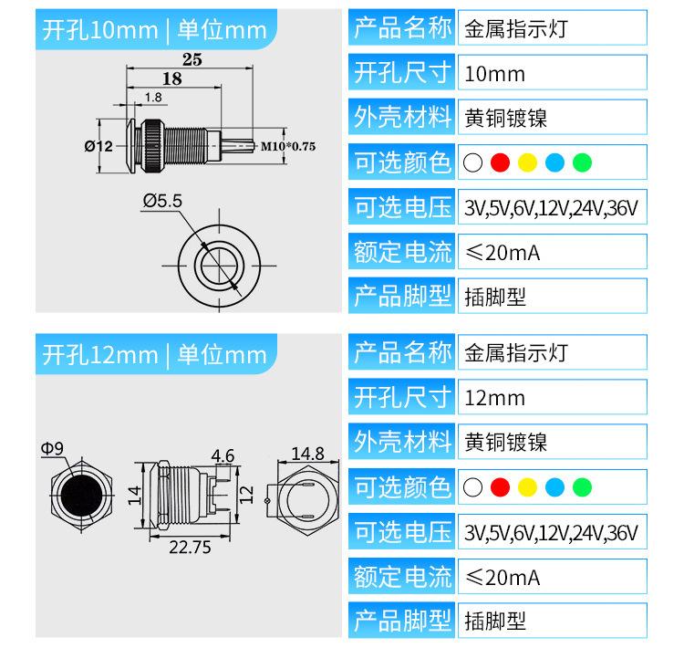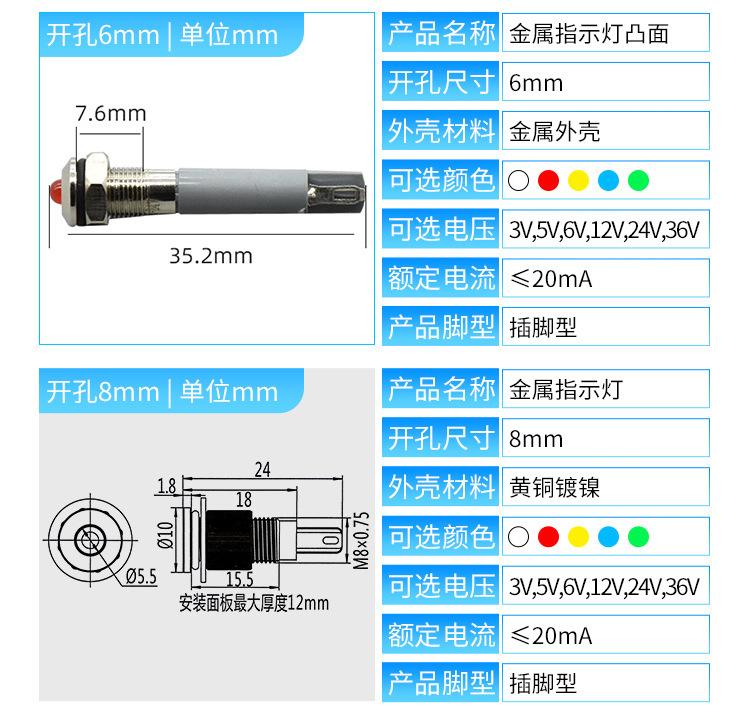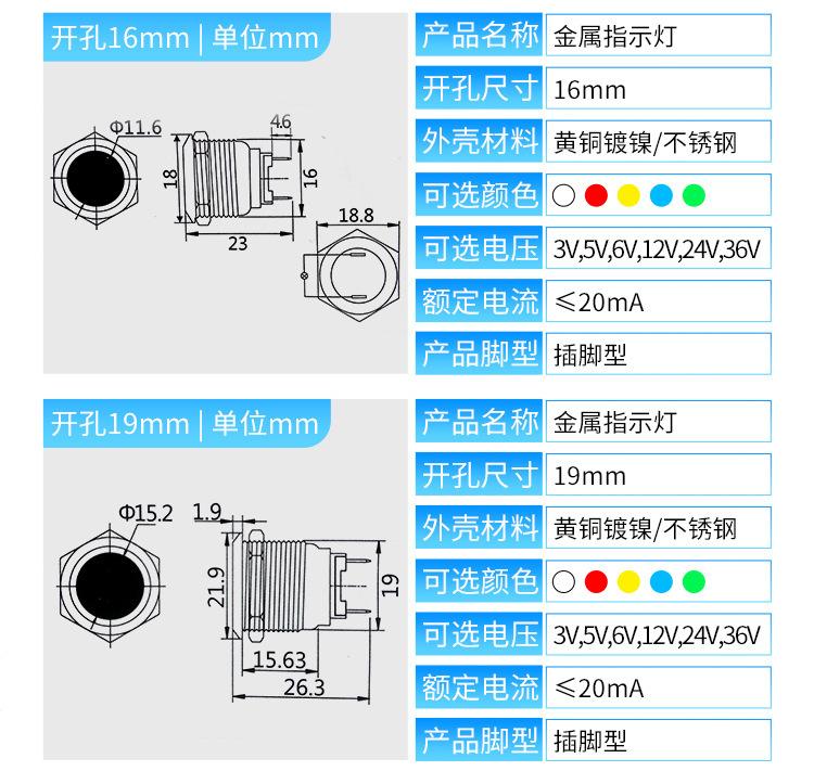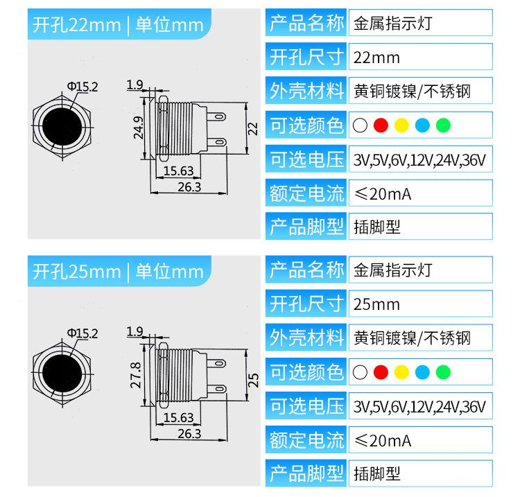 Luz indicadora LED de metal 6 8 10 12 16 19 22 25 mm luz de señal 5 V12v24v/operación de potencia