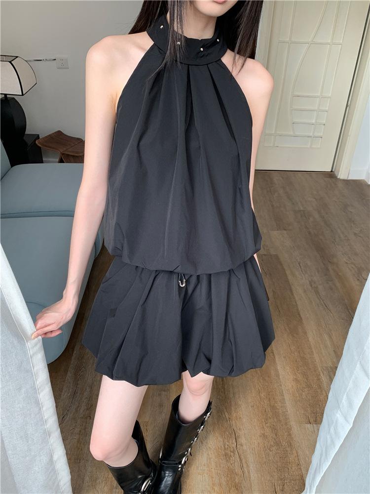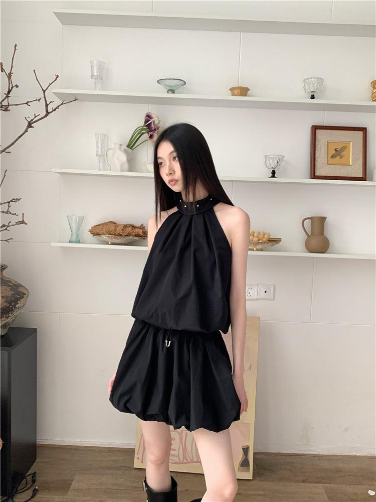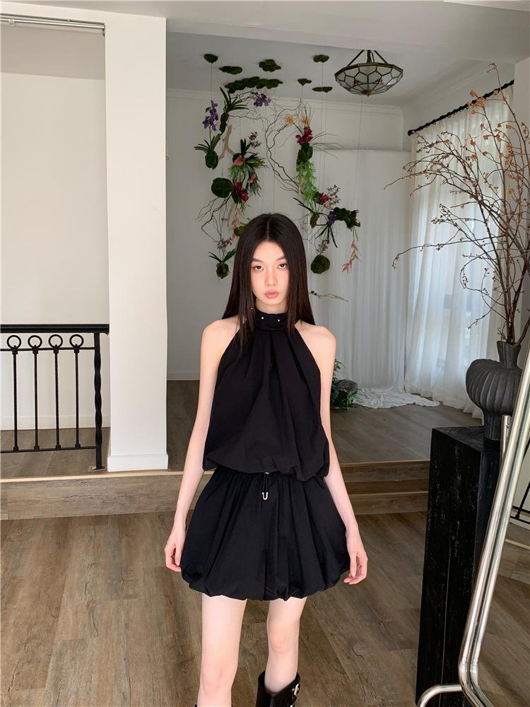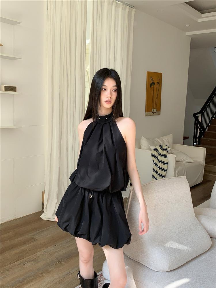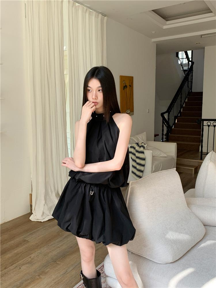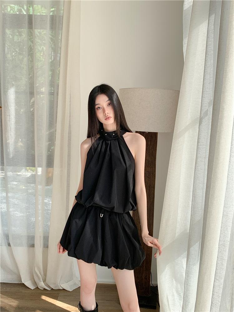 2 Fotos Reales de Conjunto de Dos Piezas de Top Halter Nuevo para Verano 2024 para Mujer en Existencia y Falda Corta