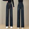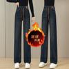 Pantalones anchos de mezclilla para mujer, otoño e invierno 2024, nuevos pantalones rectos ajustados con cintura elástica y forro polar.