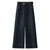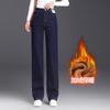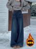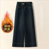 Vintage Recto Otoño e Invierno Pierna Ancha 2024 Nuevos Jeans Cintura Alta Suelto Adelgazante Forrado de vellón Pantalones de Pierna