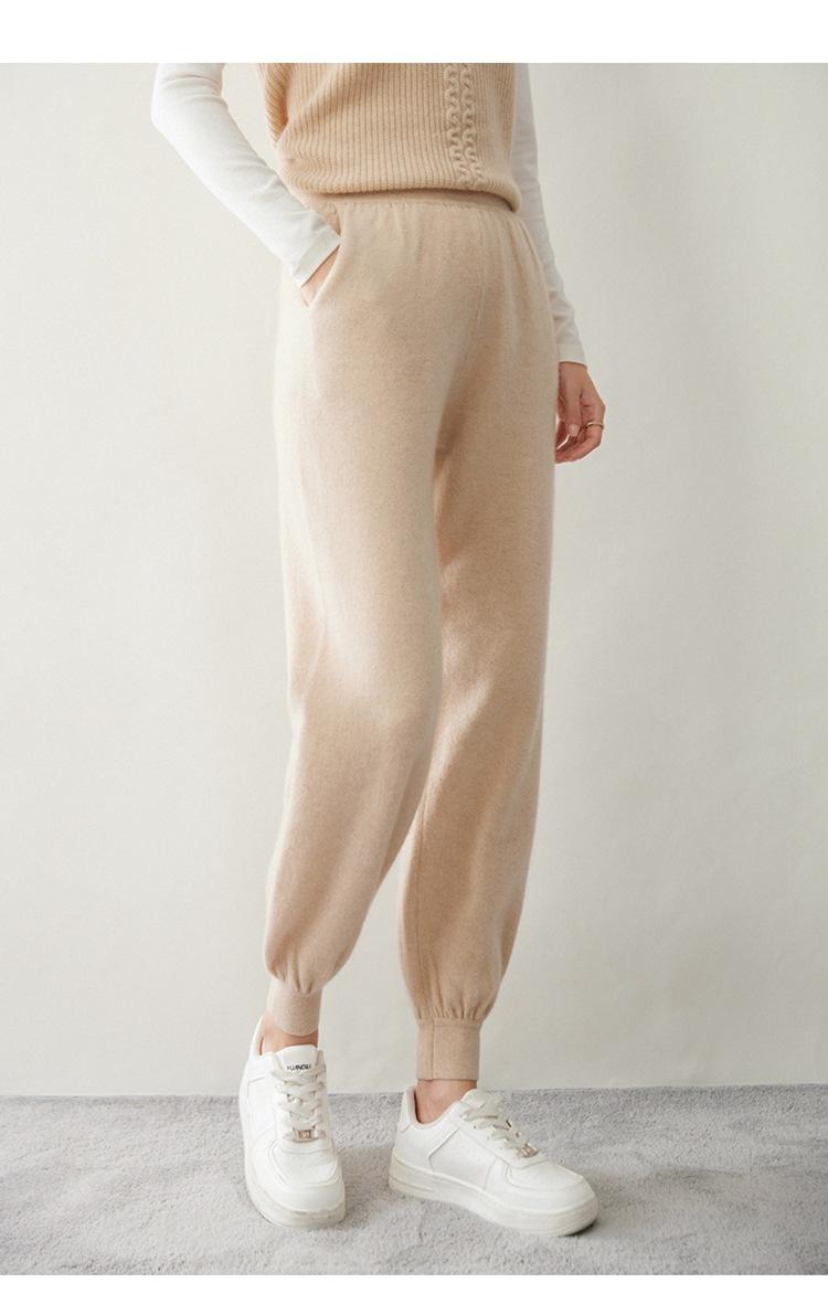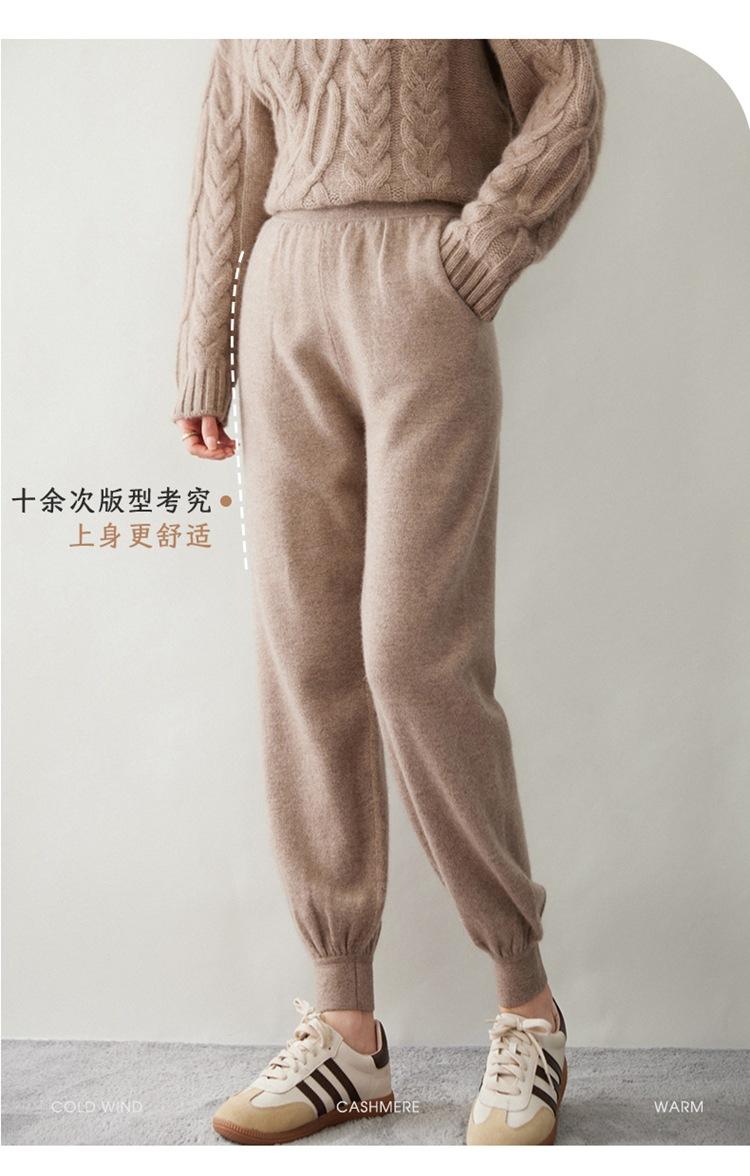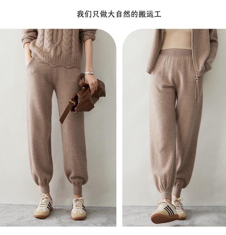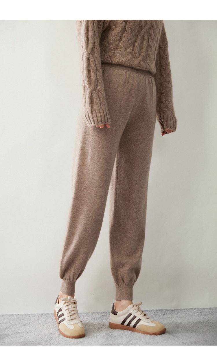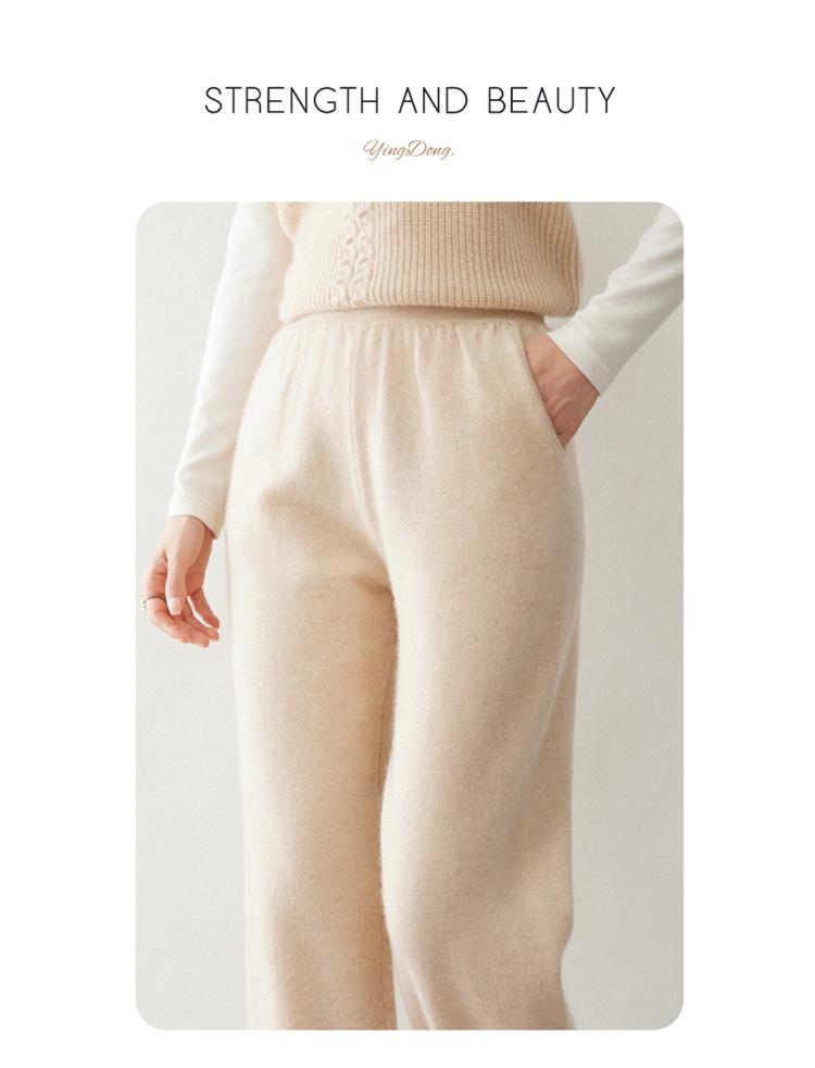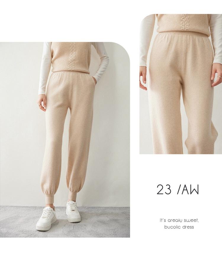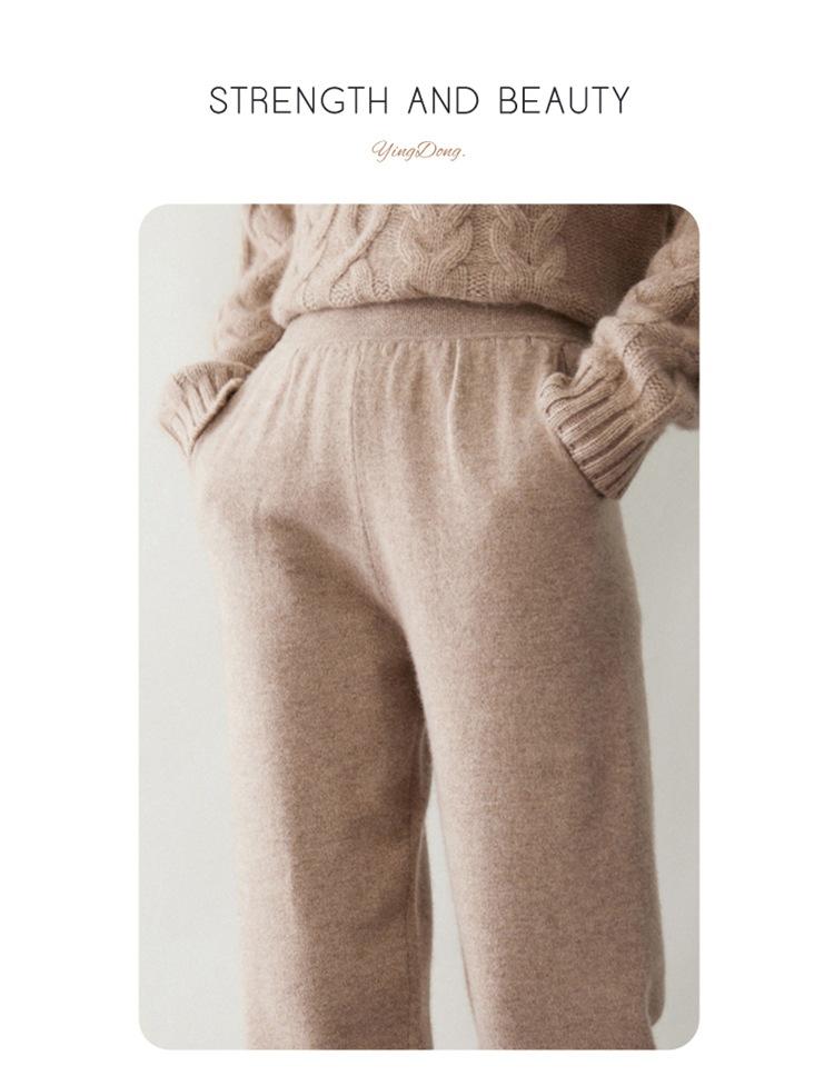 Pantalones ajustados de cintura alta de cachemir de color liso y planos de moda para mujer, pantalones holgados informales de otoño e invierno, nuevos pantalones de punto