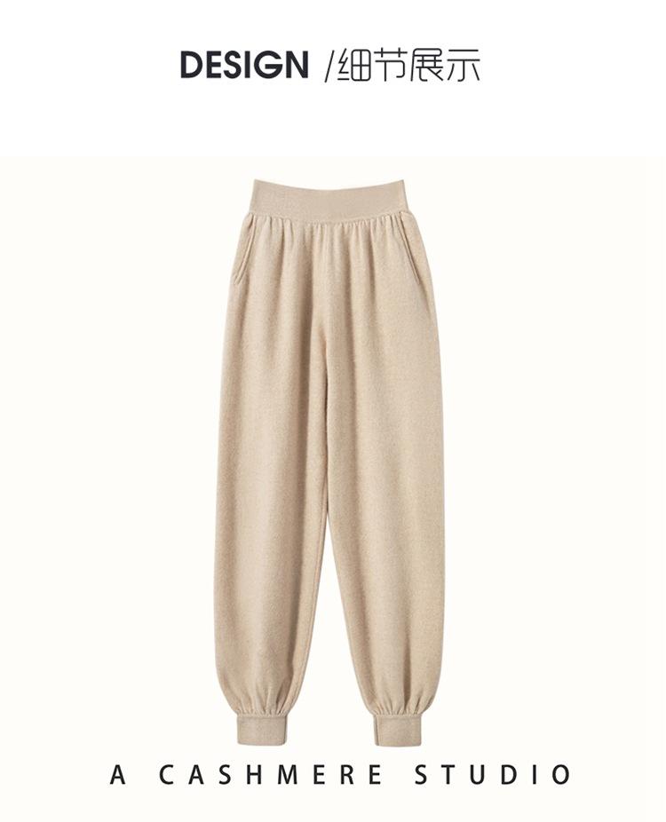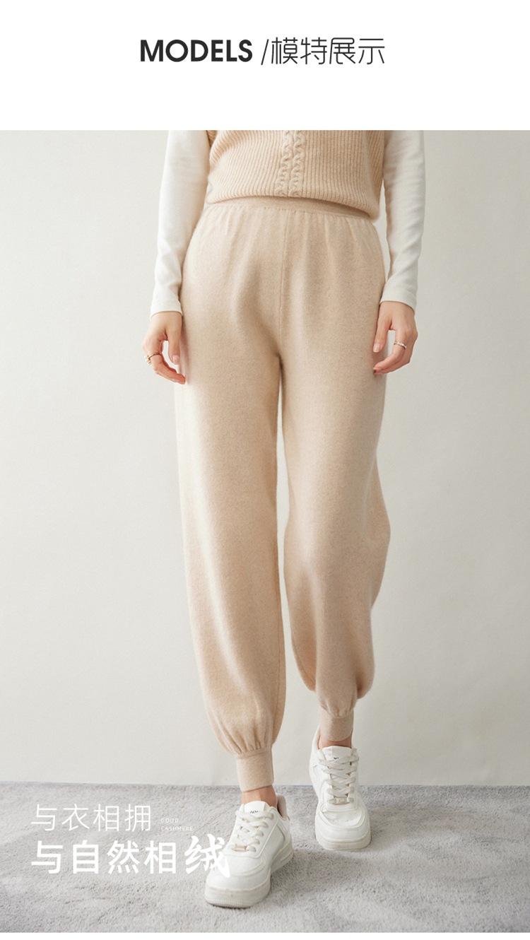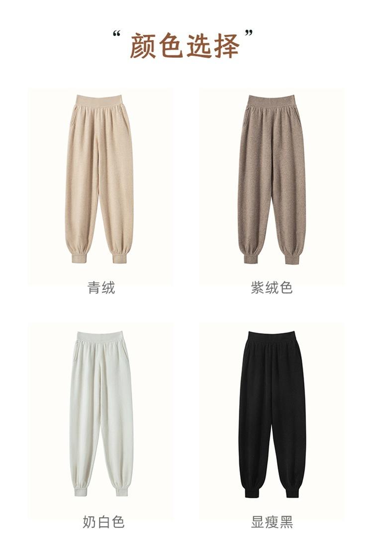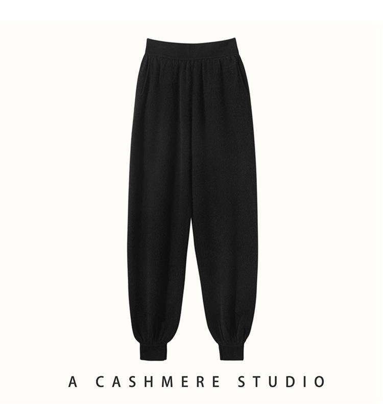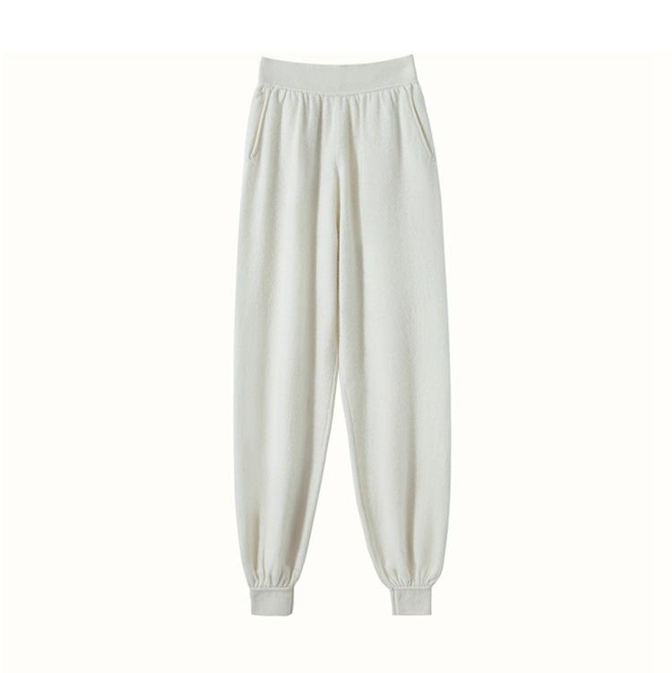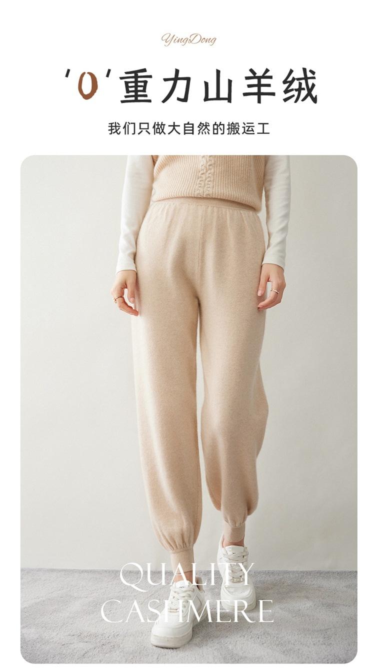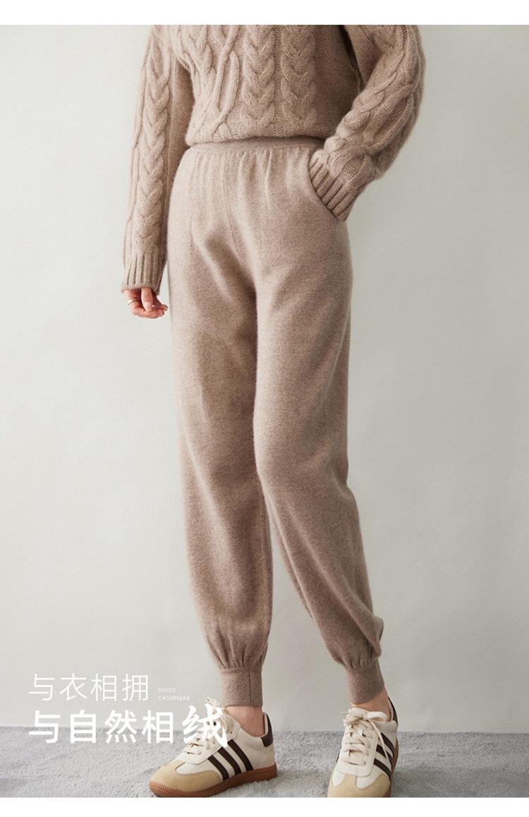 Pantalones ajustados de cintura alta de cachemir de color liso y planos de moda para mujer, pantalones holgados informales de otoño e invierno, nuevos pantalones de punto