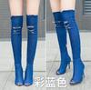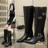 Primavera 2025 Nuevo Casual Moda Estilo Coreano Botas Largas Sobre la Rodilla Mismo Estilo Elásticas Punta Redonda Botas Vaqueras de Caña Alta de Cuero para Mujer