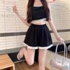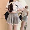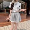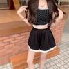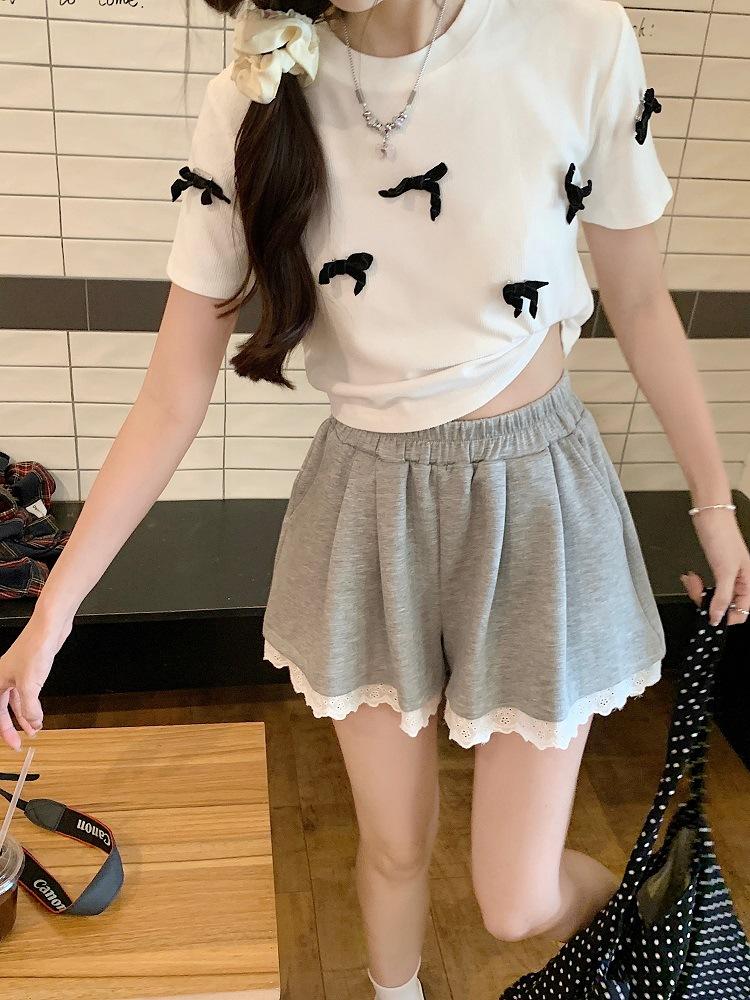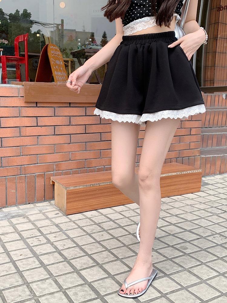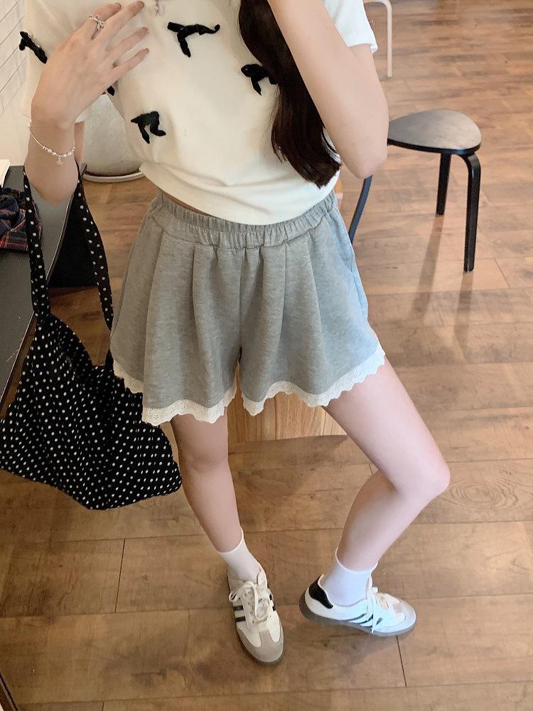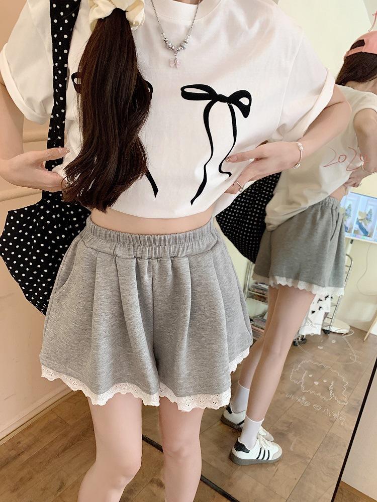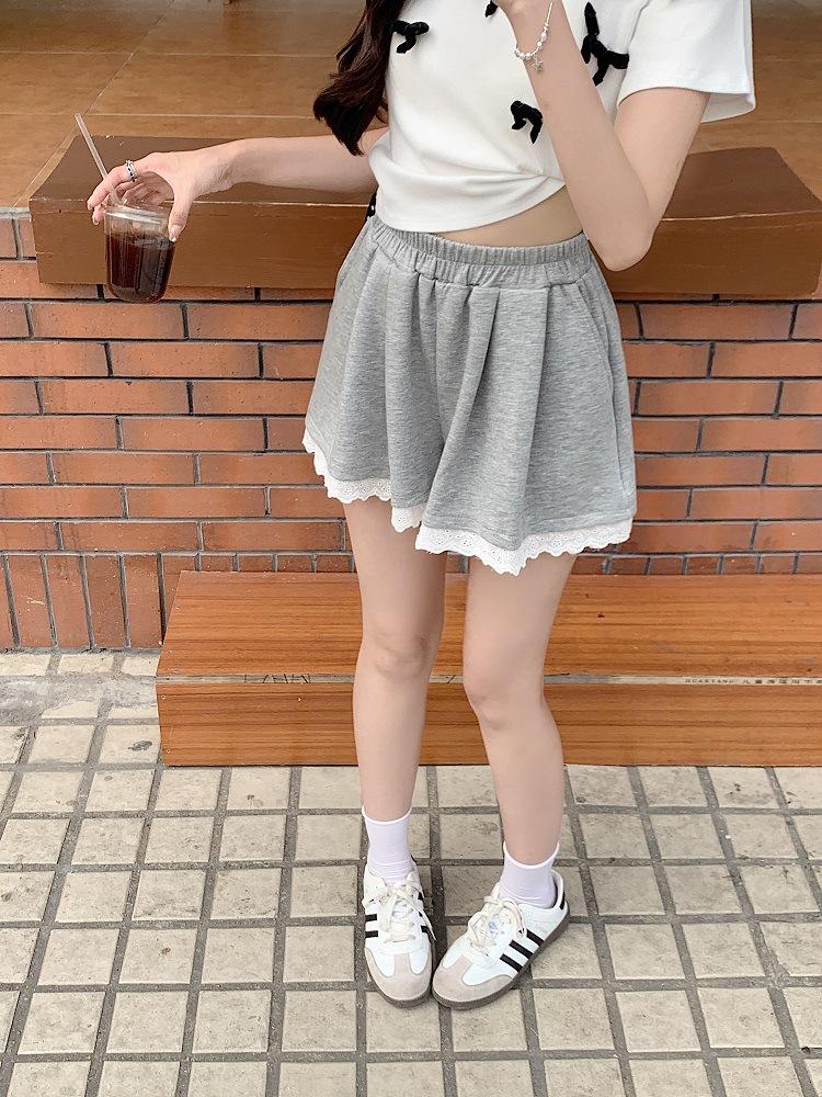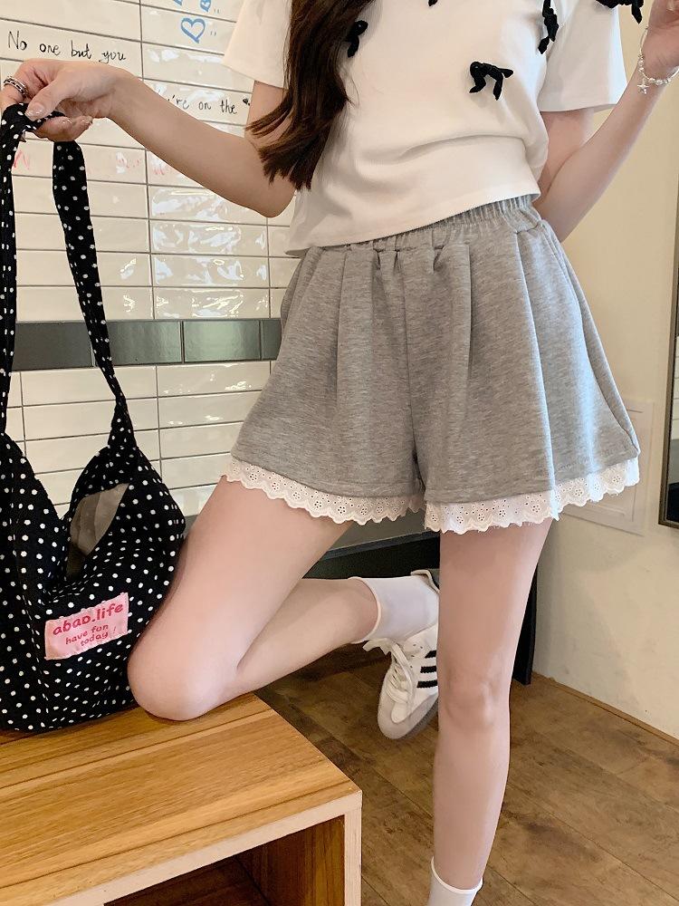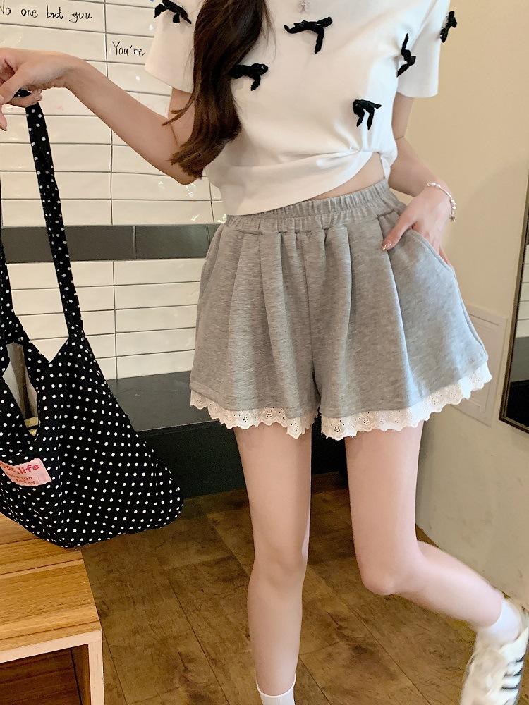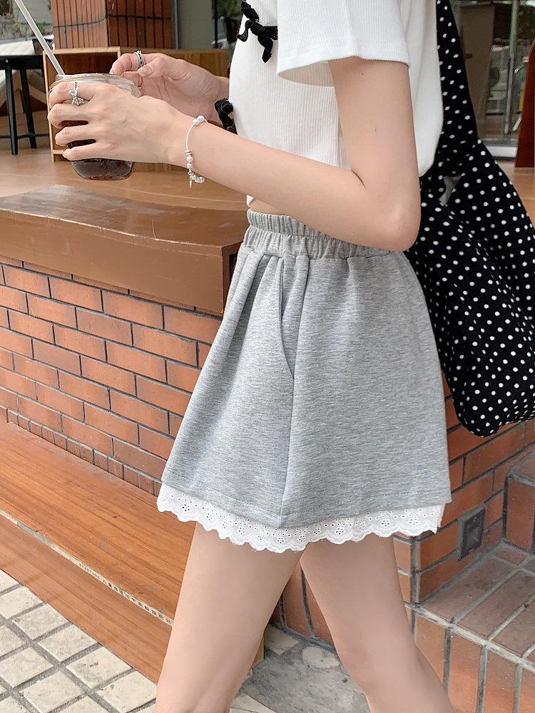 Pantalones casuales grises con encaje para mujer, verano, versátiles, adelgazantes, cintura elástica, holgados, pierna ancha, nicho, ropa exterior, shorts