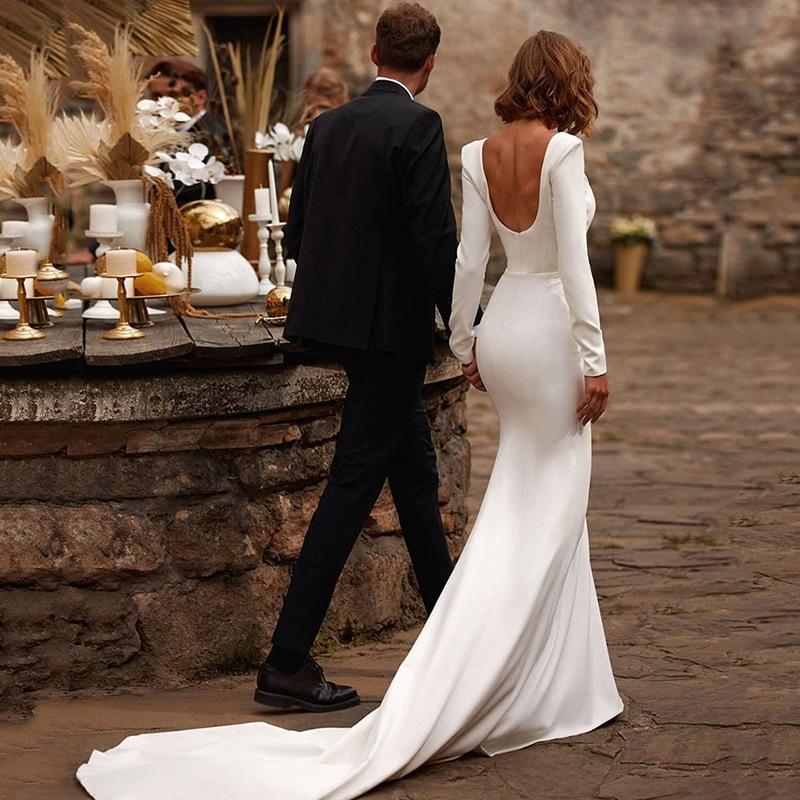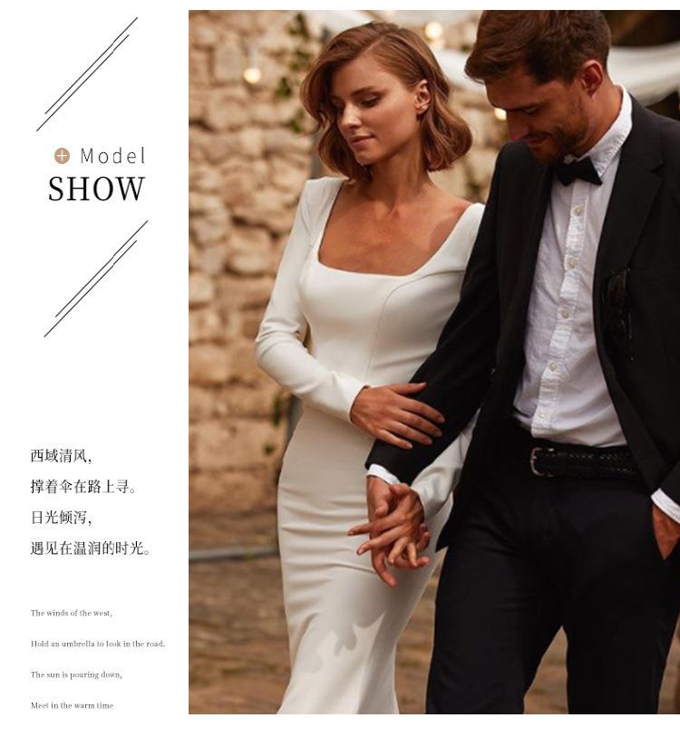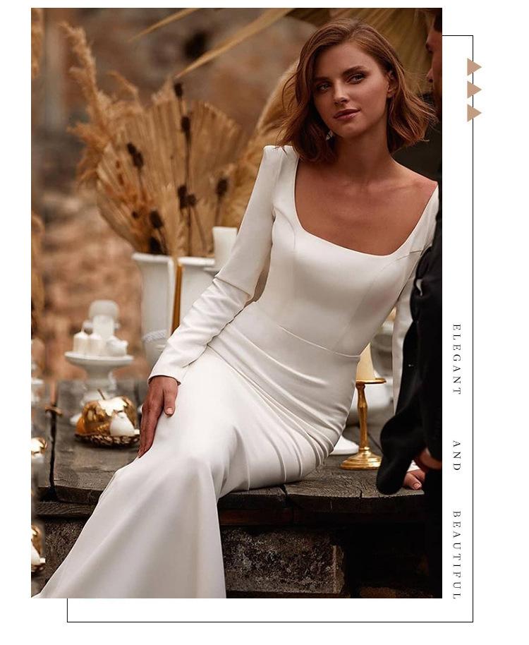 Elegante Vestido de Novia Ligero con Cuello Cuadrado para Mujer Vestido Largo de Satén Francés Ajustado con Cola de Pez Vestido de Novia de Cola Pequeña para Boda