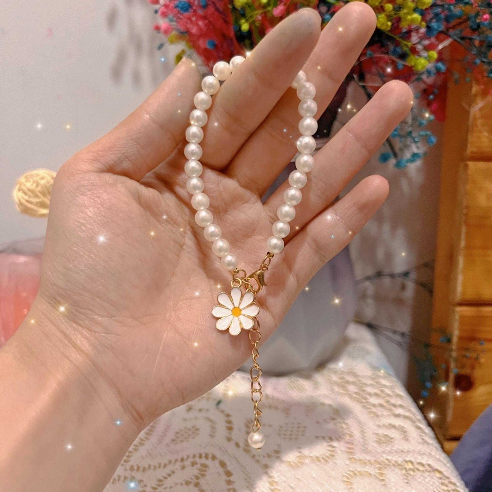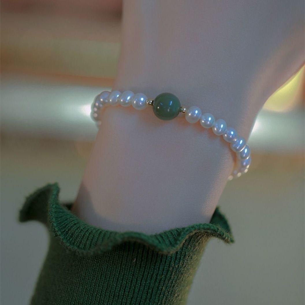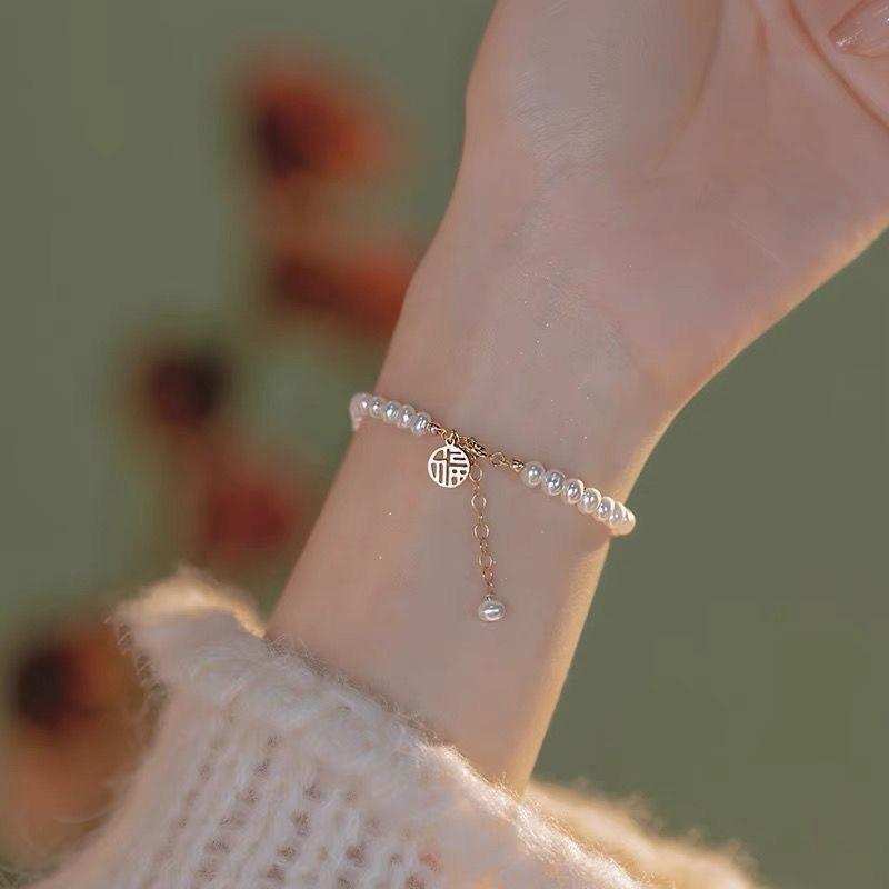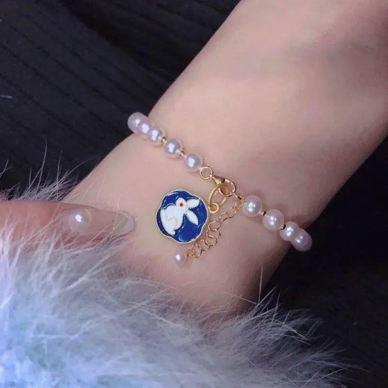 Colgante de melocotón perla pulsera para novias ins nicho estudiante Mori estilo frío pulsera de melocotón