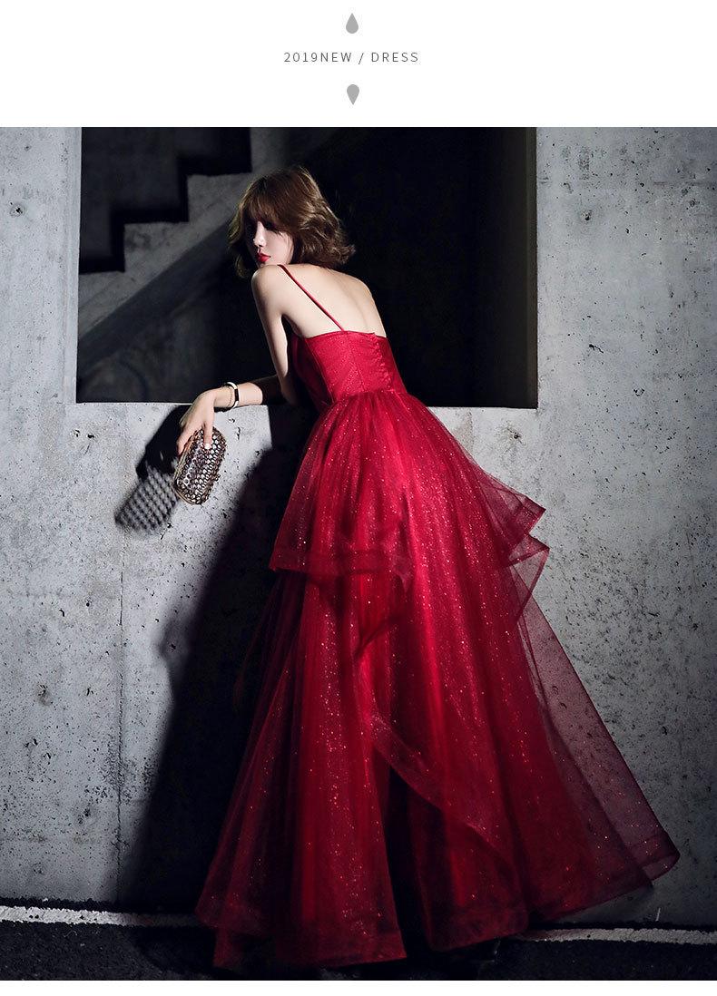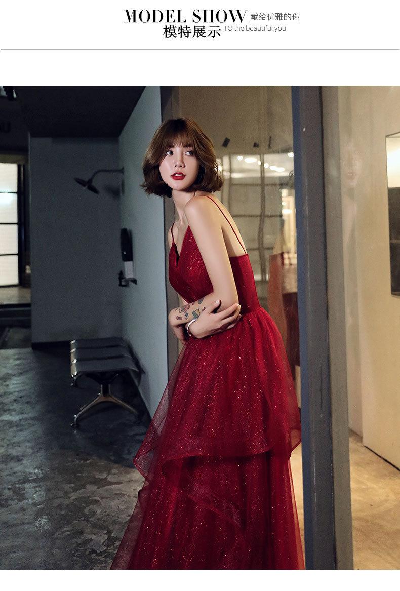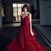 Vestido de Noche Rojo, Lujo Ligero de Alta Gama, Nuevo Elegante, Vestido de Brindis para Novia Adelgazante, Vestido de Fiesta de Cumpleaños con Tirantes