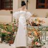 Vestido de Novia Europeo y Americano de Encaje con Dobladillo en A 2025 Nueva Novia Diseño Sencillo de Tubo Top Vestido de Novia Ligero de Cola Pequeña