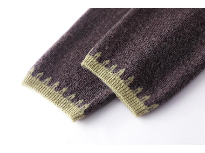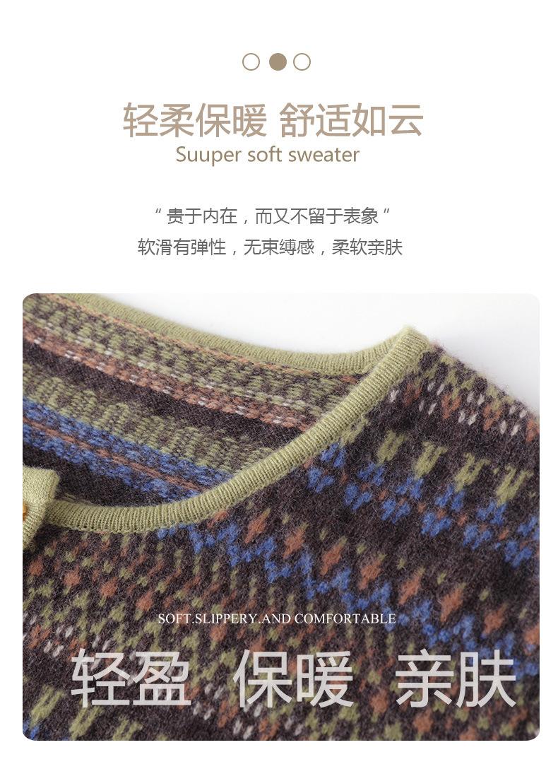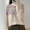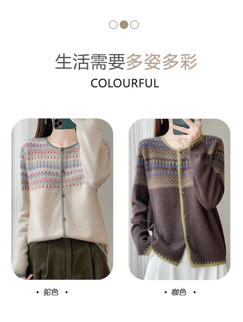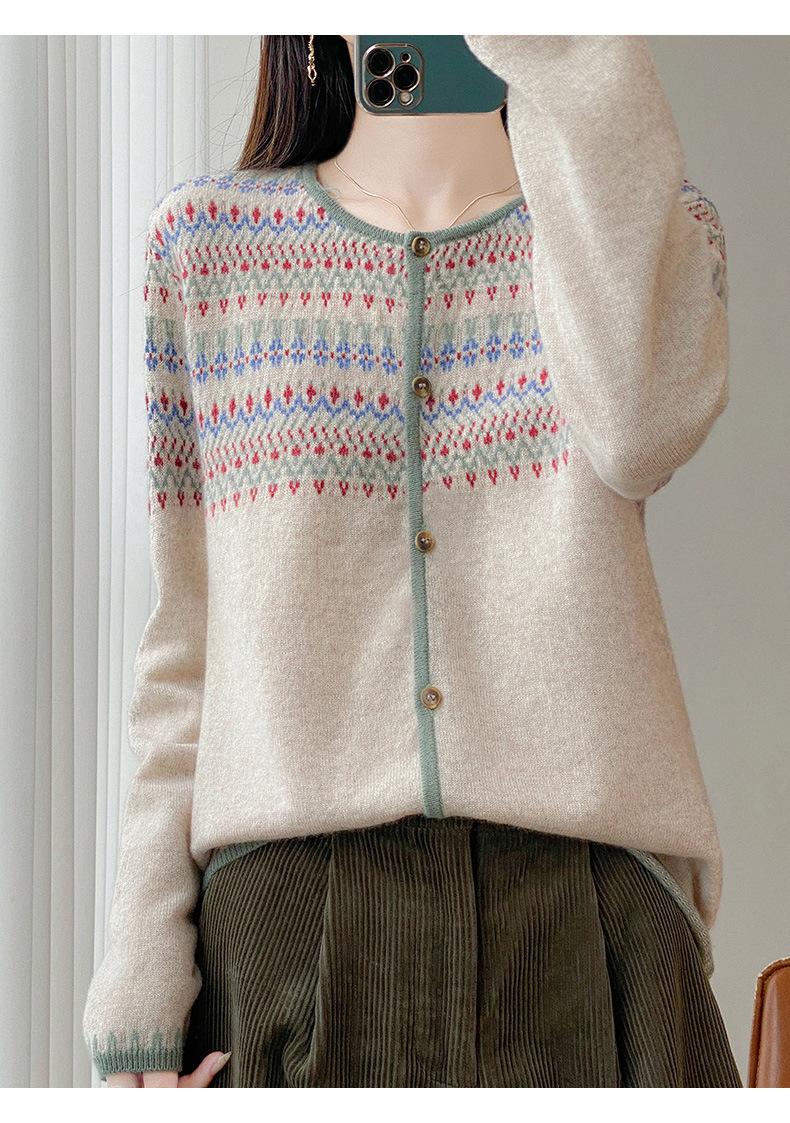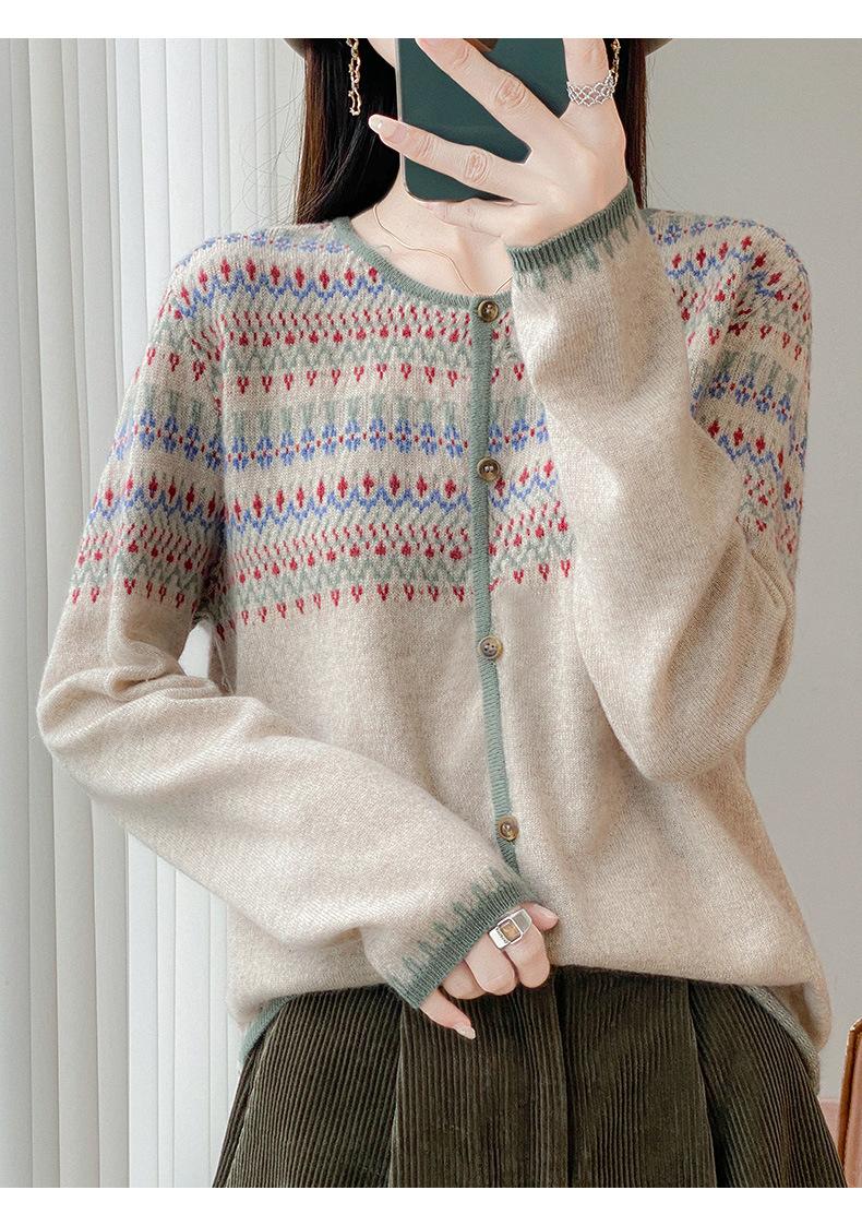 2025 Nuevo Cárdigan de Punto de Lana Pura con Cuello Redondo para Mujer, Bloque de Color, Manga Larga Holgada, Temperamento Casual, Abrigo Exterior de Botonadura Sencilla