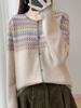 2025 Nuevo Cárdigan de Punto de Lana Pura con Cuello Redondo para Mujer Color de Contraste Holgado Manga Larga Temperamento Casual Chaqueta de Un Solo Botón