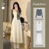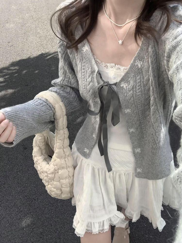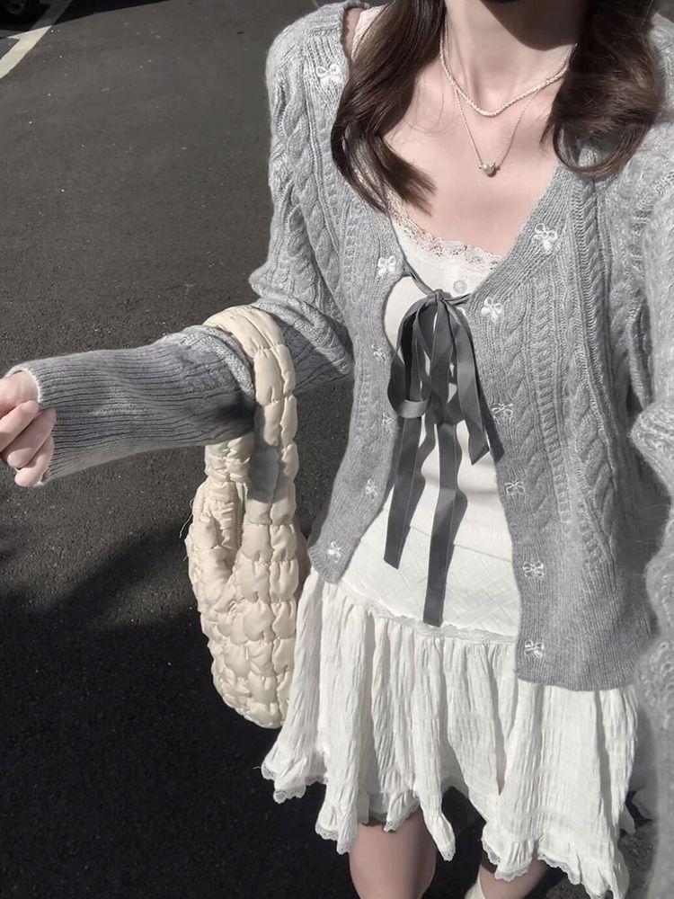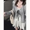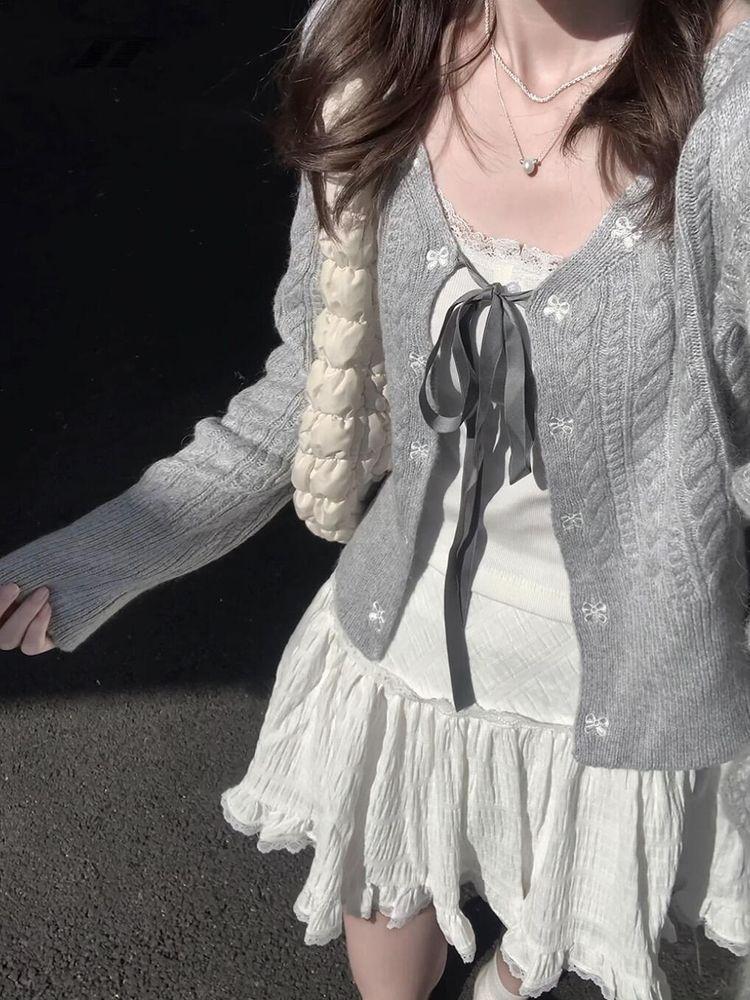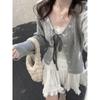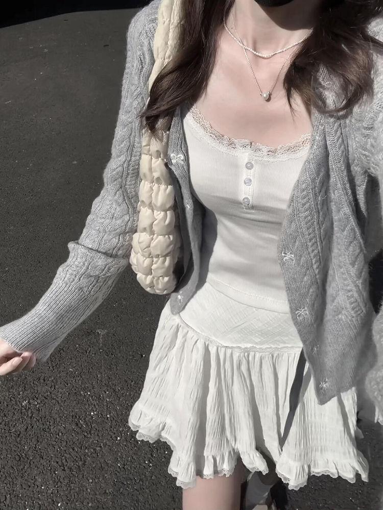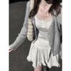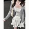 Grey Cardigan + White Camisole [Two-Piece Set], Gray cardigan [single piece], White sling [single piece], Whit...