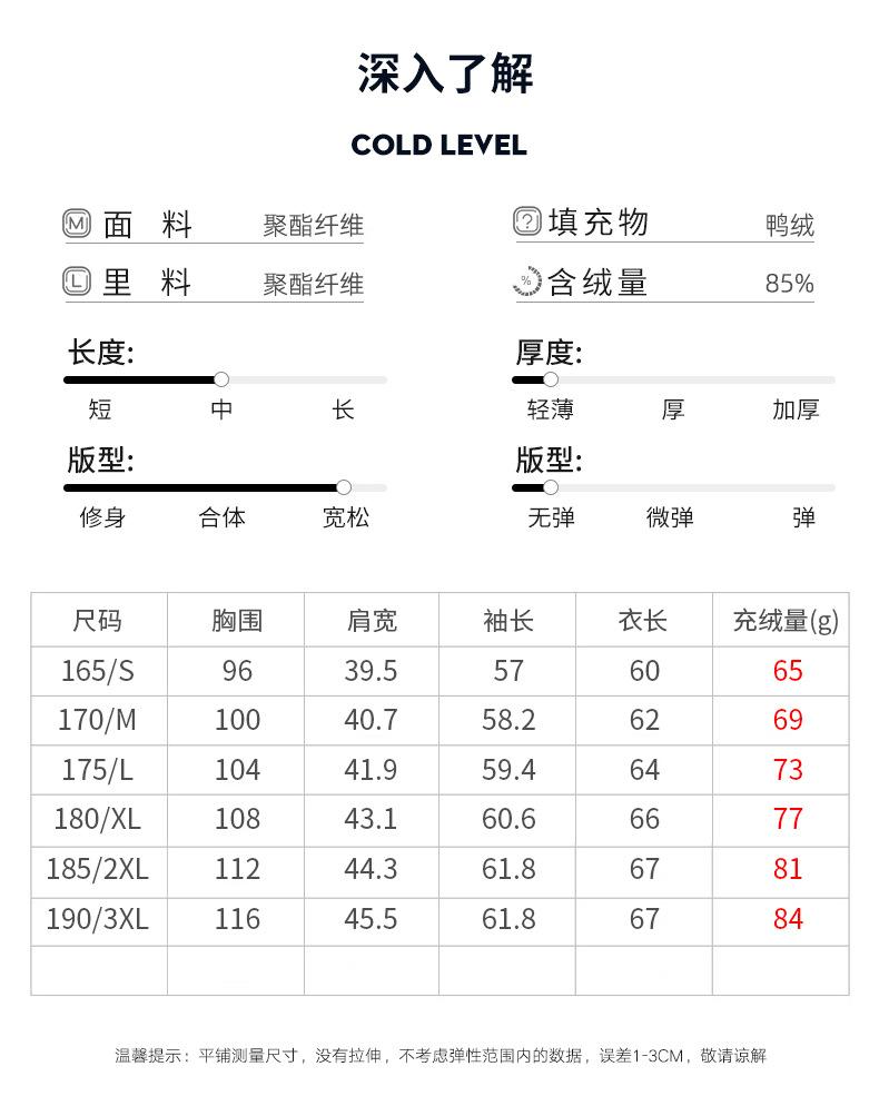 165/S, 170/M, 175/L, 180/XL, 185/2XL, 190/3XL