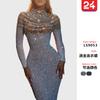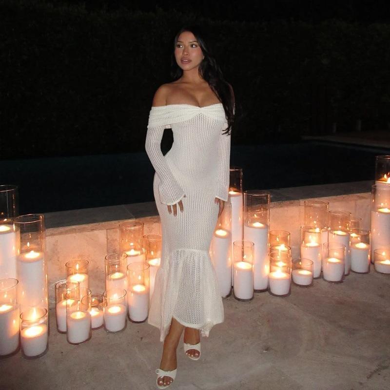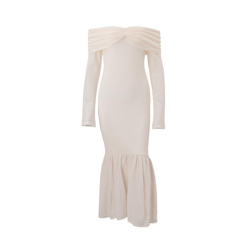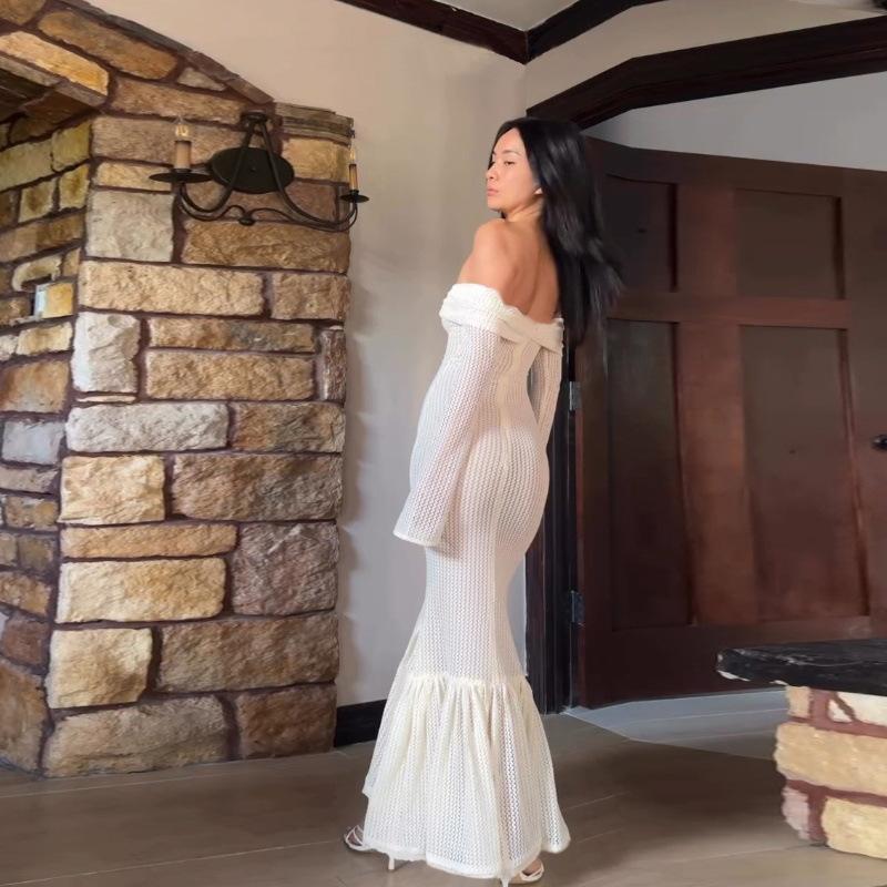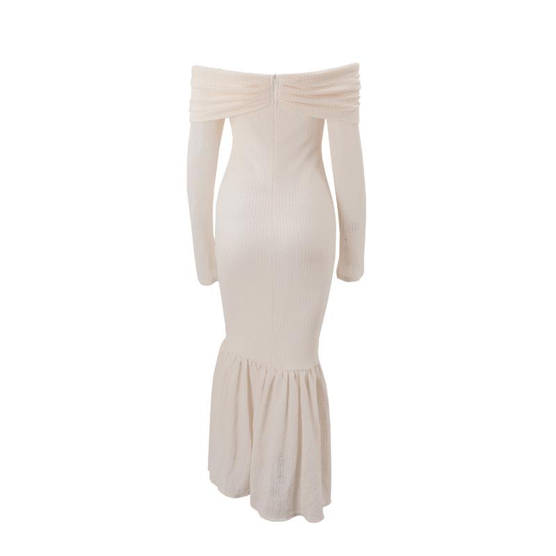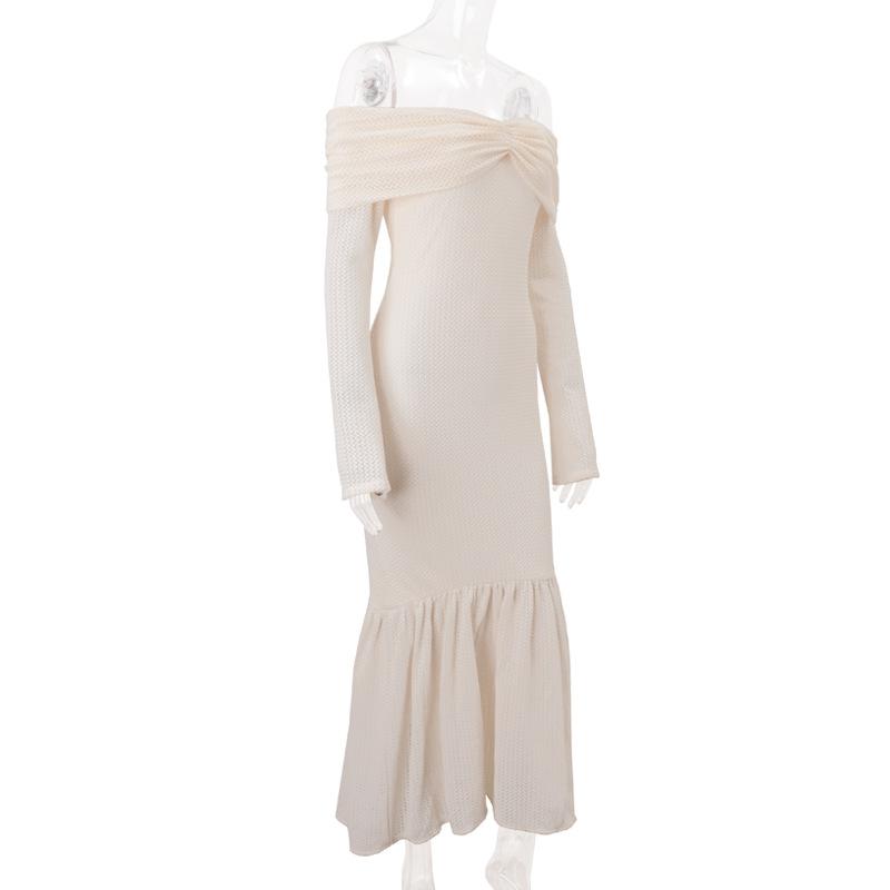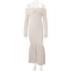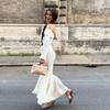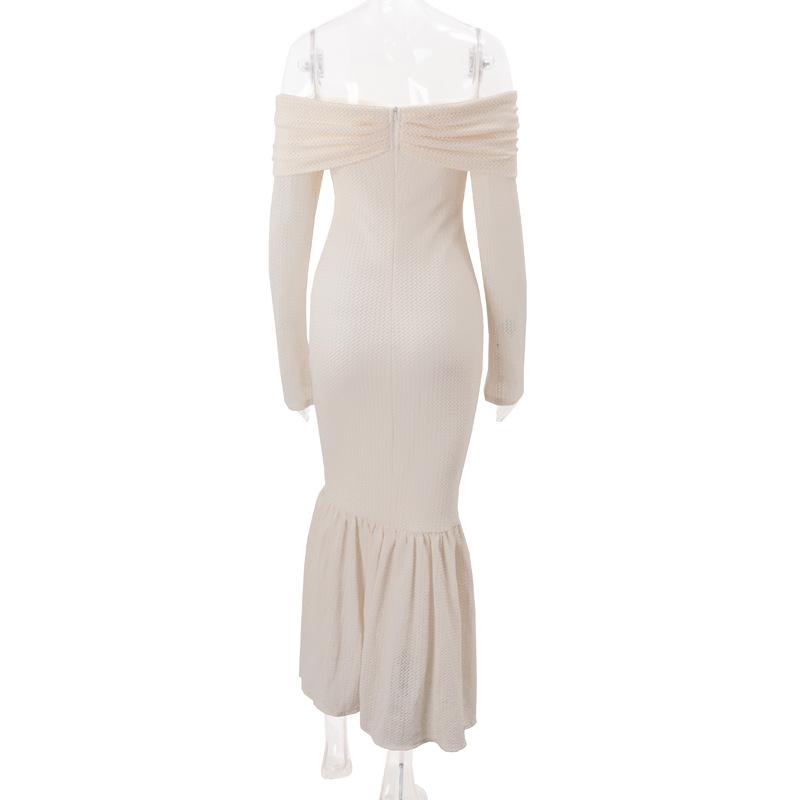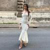 Ropa de Mujer Europea y Americana 2025 Nueva Moda de Otoño Sexy Cuello Recto Elegante Top Tubo Manga Larga Cintura Alta Vestido Cola de Pescado