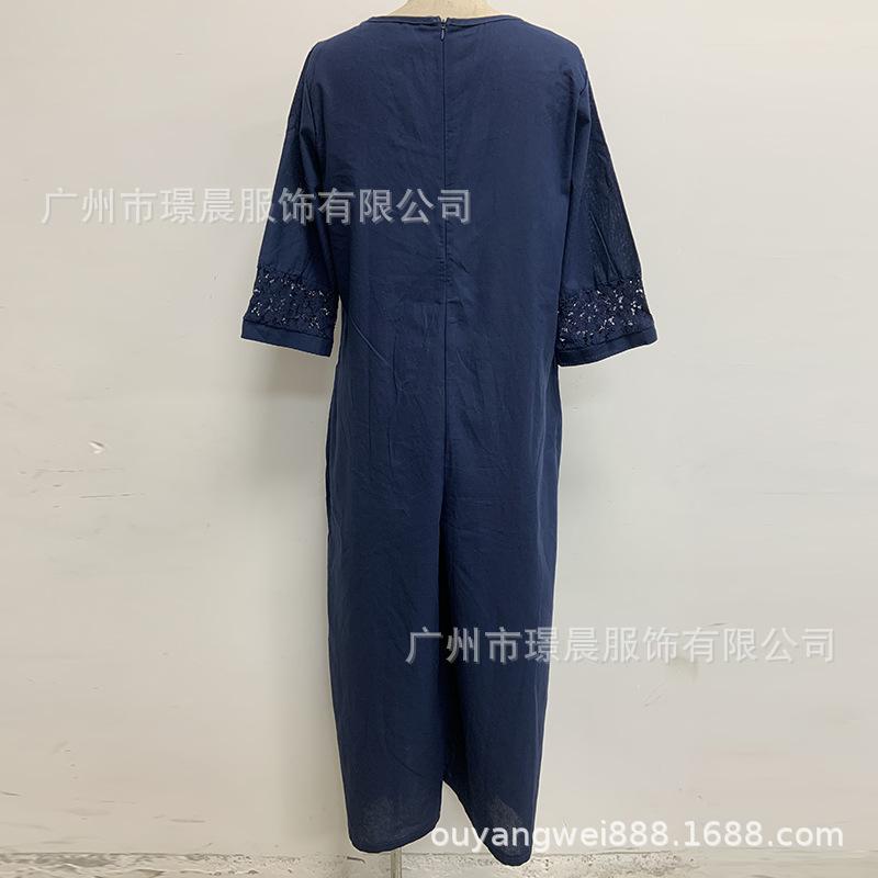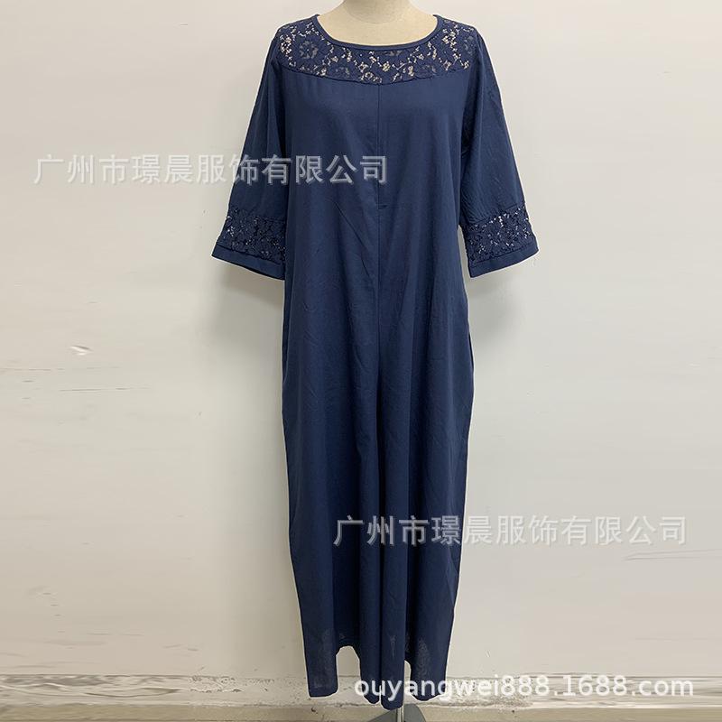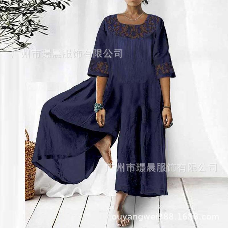 Amazon 2023 Verano Nuevo Exportación Moda Mujer Suelto Cuello Redondo Encaje Empalmado Mono Largo