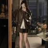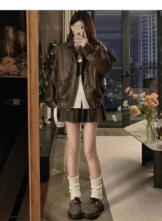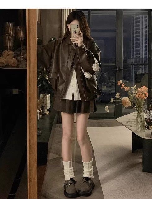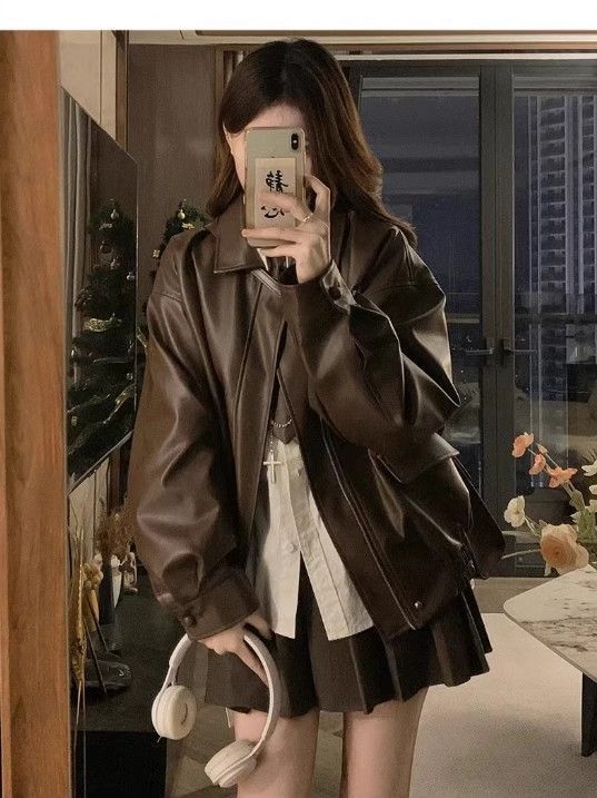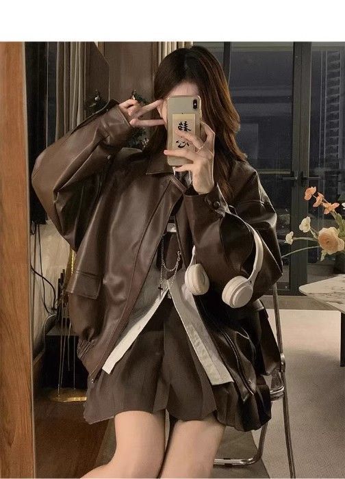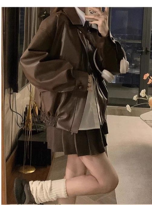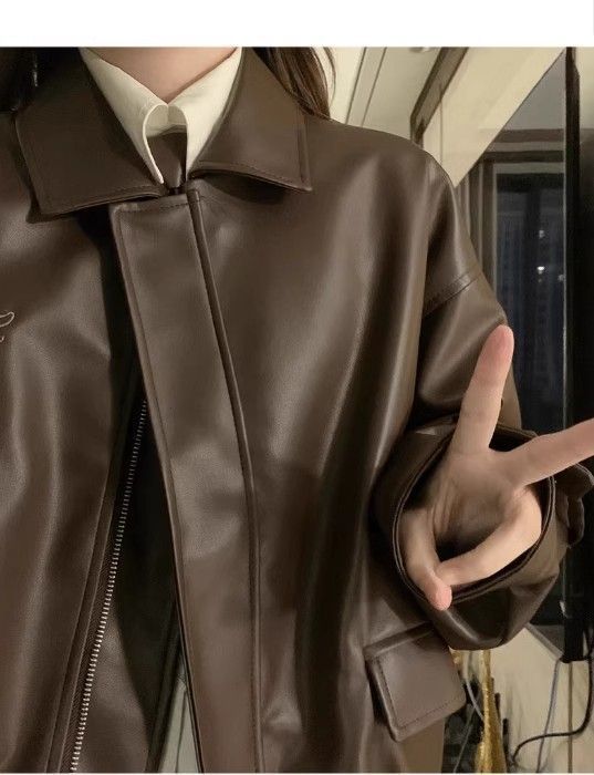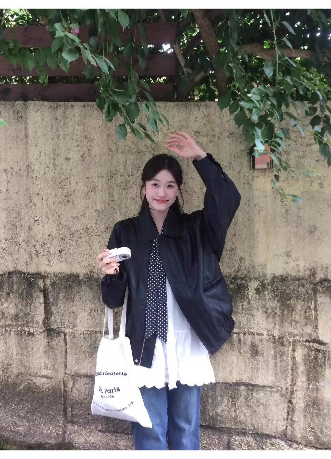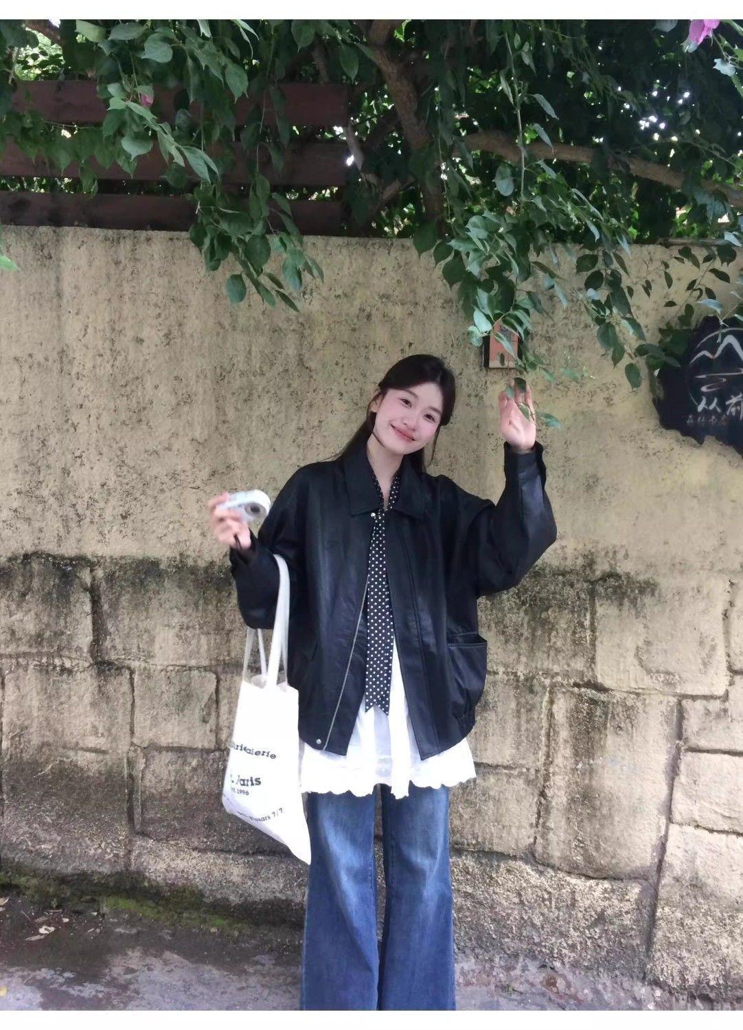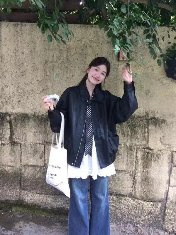 Chaqueta de Cuero Negra para Mujer 2025 Primavera y Otoño Nueva Chaqueta de Moda de Alta Gama para Figuras Petite Estilo Cool