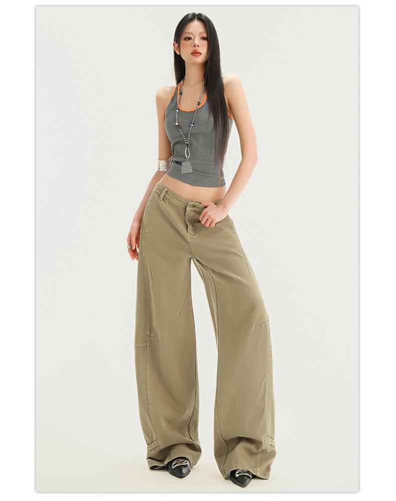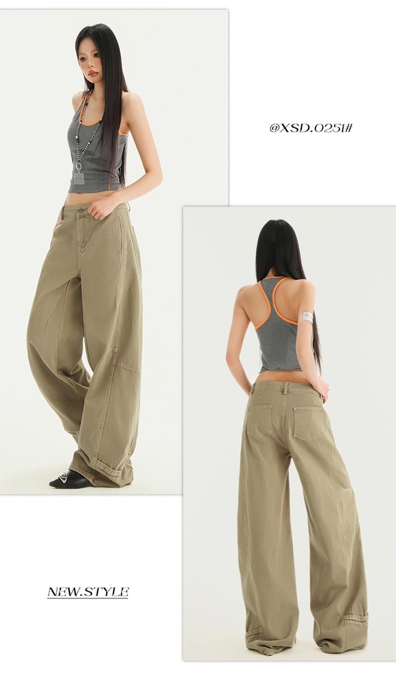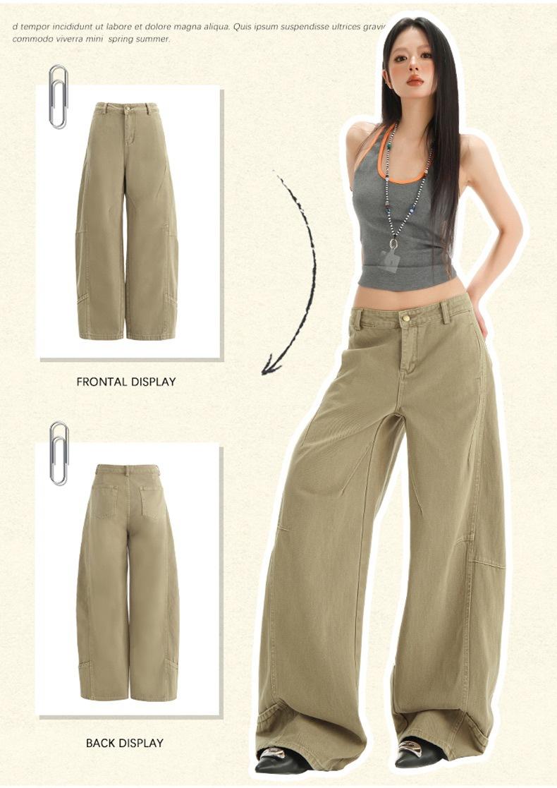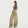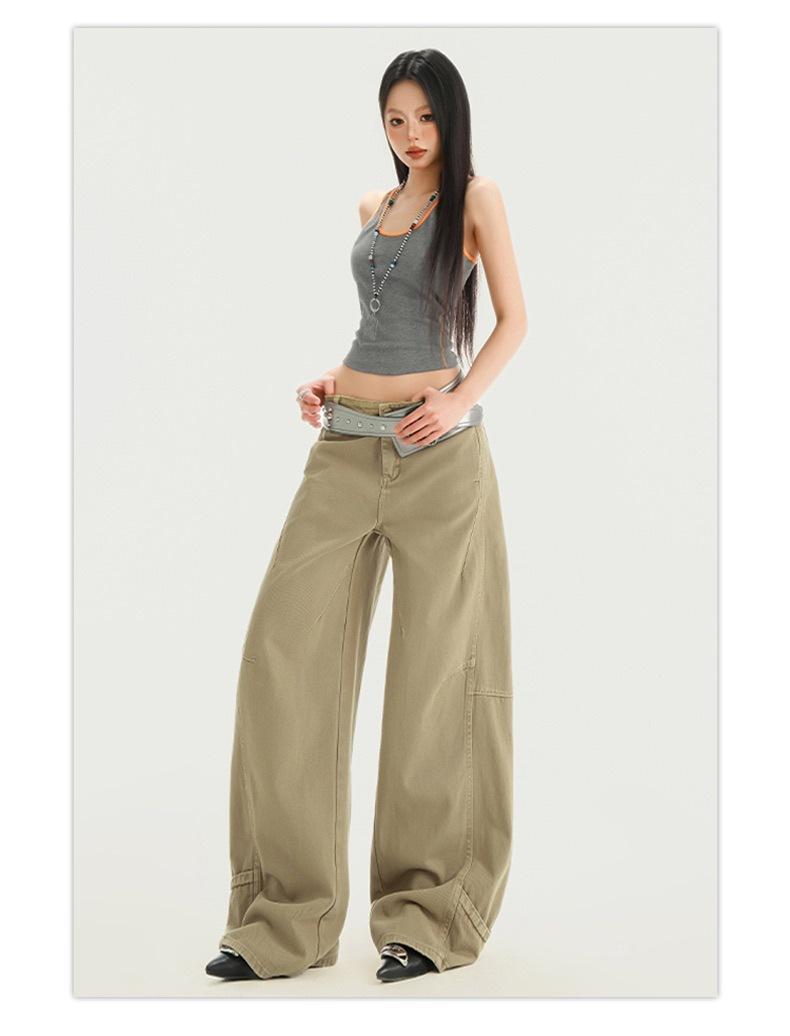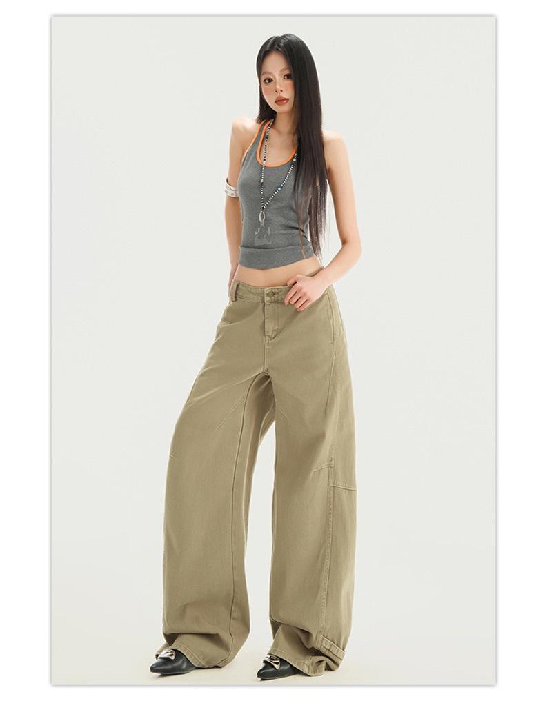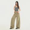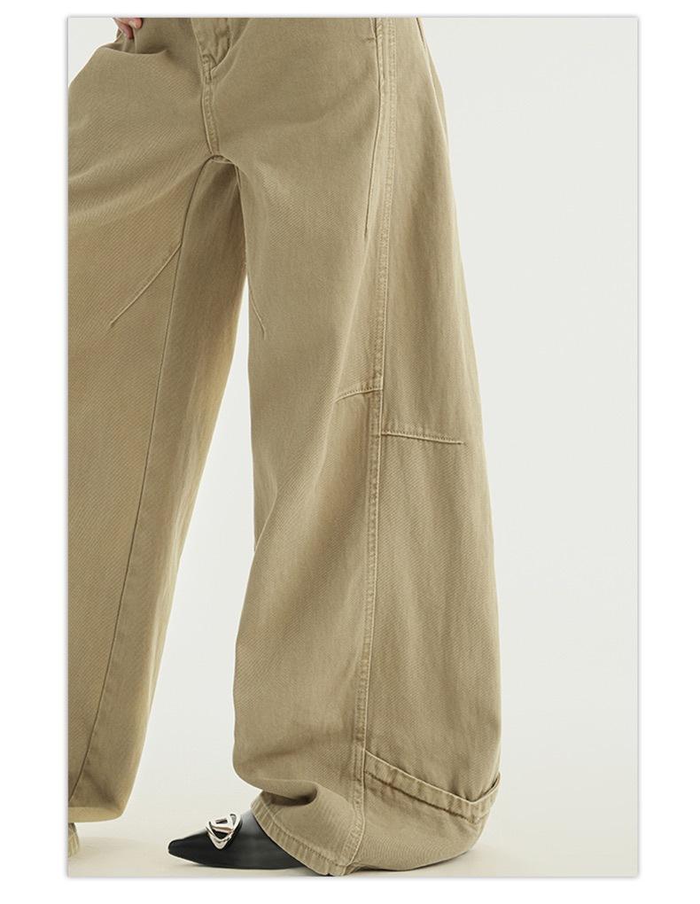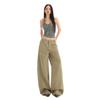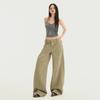 2025 Verano Nuevo Caqui Cintura Alta Pierna Ancha Pantalones Casuales Mujer Americano Retro Suelto Casual Adelgazante Pantalones Largos de Mujer